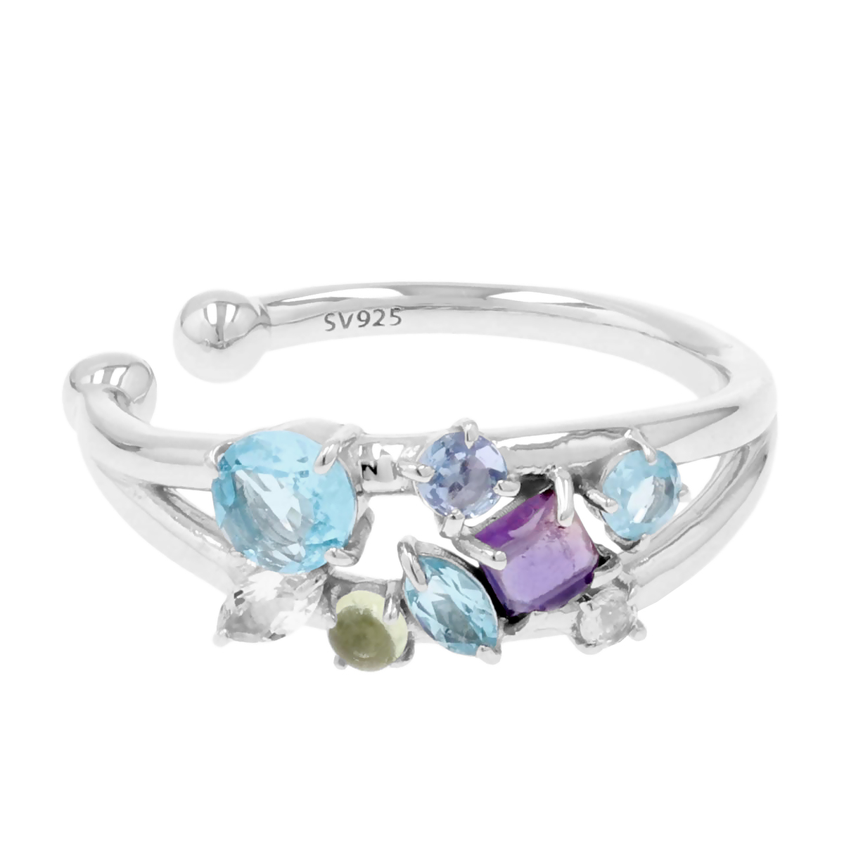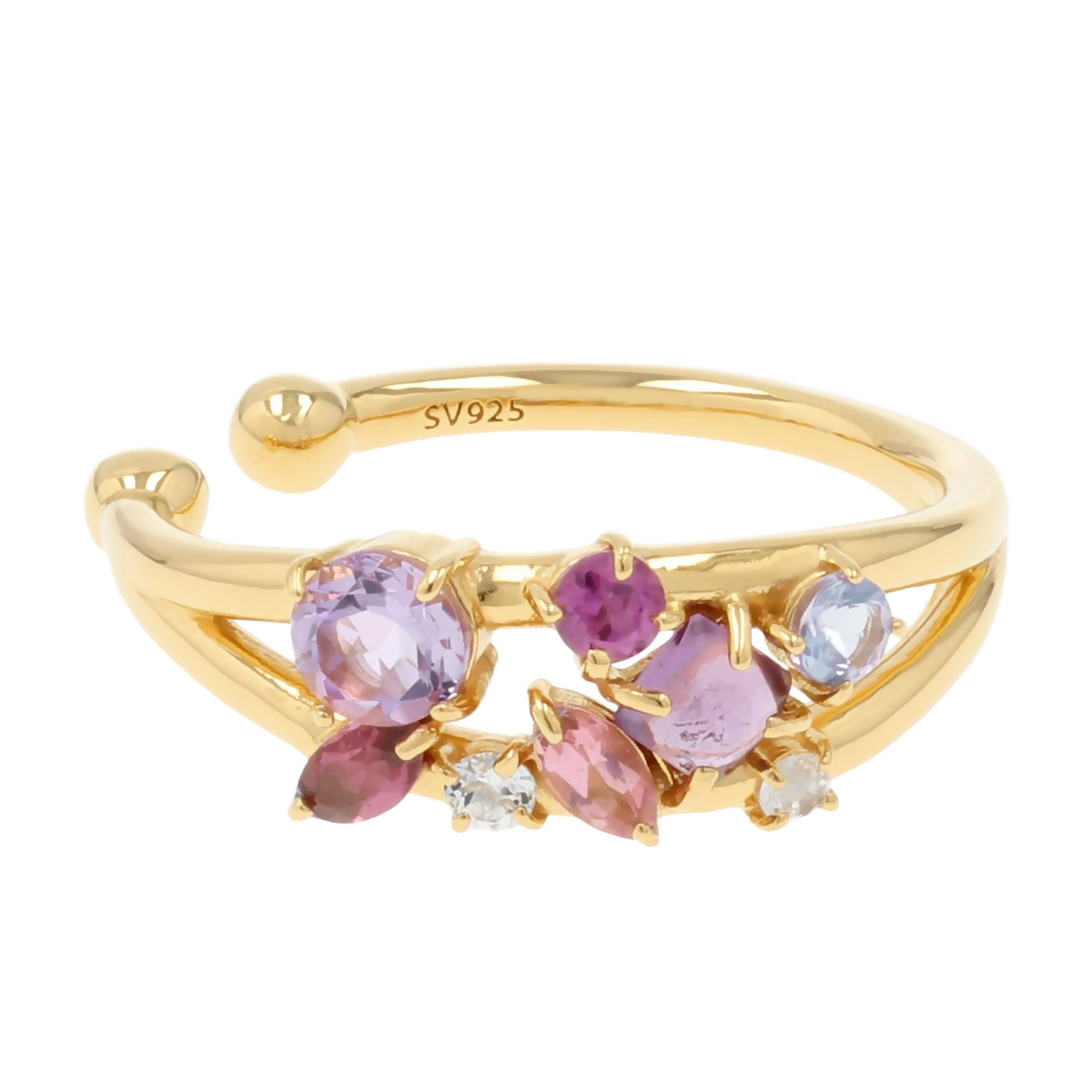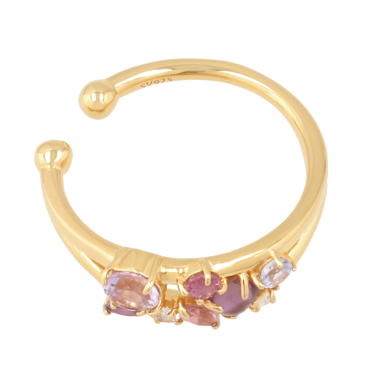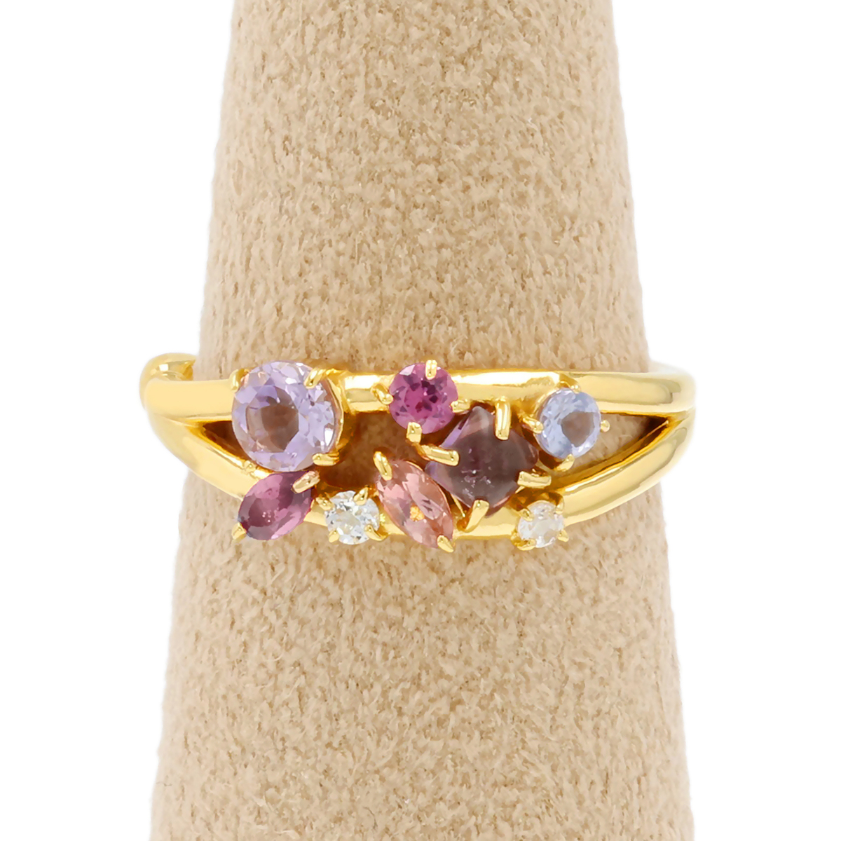 色とりどりの石をシェイプやカットに変化を持たせて組合せた、片耳用のイヤーカフ。シルバーカラーにはブルー系、ゴールドカラーにはピンク系の石を贅沢にあしらいました。様々な装いに合わせやすく、耳元をスタイリッシュに演出します