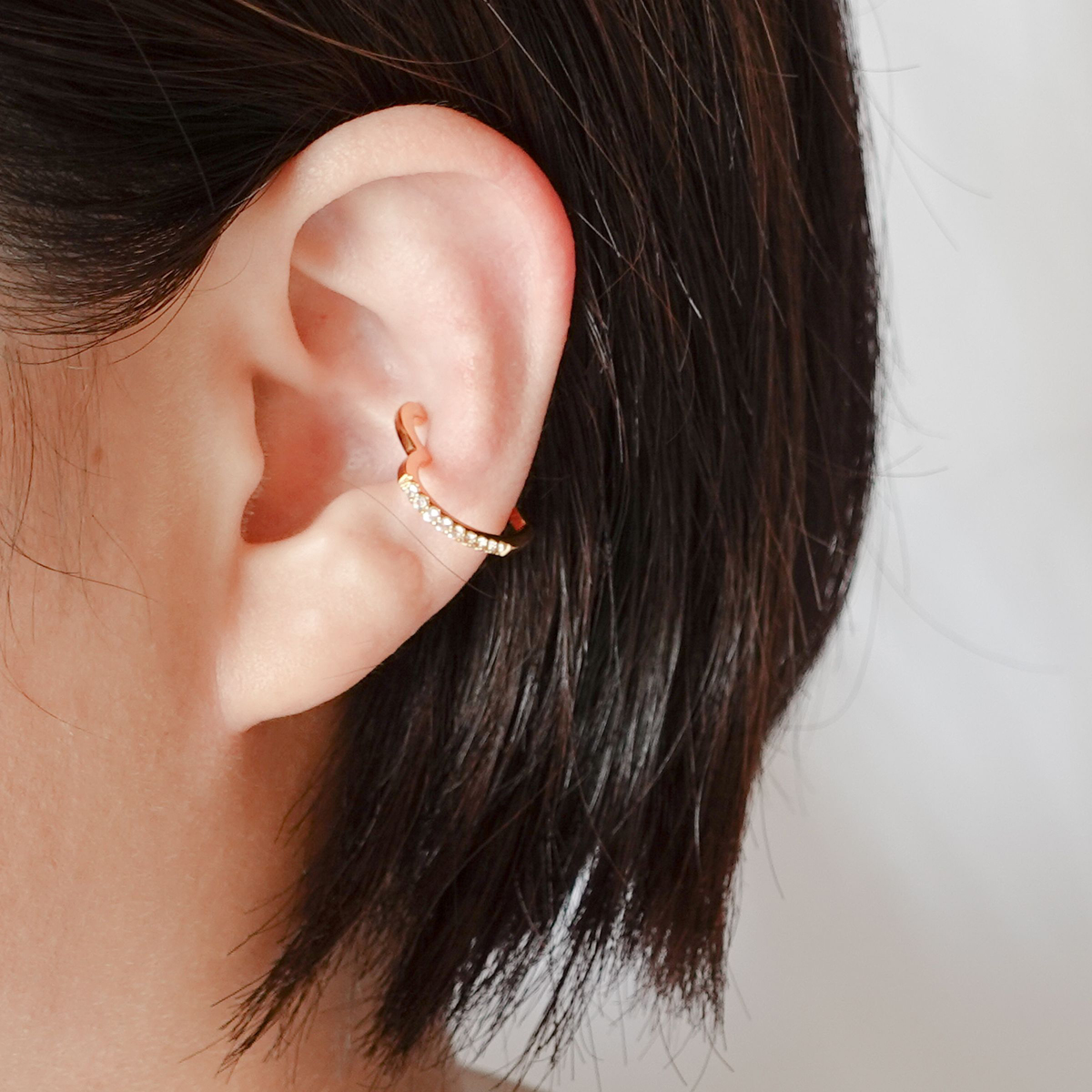 ピアスホールの有無を問わず、耳横の上部から装着して下へスライドさせるだけで、手軽に旬の耳元アレンジが楽しめます