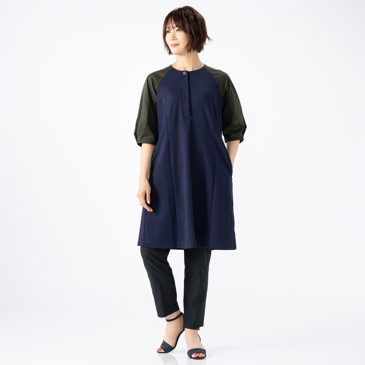 No. 746127 YukaKoshino 異素材切替のアンブレラヨークワンピース