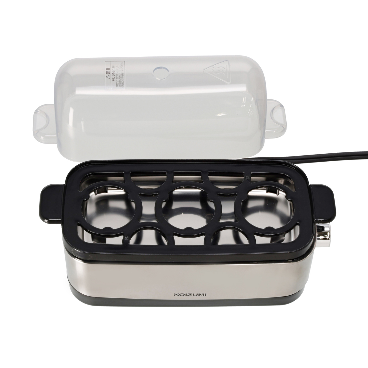 場所を取らないコンパクト設計で、1〜3個まで同時に調理可能です。専用の計量カップが付属しており、毎回水をマックス線まで入れればよく、測る手間はありません*