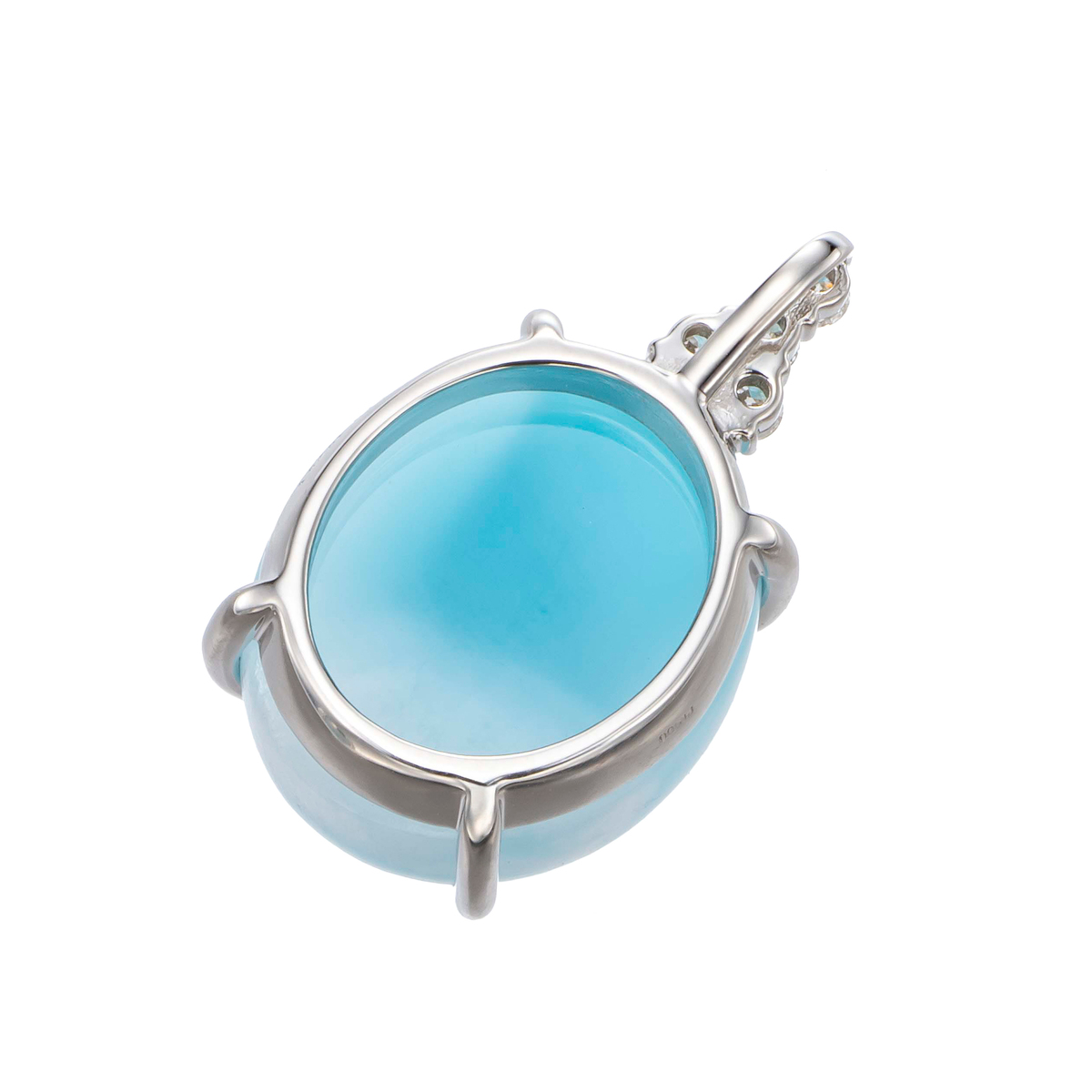 明るい海の波模様が印象的なラリマーを、14.00ctUPの大きさであしらったペンダントヘッド。プラチナの枠で停めた爽やかなデザインで、バチカン部分には4石のダイヤモンドを添えました