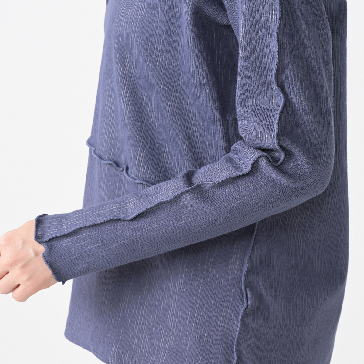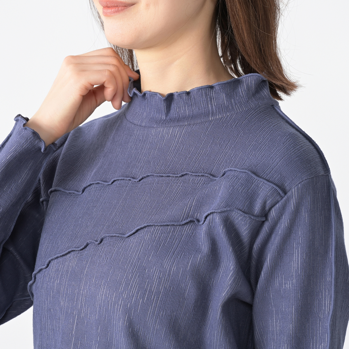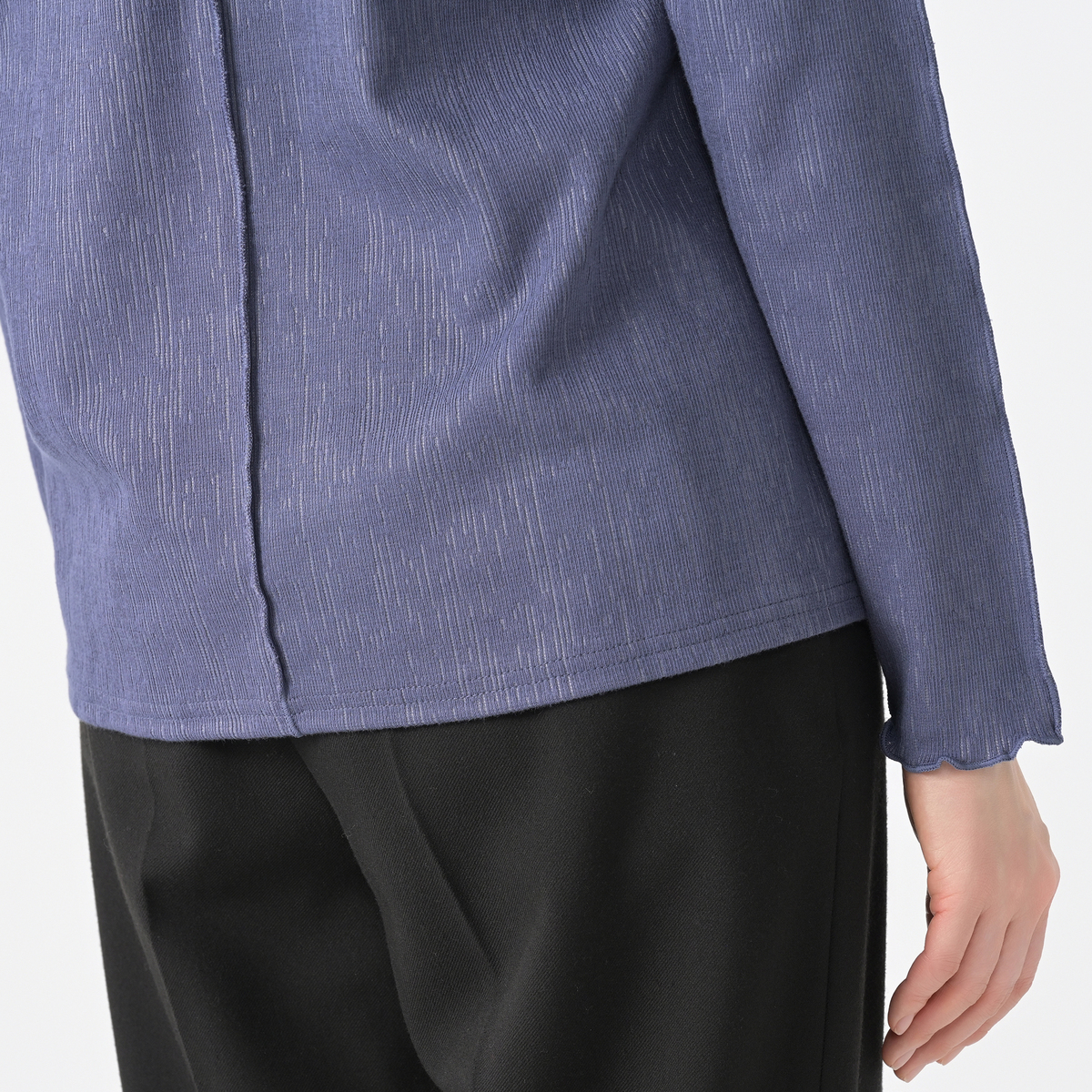 細かなラインが表情豊かなジャガード生地を使用し、表面の凹凸がスタイリングに個性をプラス。お出かけやカジュアルなシーンでも活躍します