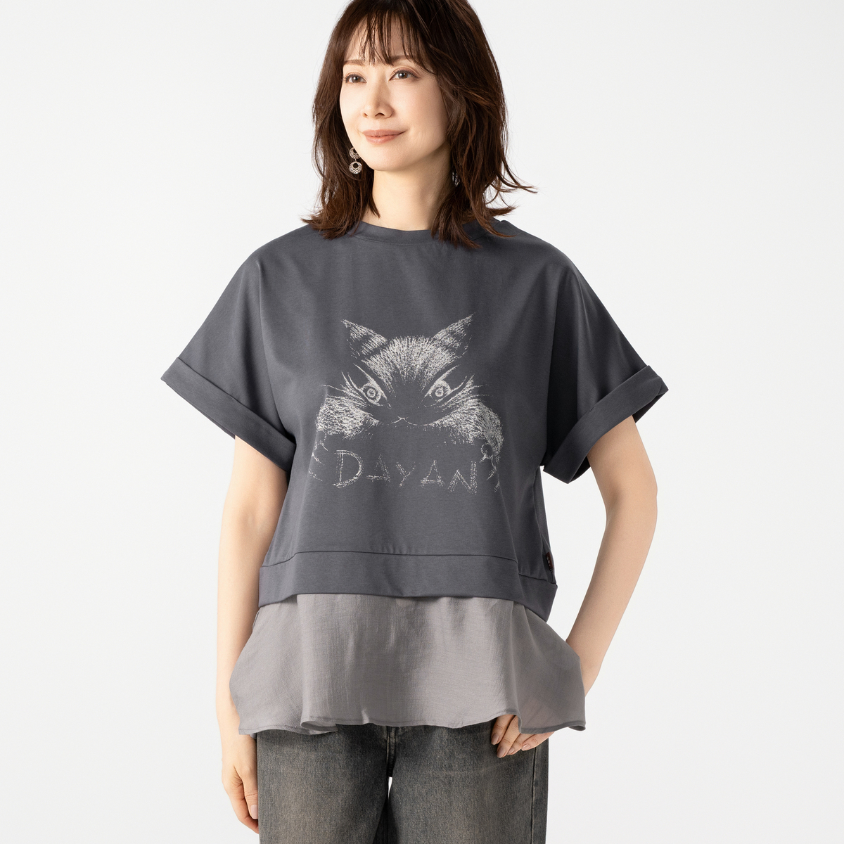 No. 746173 わちふぃーるど DAYANプリント シアー切替チュニック