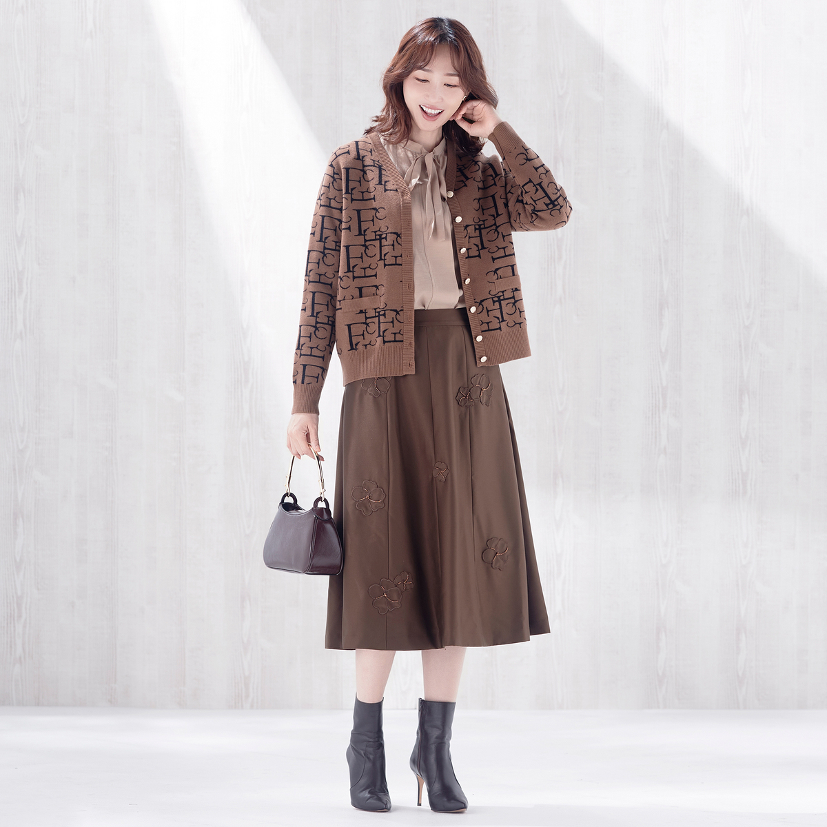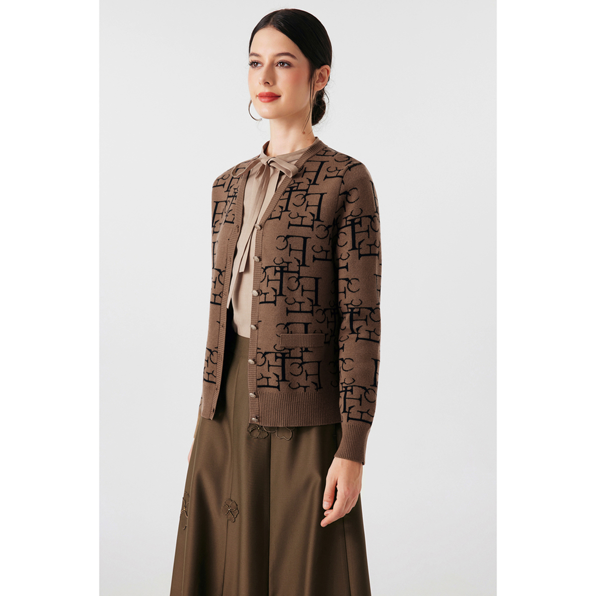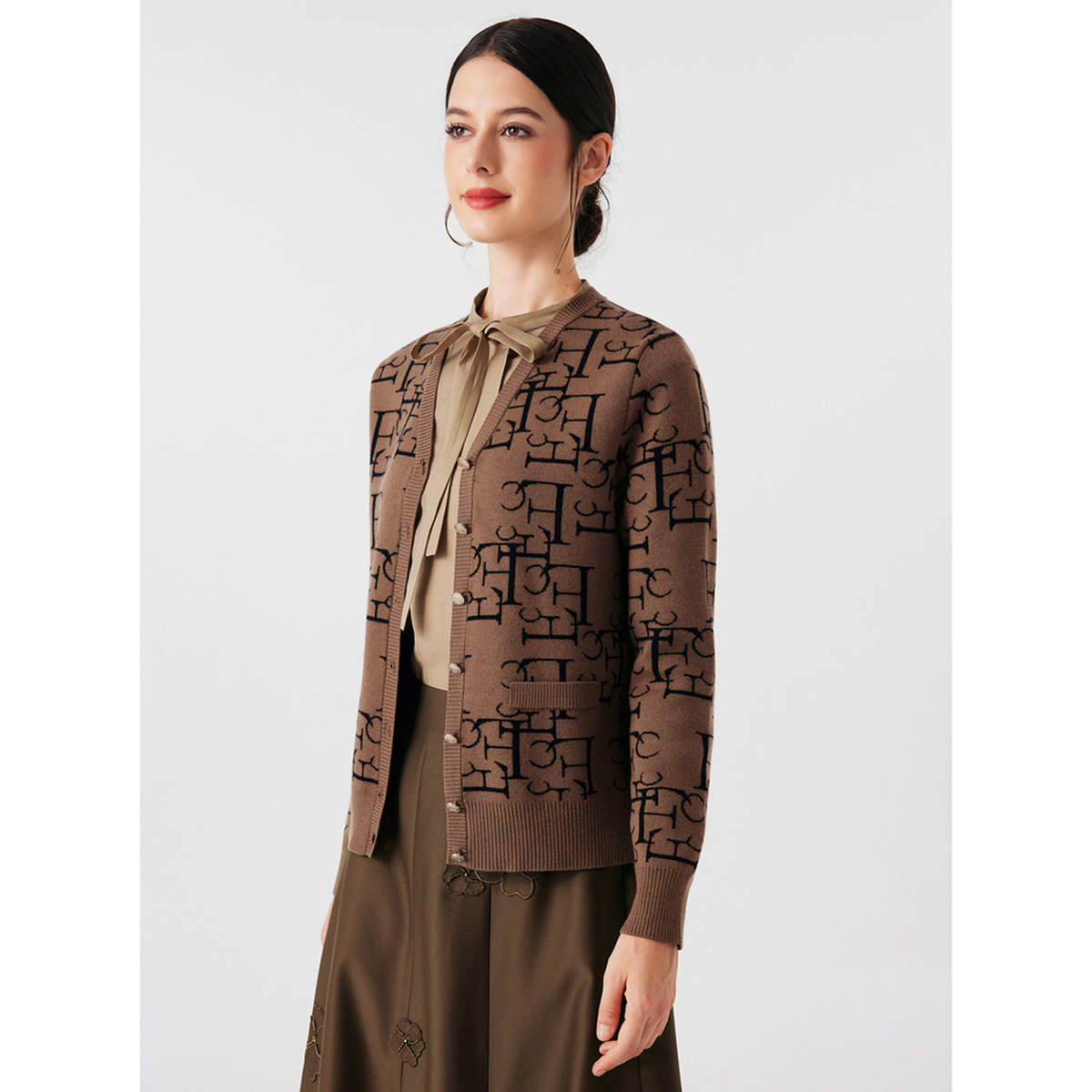 No. 746181 FEE CERISE ブランドロゴ柄メリノウールニットカーディガン