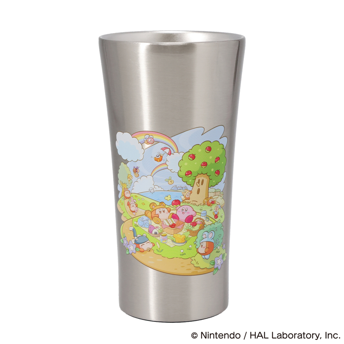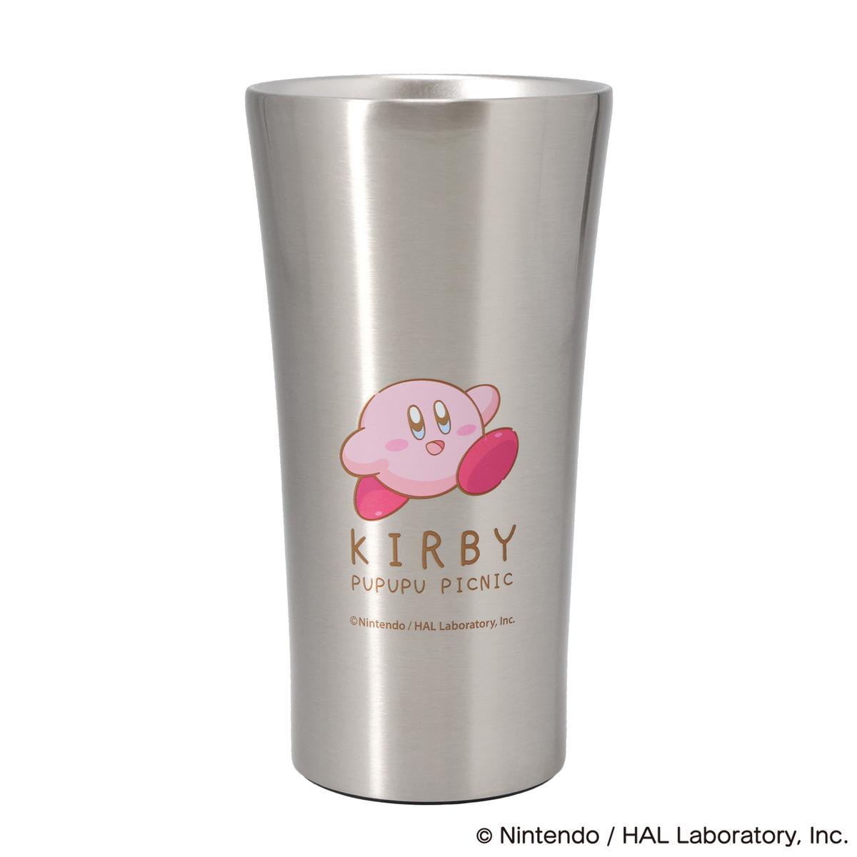 星のカービィデザインのステンレスタンブラー。真空二重構造で結露しにくく、冷たい飲みものは冷たさをキープ。温かい飲みものは冷めにくく、外側が熱くなりにくいので持ちやすい仕様です