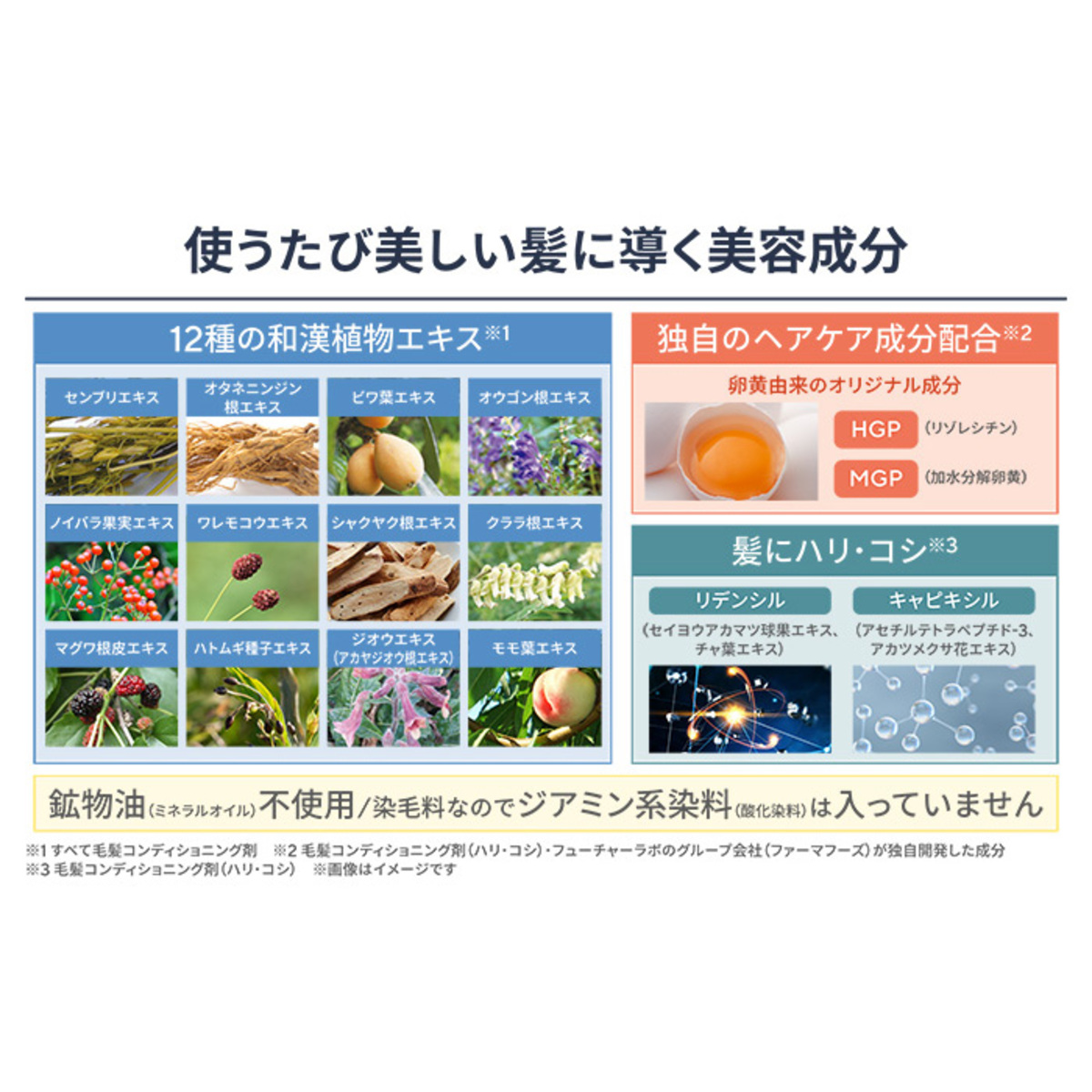 卵黄由来のオリジナル成分 HGP(リゾレシチン)、MGP(加水分解卵黄)、植物由来の毛髪ケア成分エルカラクトン(*3)を配合。毛髪にハリ・コシを与え、しなやかに整えます