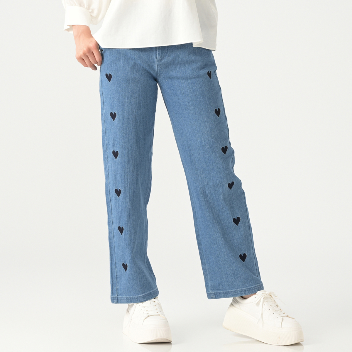 No. 746229 &LOVE むっちゃ幸せハート刺繍のストレートデニムパンツ