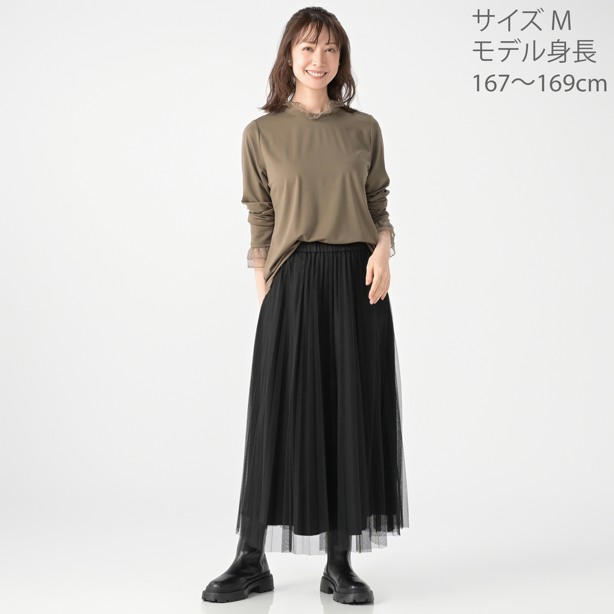 [商品寸法(ヌード)cm] サイズ バスト 着丈 S : 94(72〜80) 60 M : 100(79〜87) 60 L : 106(86〜94) 61 LL : 113(93〜101) 61 3L : 120(100〜108) 61 サイズ 肩幅 袖丈 S : 35 62 M : 36 62 L : 37 63 LL : 38 63 3L : 39 63 [素材] 本体:レーヨン65% ナイロン30% ポリウレタン5% チュール部分:ポリエステル100% [お手入れ] 洗濯機洗い可 [注意事項] ※商品寸法の誤差は多少発生します。ご了承下さい ※淡色製品には蛍光増白剤入り洗剤を使用しないで下さい ※アイロンの際は当て布を使用下さい ※洗濯後はすぐに脱水し、形を整えて干して下さい。長時間、水につけたままにしないで下さい ※洗濯の際、色落ちすることがありますので他の物と分けて洗って下さい ※洗濯の際には必ずネットを使用して下さい ※着用中の摩擦により色移りすることがあります。また、雨や汗等で濡れた状態で着用すると色移りすることがあります。その際はお早めに洗濯をして下さい ※この商品は長時間日光に当たり続けると色あせの恐れがありますので、ご注意下さい。洗濯後は必ず陰干しして下さい ※素材の特性上、着用や洗濯時の摩擦により毛羽立ち、毛玉が発生します。その際はお早めに毛玉取り器等で手入れをして下さい ※デリケートな素材を使用していますので、爪やアクセサリーなどの引っ掛かりによりキズがつきやすくなっております。縫目や生地を強く引っ張らないように注意して下さい 【中国製】