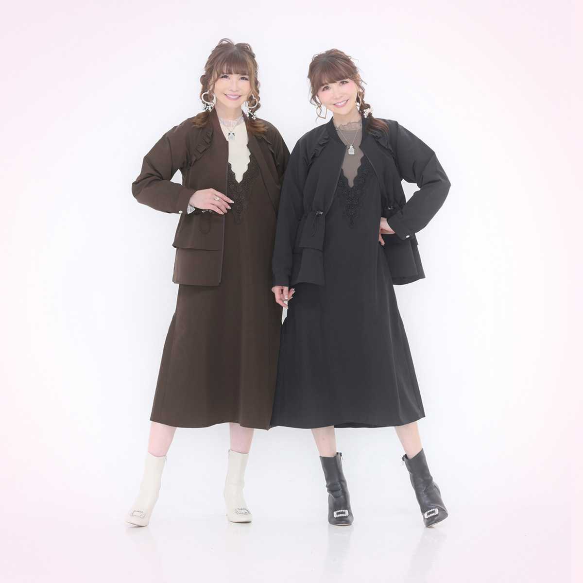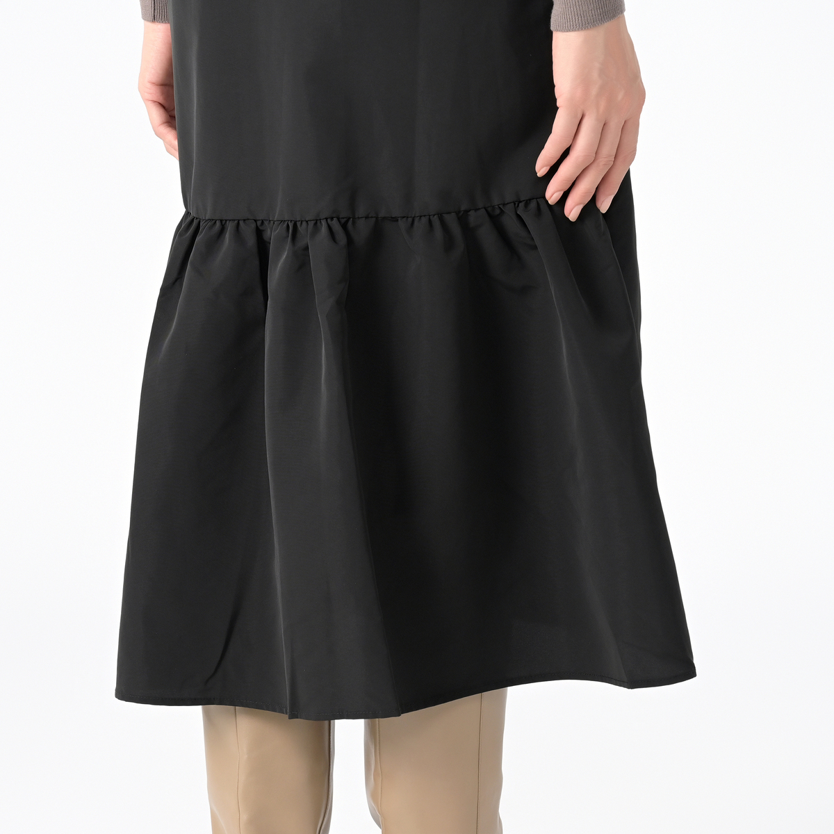前裾は切り替えなしのすっきりデザイン、後ろ裾には切り替えフリル付きでエレガントな動きを演出。両脇には便利なポケット付きです