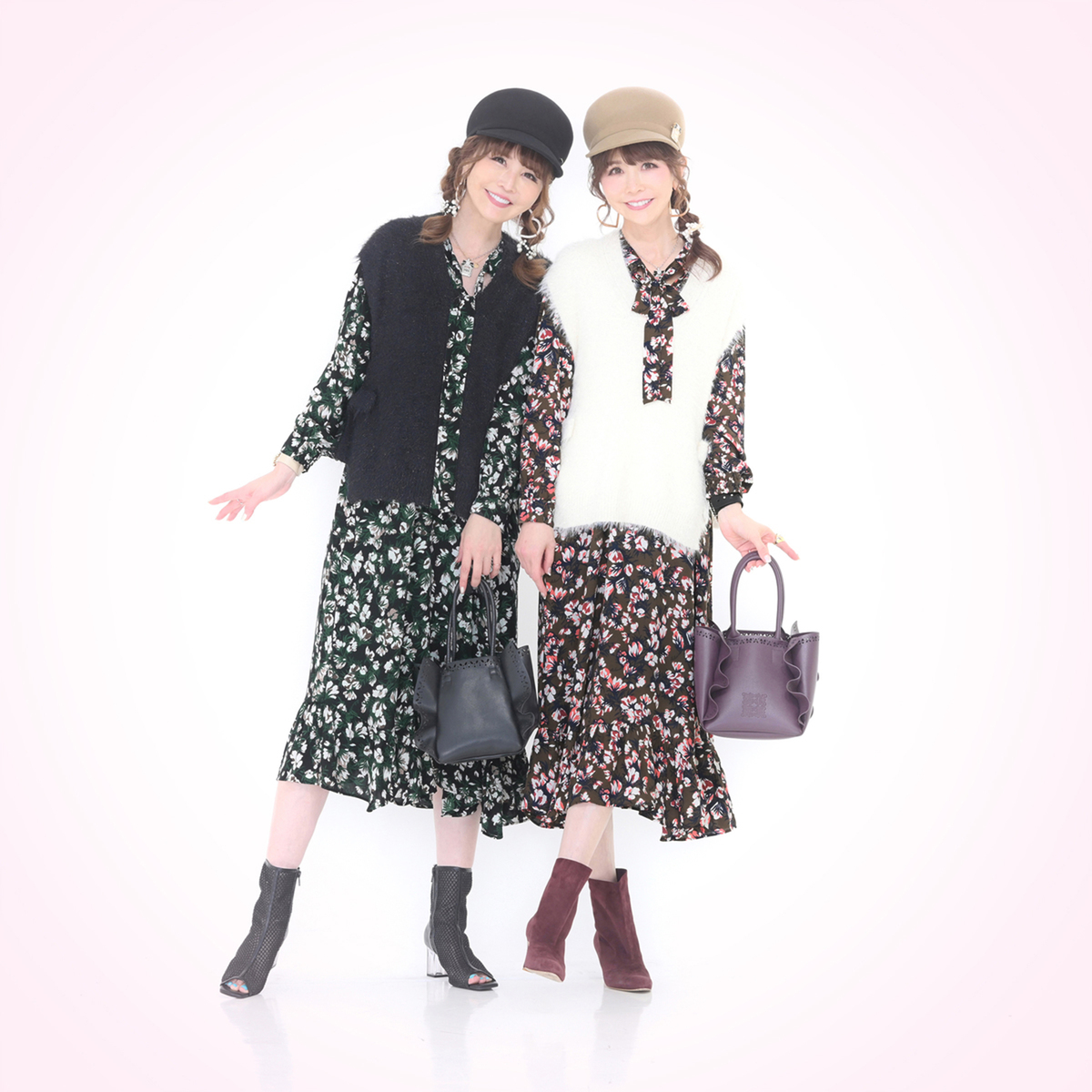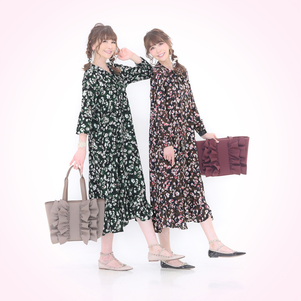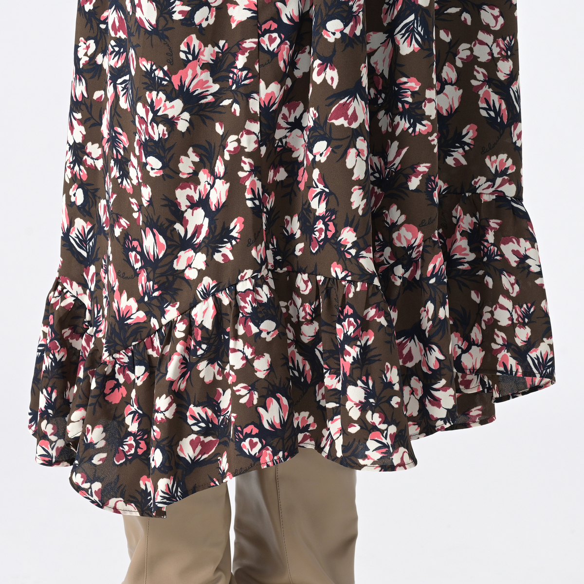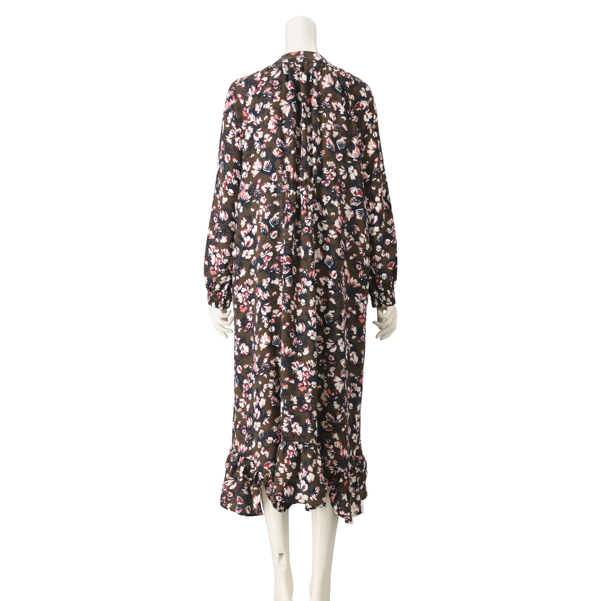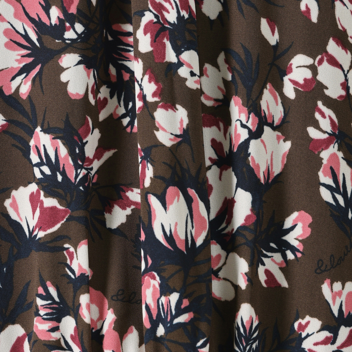 こっくりとした色合いのフラワー柄をプリントしたワンピース。花びらの中に隠れハートをふんだんに散りばめ、柄に馴染ませた&LOVEのロゴはさり気ないポイントに*。裾の切替え部分が動くたびに揺れ、体のラインを拾いにくくすっきりとラフに着こなせるAラインシルエットです