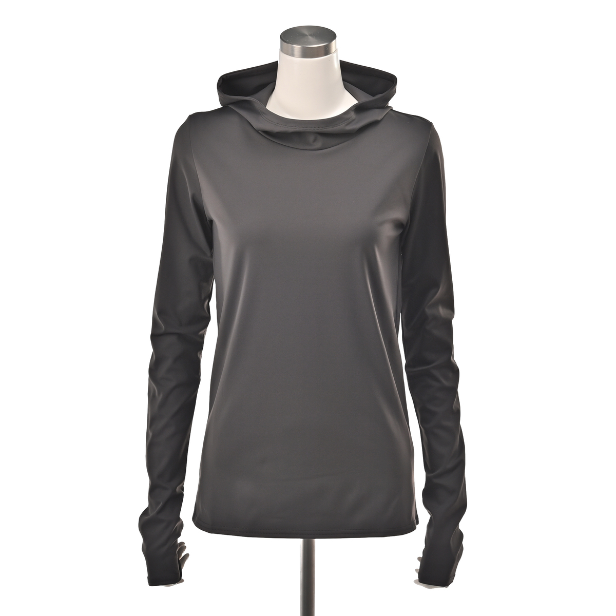 いつものハイネックと同じ素材なのが気になり購入してみました。 ハリのある素材はいつも通りでしかもフードがカッコ良いです。とても気に入りました。 購入して良かったです。