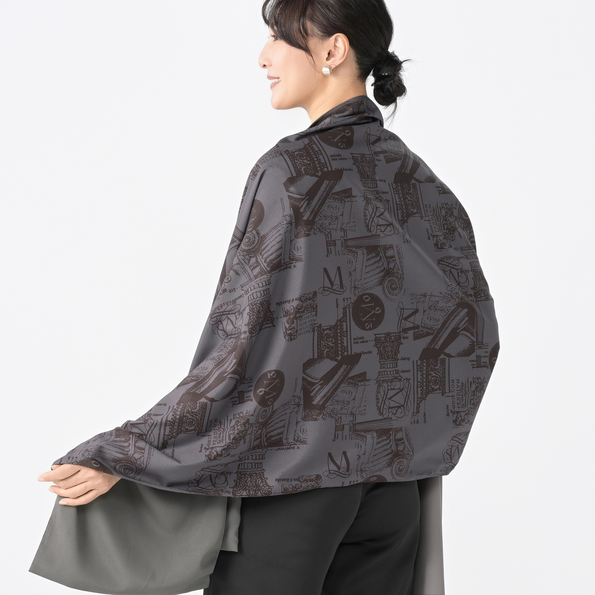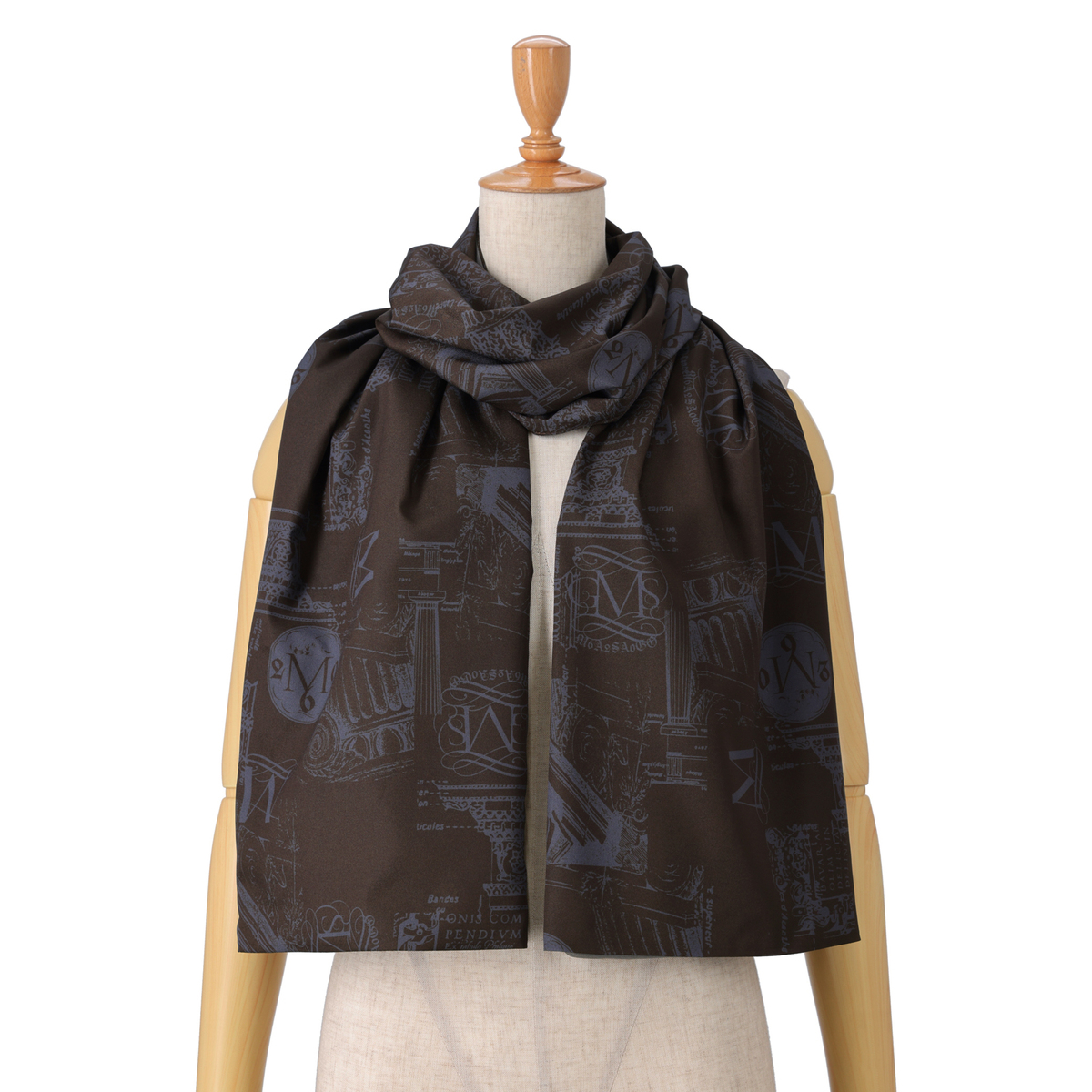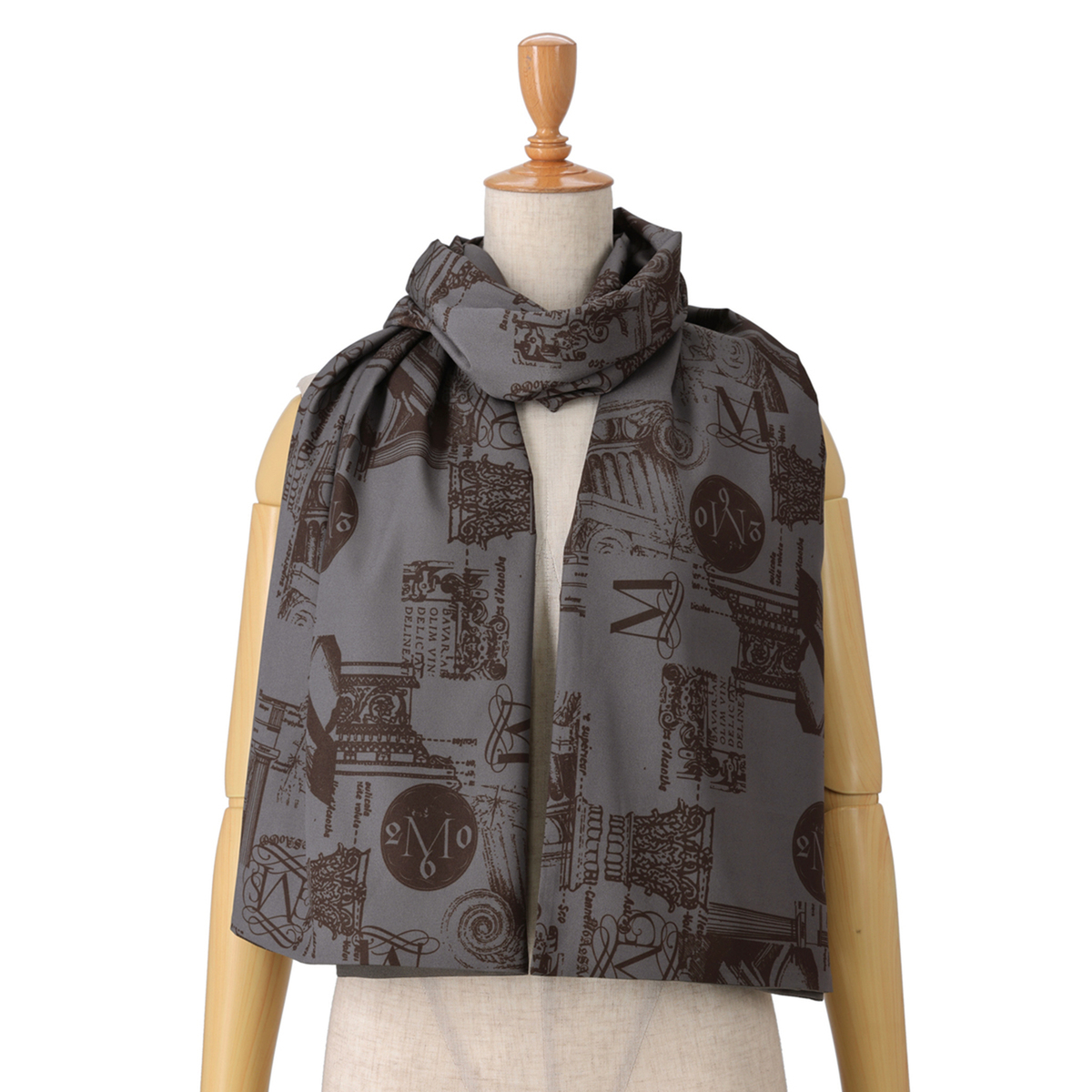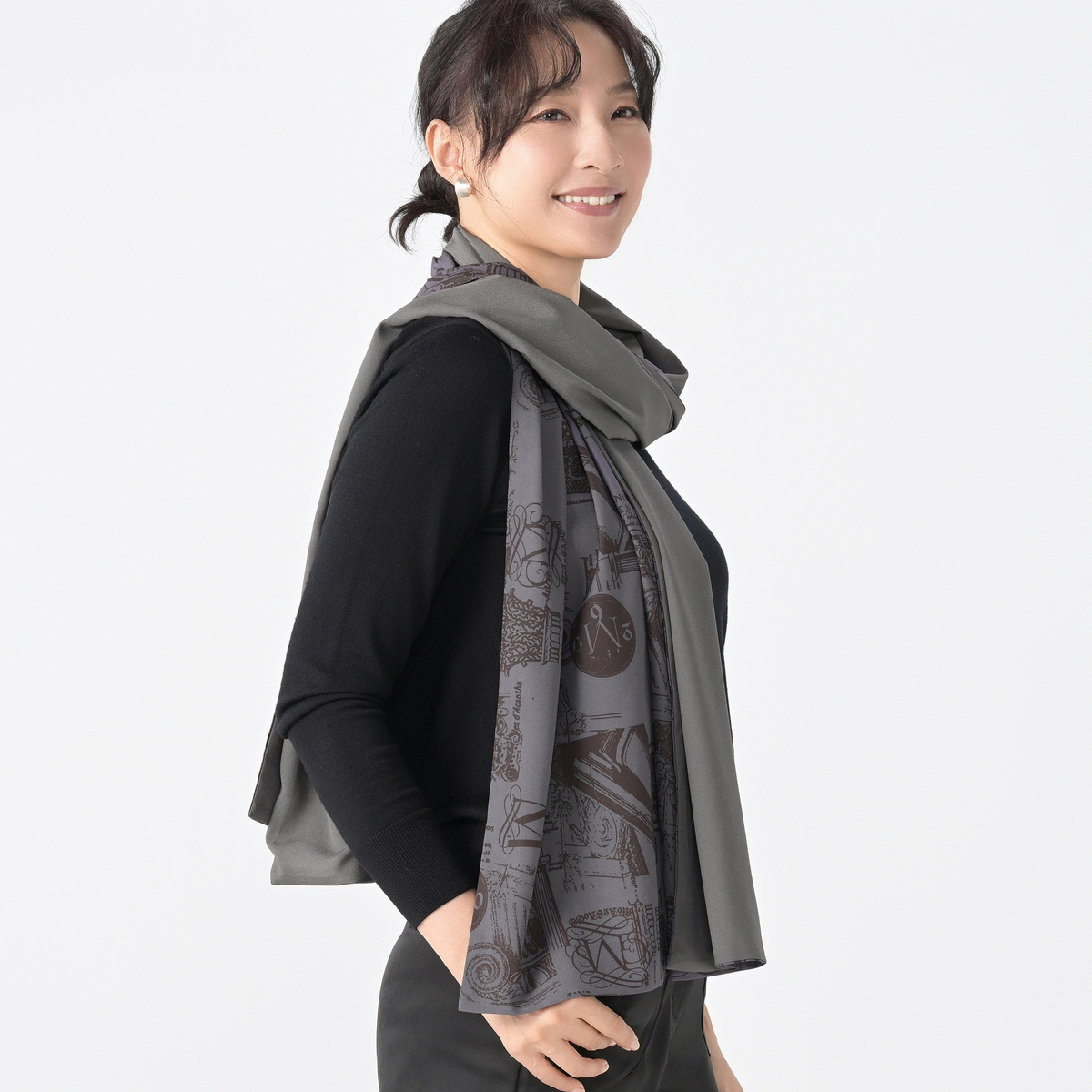 オリジナルプリントをあしらったストール。長さがあるので巻き方のアレンジもしやすく、お洒落なプリント柄がコーディネートのアクセントとして活躍します