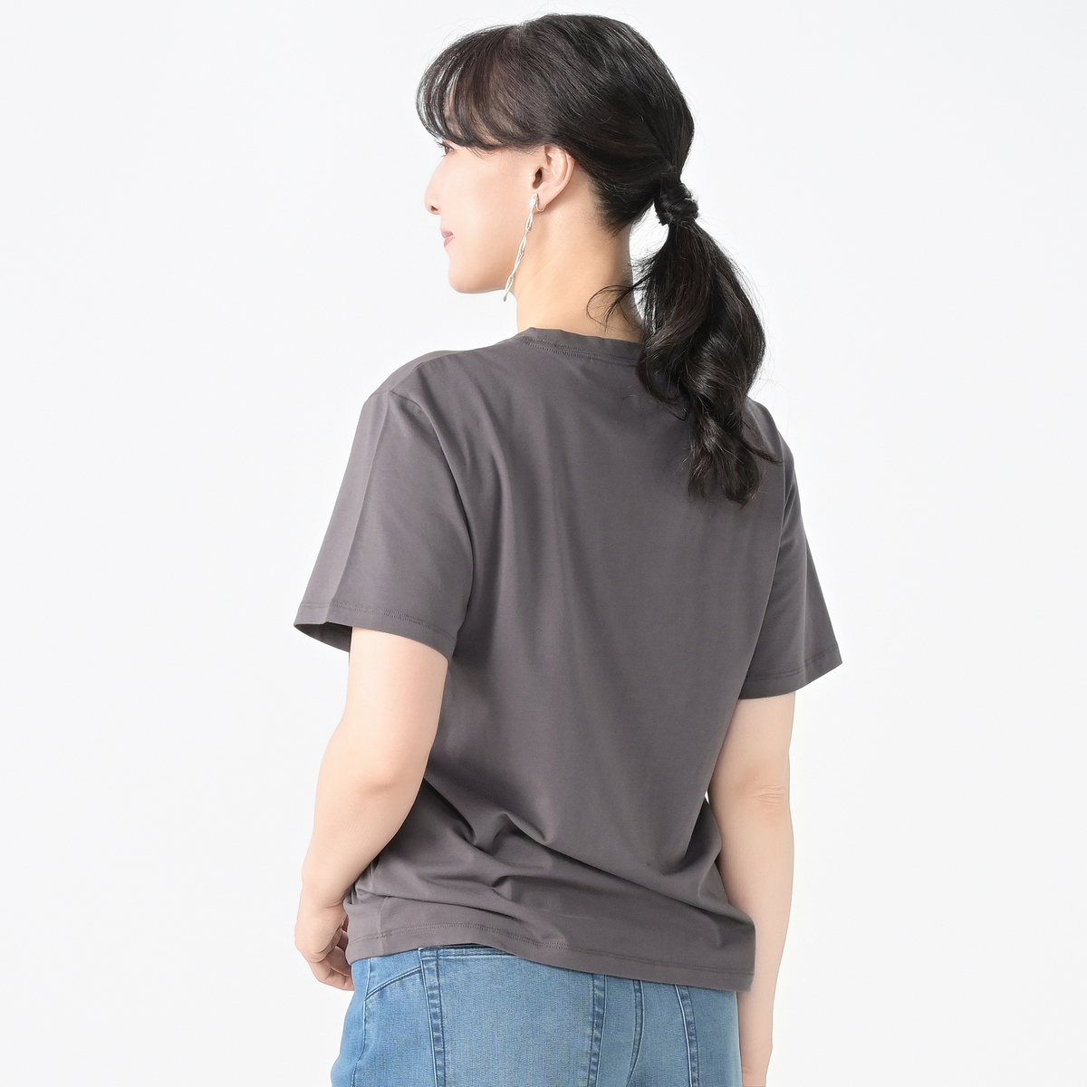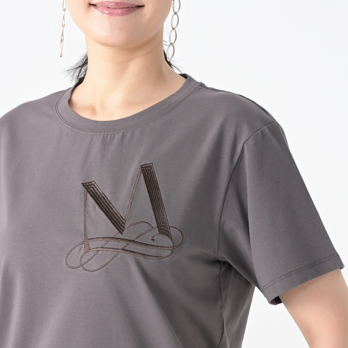 クリアーベア天竺を使ったTシャツです。身ごろに施した刺繍がさりげなく存在感を放ち、シンプルながらも大人の装いに華やかさを添えます