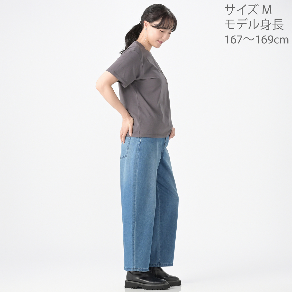 デニムやスカートなど様々なボトムスと好相性。カーディガンを羽織れば季節の変わり目にも重宝します