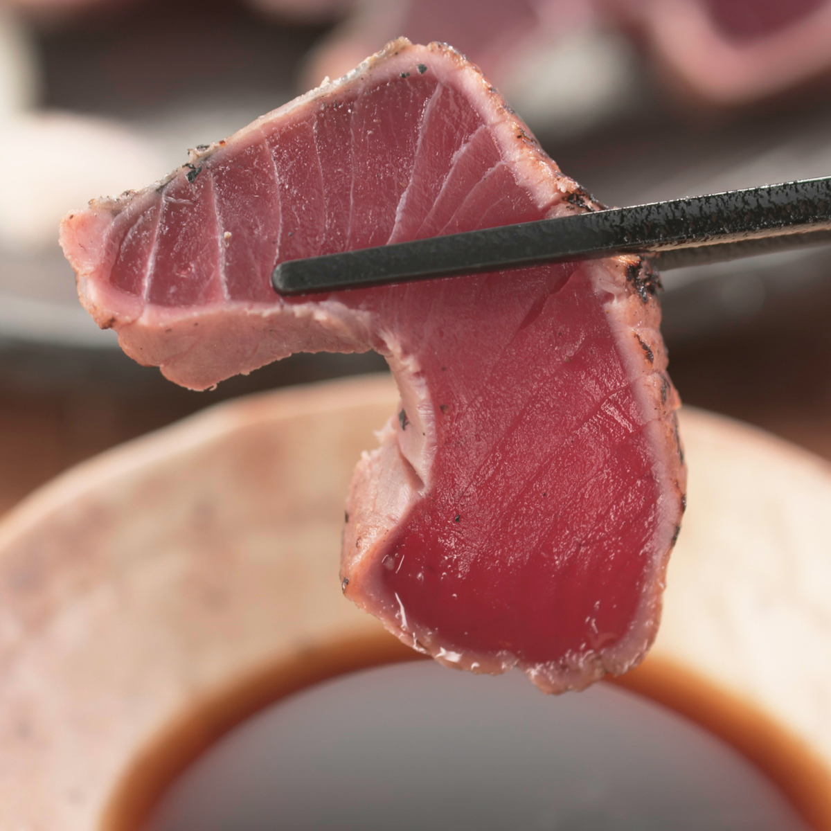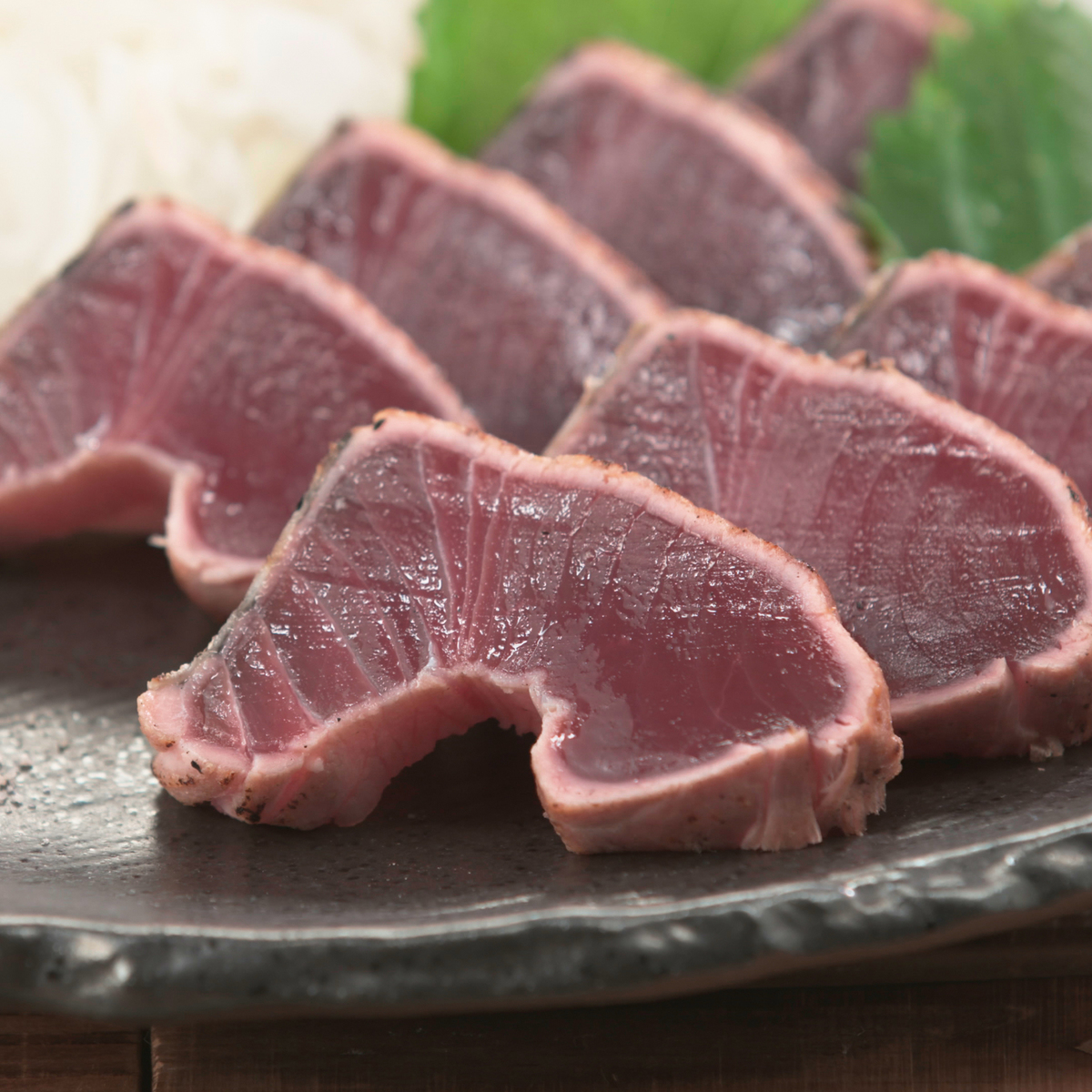 かつお一本釣り船団が太平洋で釣り上げた鮮度抜群のかつおを、環境の整った工場で一本ずつ丁寧に炭焼き。獲れたての味をご家庭で楽しめる、カツオのたたきです