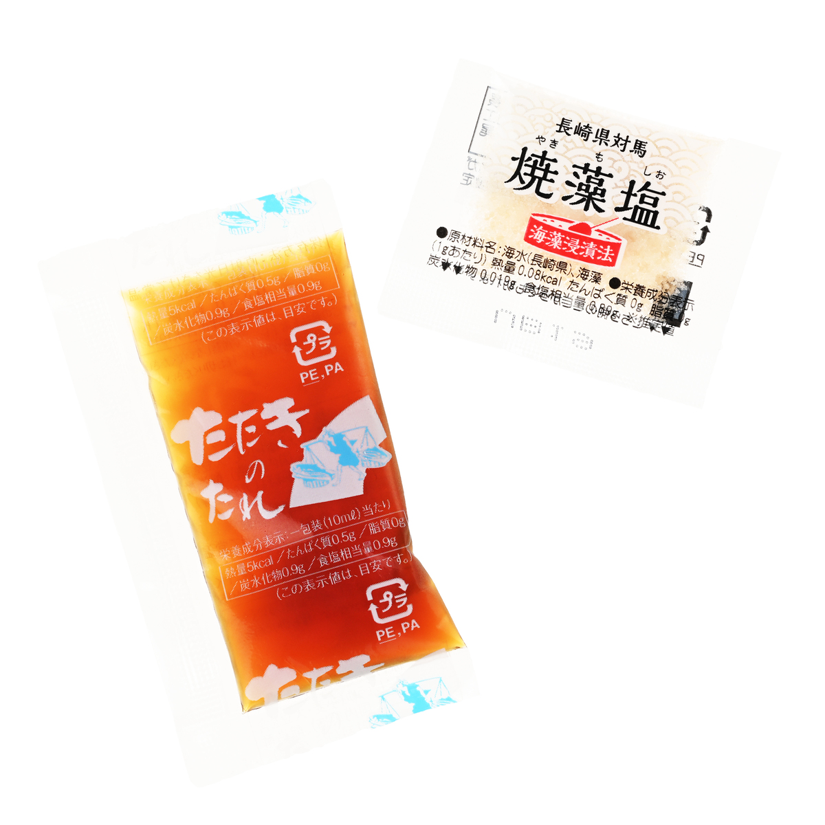 [アレルギー物質特定原材料8品目] 小麦 [商品内容] ・500g(3P) ・タタキのタレ10ml×2袋 ・焼藻塩1g×2袋 [賞味期間] 製造日より30日 [保存方法] 開封前:要冷凍(ー18℃以下)で保存してください 開封後:解凍後は当日中にお召し上がりください [お召し上がり方] 氷水での解凍: 1.魚が完全に浸かる程度の氷水を用意します 2.真空包装のまま、氷水に30分程度漬け置きし、解凍します 3.魚の表面を触り、少し柔らかければスライスします(魚の中心は少し硬い状態) 4.スライス後に再び冷蔵庫に入れ、魚の中心部まで完全に解凍させます 冷蔵庫での解凍: 冷凍の鰹のタタキを冷蔵庫で10時間程度解凍してからお召し上がりください。冷蔵庫に移動してから5〜6時間後くらいの少し硬い程度が切りやすいタイミングです。スライスした後も完全に解凍できるまでは冷蔵庫に入れておいていただいた方が美味しくお召し上がりいただけます 流水での解凍: 真空パックのまま、流水で5〜10分間解凍してください。完全に解凍させず、包丁が使用できる程度の状態で料理するのがコツです ※鰹独特の臭みがないのが最大の特徴ですので、厚切り(1cm以上を目安にスライス)にしてお召し上がりいただくことで、味・食感が活きて美味しく召し上がれます ※お好みの薬味を添えてお刺身でお召し上がりください [注意事項] ※一本釣り鰹は鮮度が良い為『縮み』が起こり易く、完全解凍する前に常温に置くとドリップと一緒に旨味が逃げてしまい、魚全体の食感も悪くなってしまいます [原料原産地] 鰹(国産) タレ:しょうゆ(小麦・大豆を含む、国内製造) 焼藻塩:海水(長崎県) [原産国] 日本 [原材料] 鰹(国産)、 タレ:しょうゆ(小麦・大豆を含む、国内製造)、醸造酢/調味料(アミノ酸等) 焼藻塩:海水(長崎県)、海藻