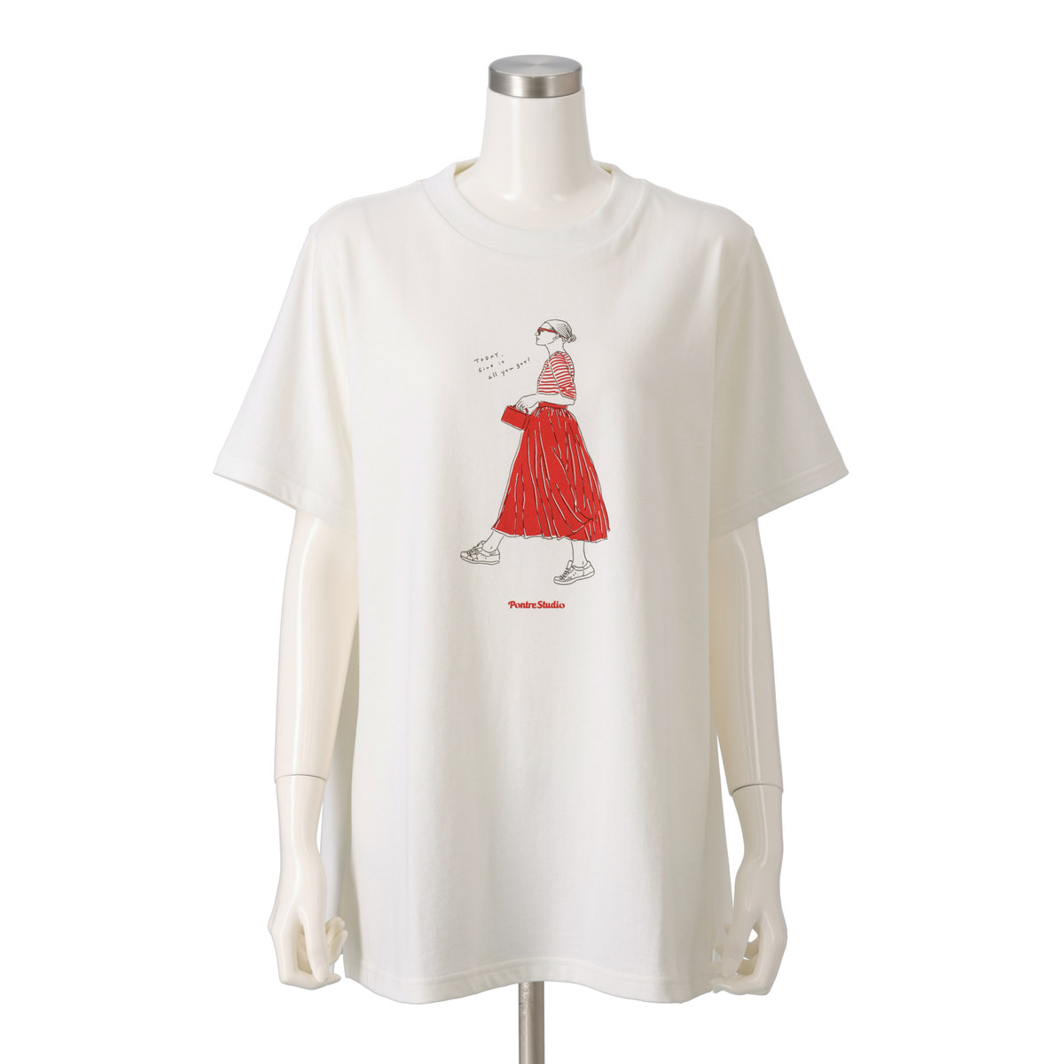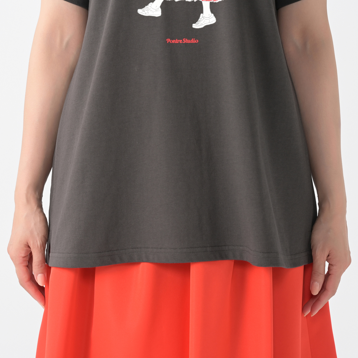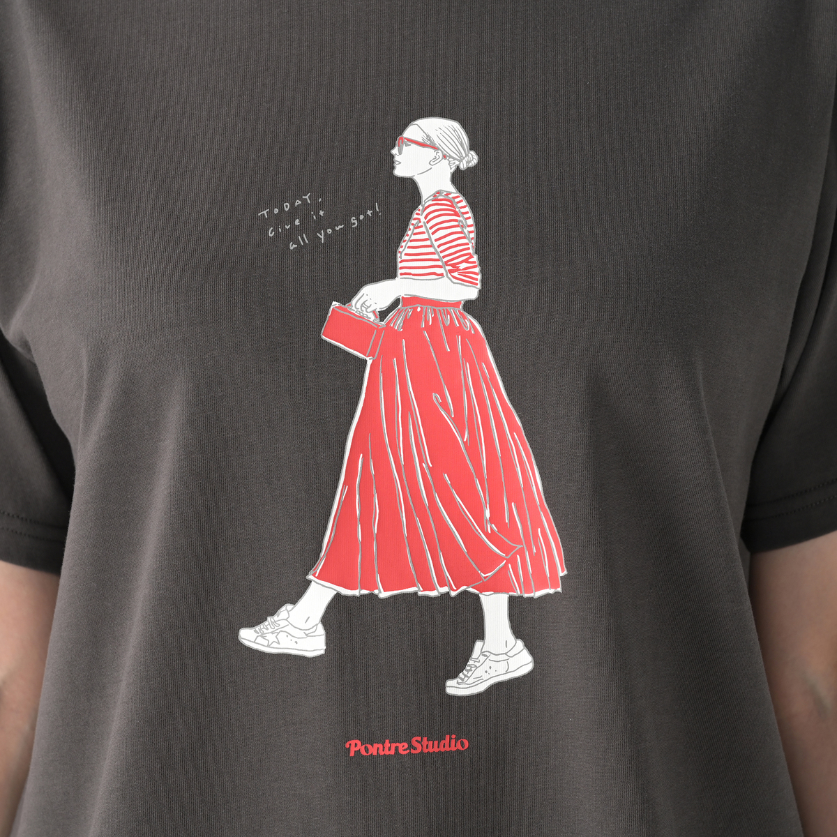 赤を基調としたファッションのパリジェンヌが颯爽と街を歩く姿を表現した作品「Red Fashion Madam Poster」。ライフスタイルや自分らしさを大切にするコンセプトを込めてデザインされています。この素敵な作品をプリント。程よいゆとり感が快適な、着心地よいAラインのチュニックTEEです