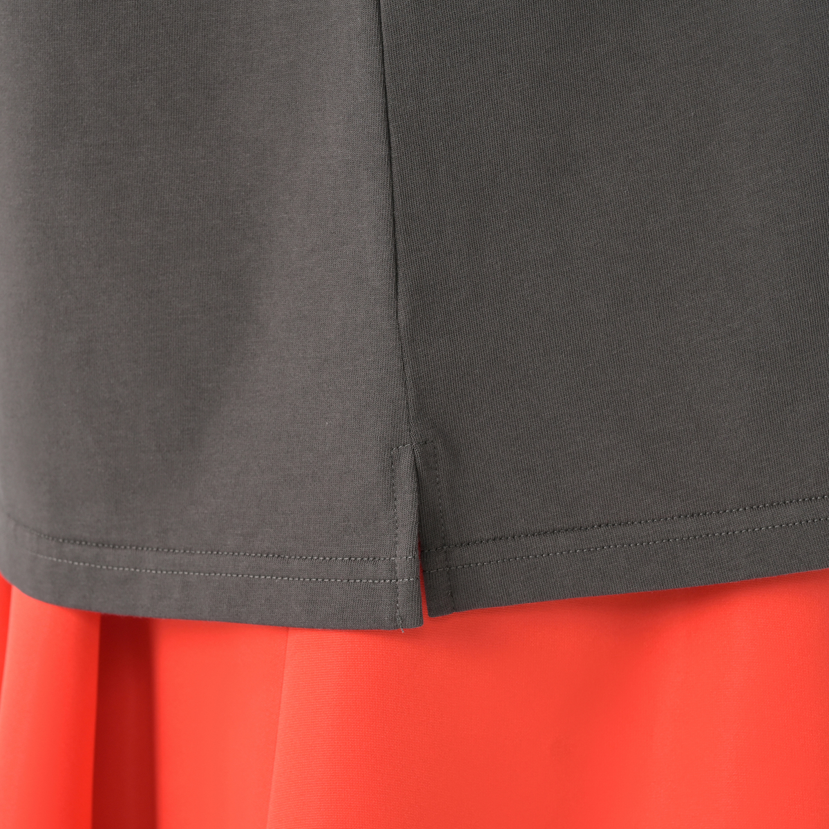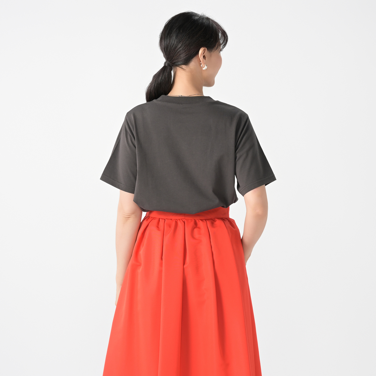 40番手双糸の天竺編みカットソーにバイオ加工を施し、毛羽立ちを抑え、滑らかに仕上げました。清涼感のあるさらりとしたタッチに、柔らかな風合いとストレッチ感も魅力です