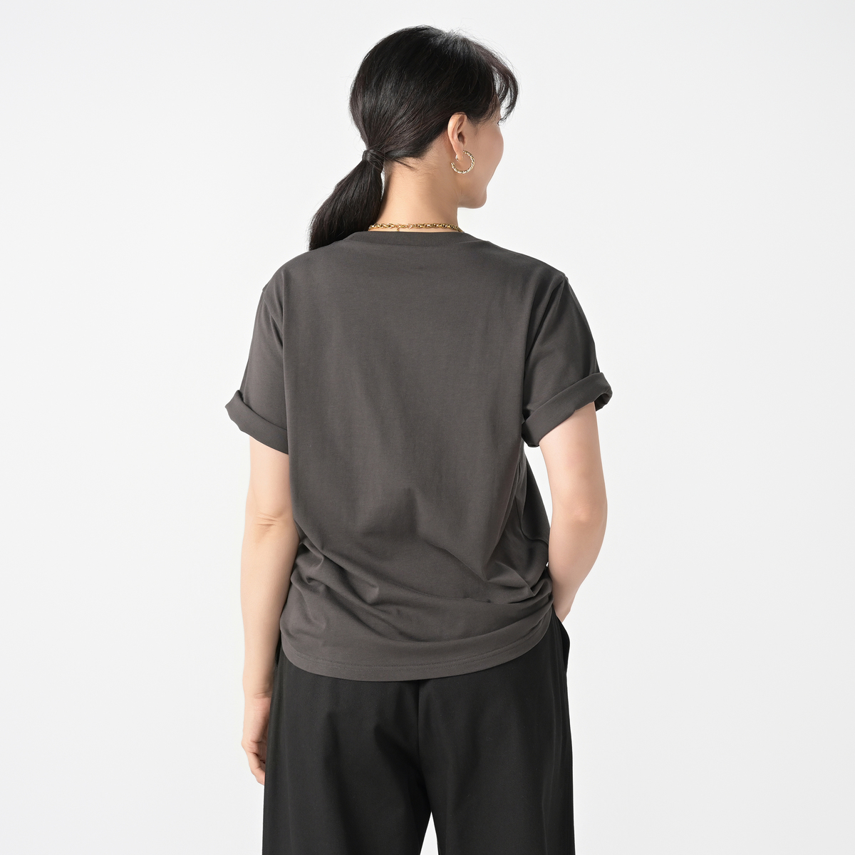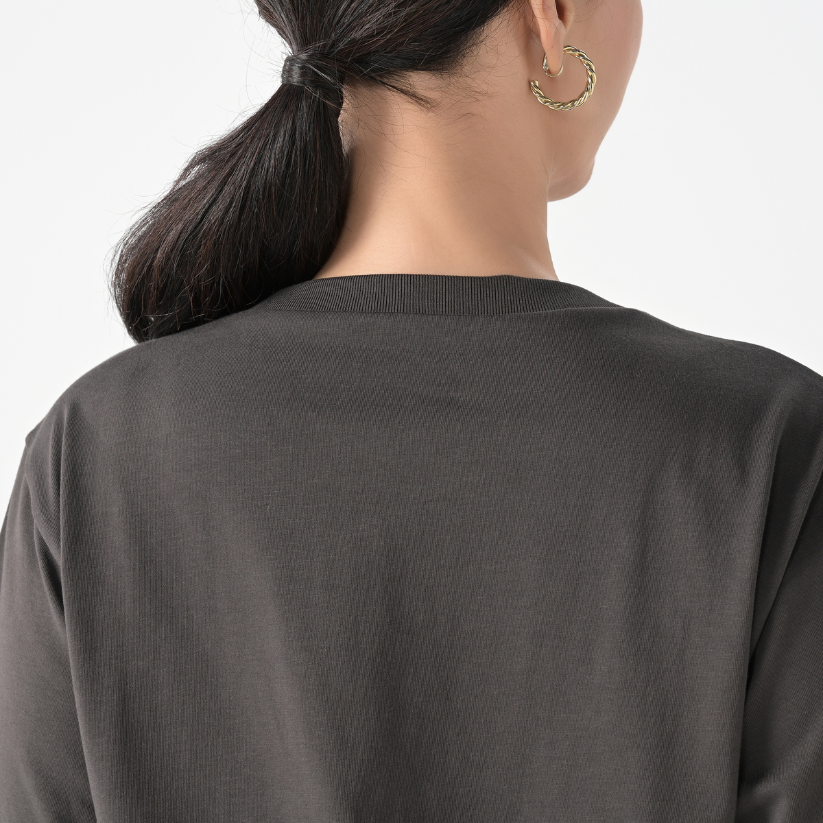 程よいゆとり感で着心地よいベーシックなシルエット。40番手双糸の天竺編みカットソーにバイオ加工を施し、毛羽立ちを抑えて滑らかに仕上げました。清涼感のあるさらりとしたタッチで、柔らかな風合いとストレッチ感も魅力です