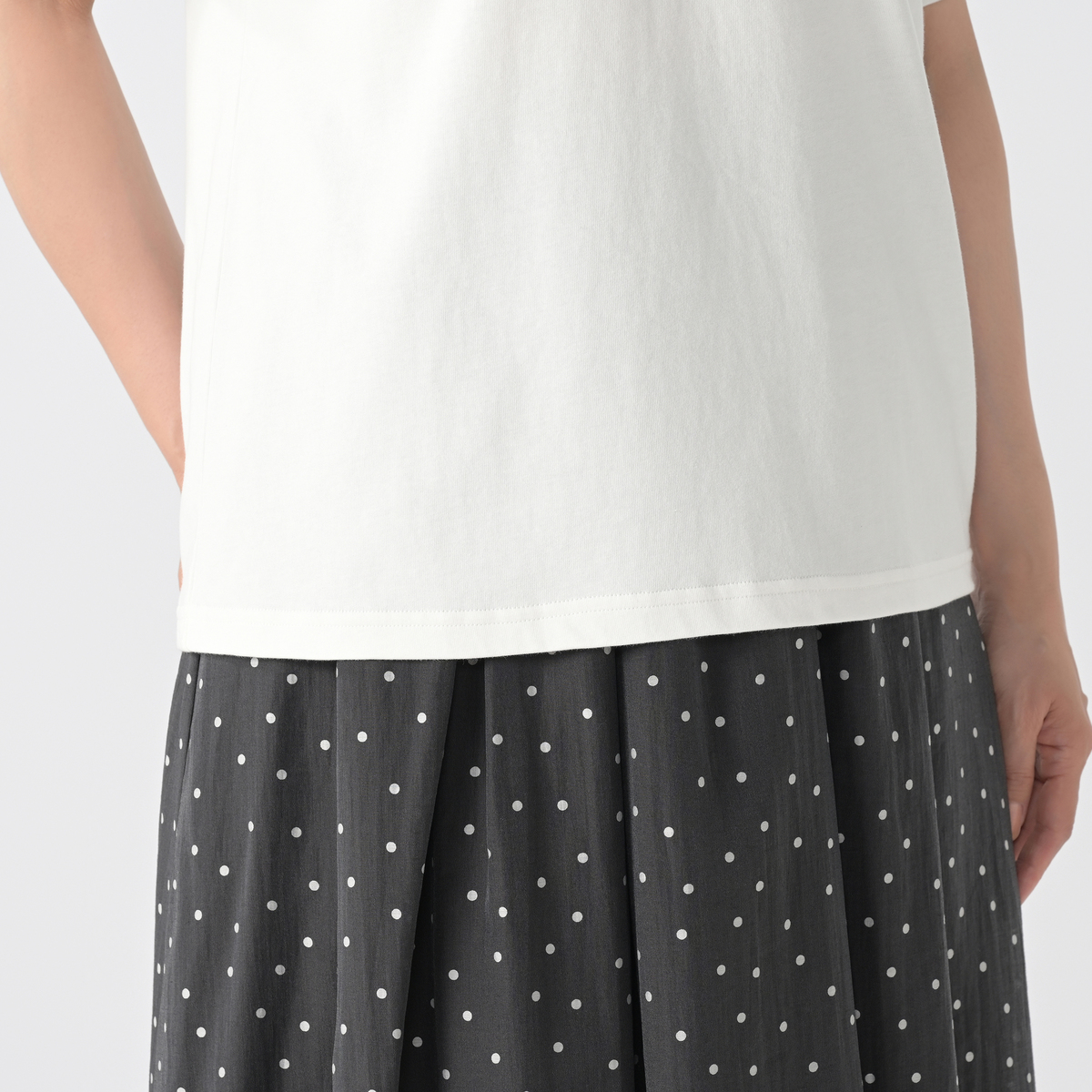程よいゆとり感で着心地よいベーシックなシルエット。40番手双糸の天竺編みカットソーにバイオ加工を施し、毛羽立ちを抑え、滑らかに仕上げました。清涼感のあるさらりとしたタッチに、柔らかな風合いとストレッチ感も魅力です