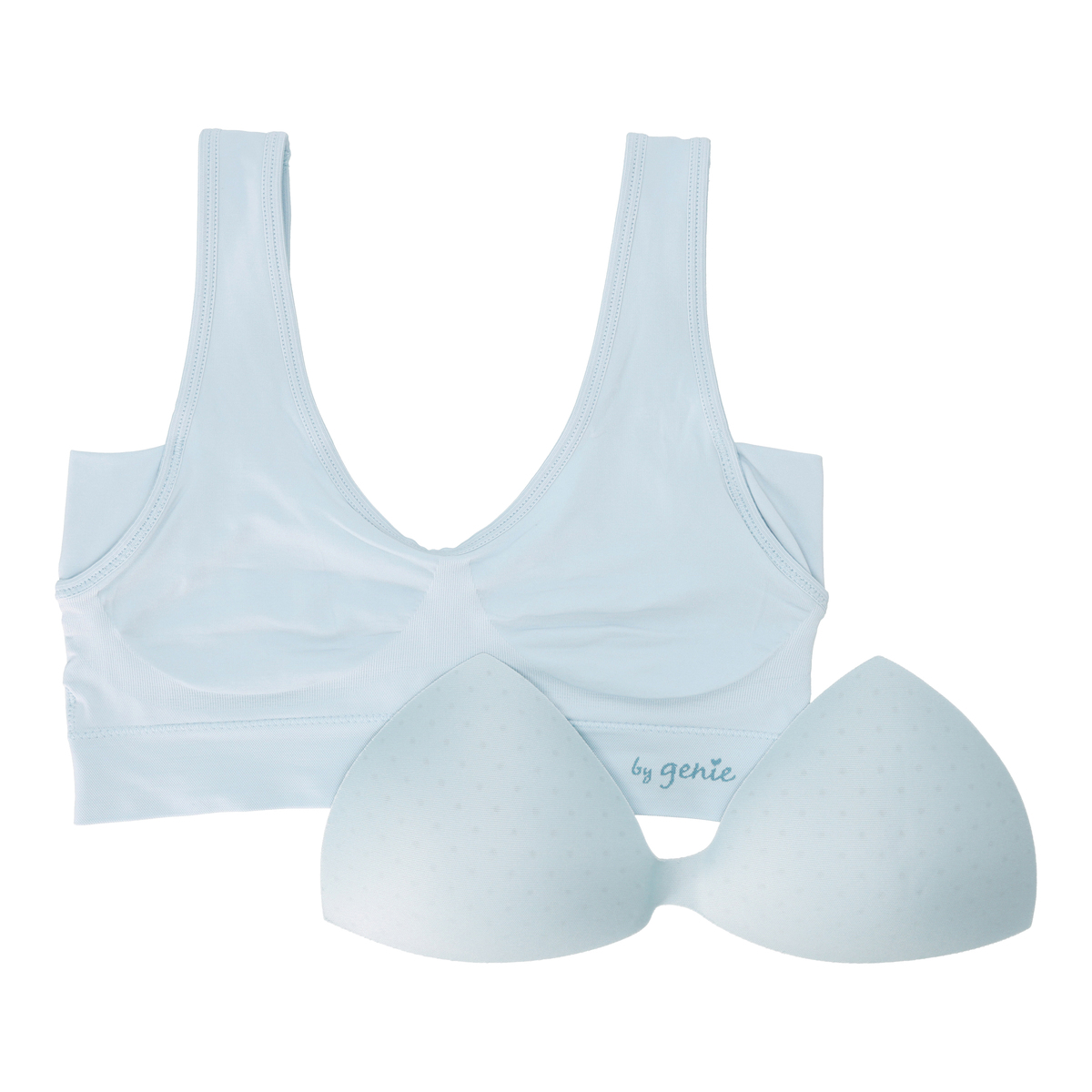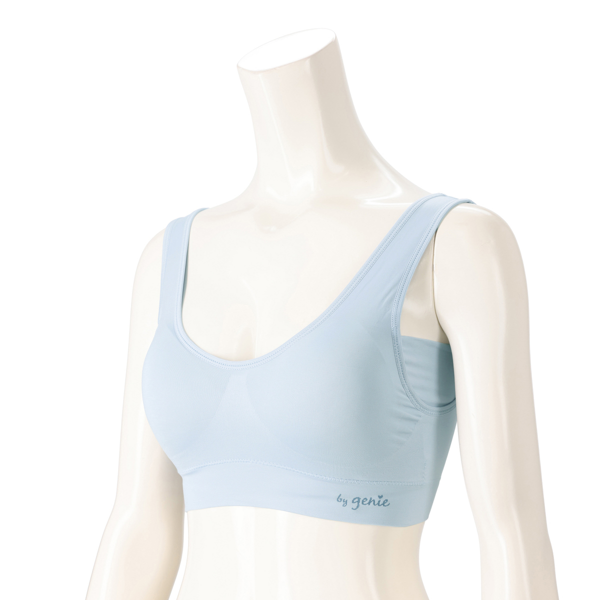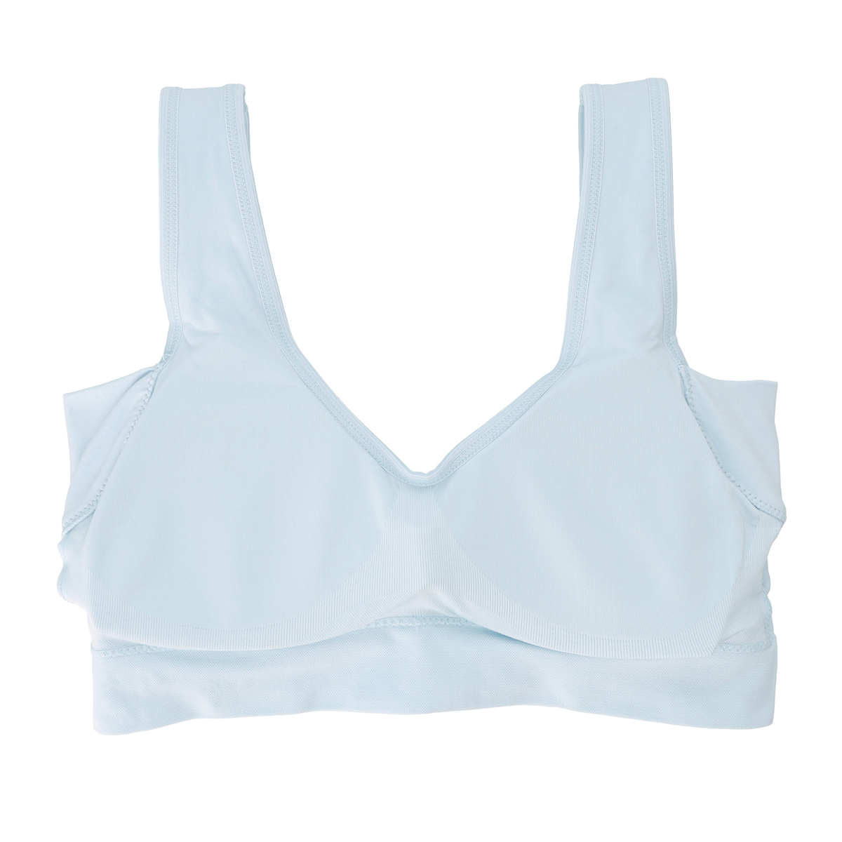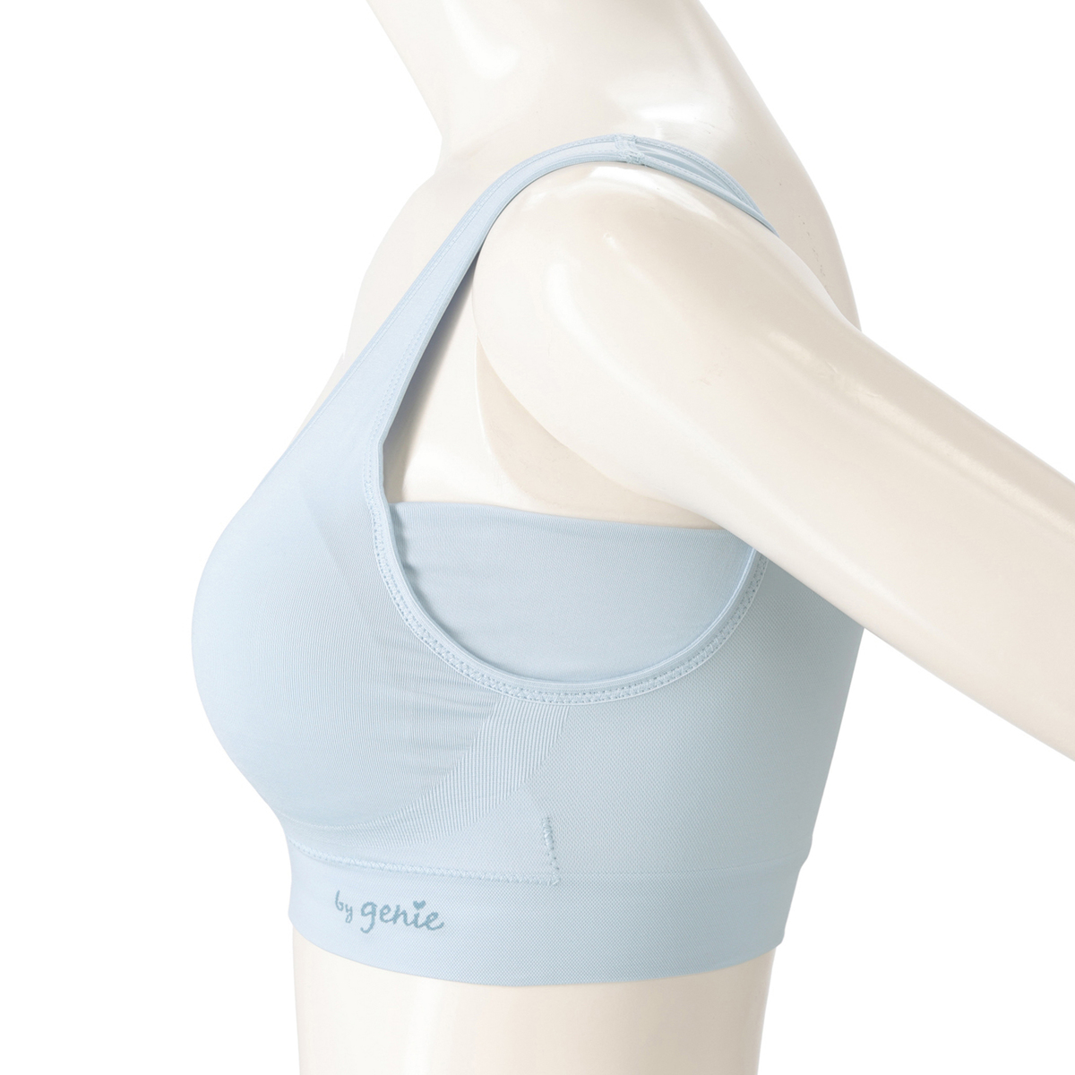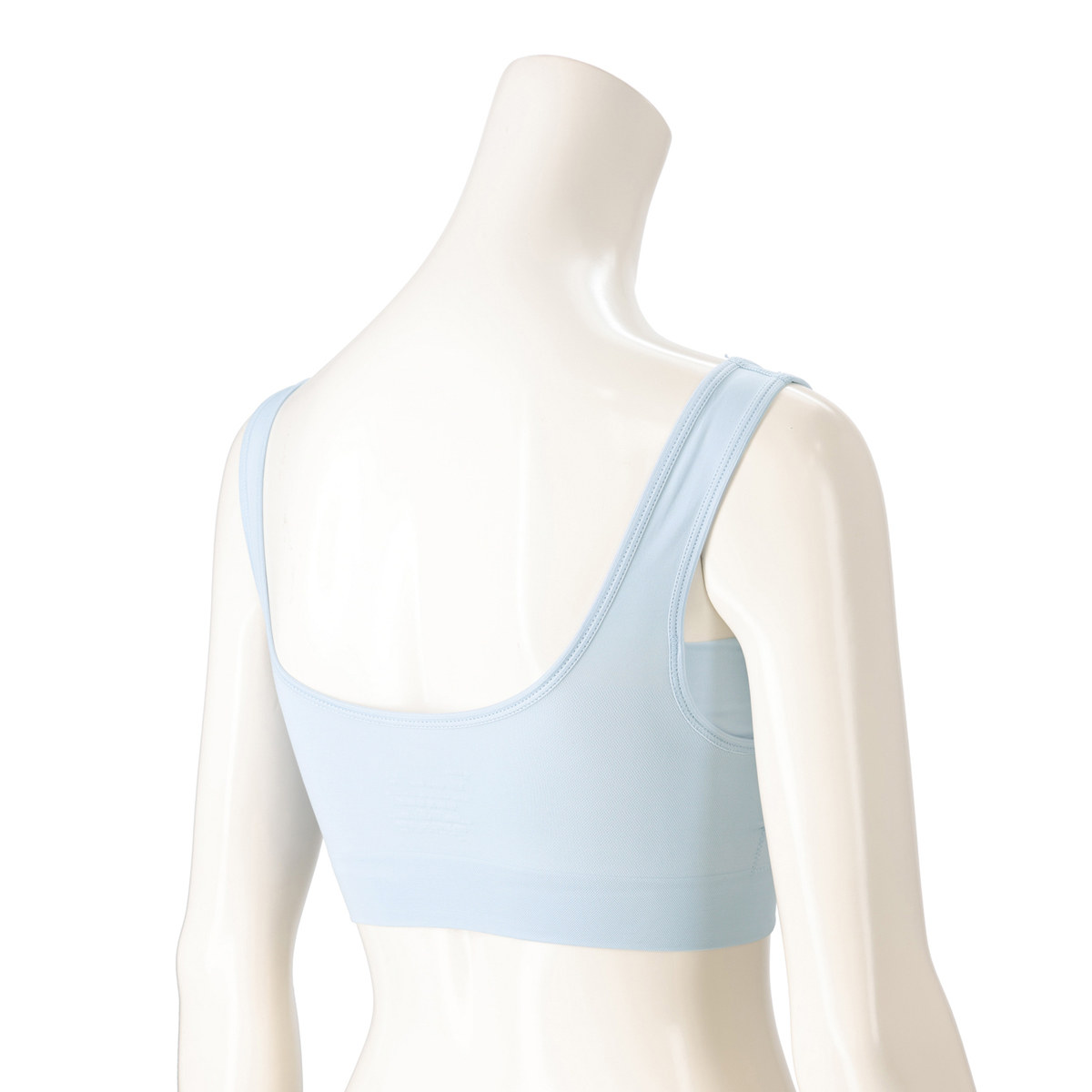 左右のパッドを繋げた、三角の形状のコネクティングパッドを採用。きれいなバストラインをメイクします。脇高設計により、胸からはみ出た脇肉をホールドし、背中のラインをすっきり演出。より涼しさを体感いただくために接触冷感・吸水速乾機能*をプラスしました