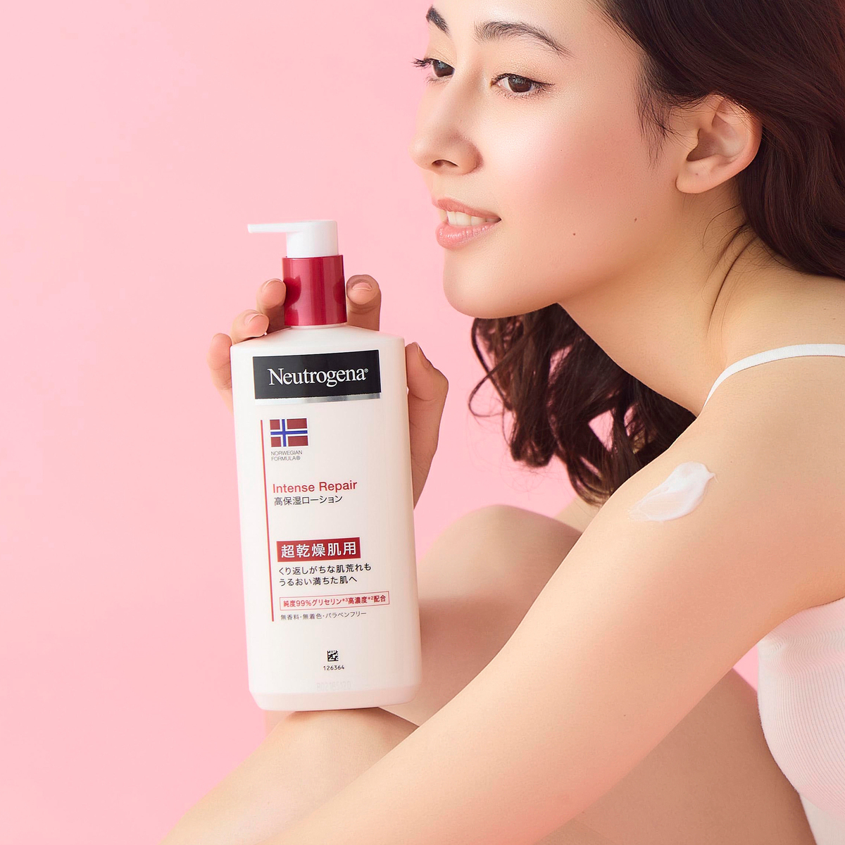 ニュートロジーナのインテンスリペアシリーズ(超乾燥肌用*1・高保湿シリーズ*1)から、不純物が少ない純度99%のグリセリン(*2)を配合したローションをご紹介。グリセリンをはじめ、エチルヘキシルグリセリン、パンテノール、アラントイン(*3)が、肌の乾燥や肌荒れを防ぎ、なめらかでうるおいに満ちた肌へ導きます