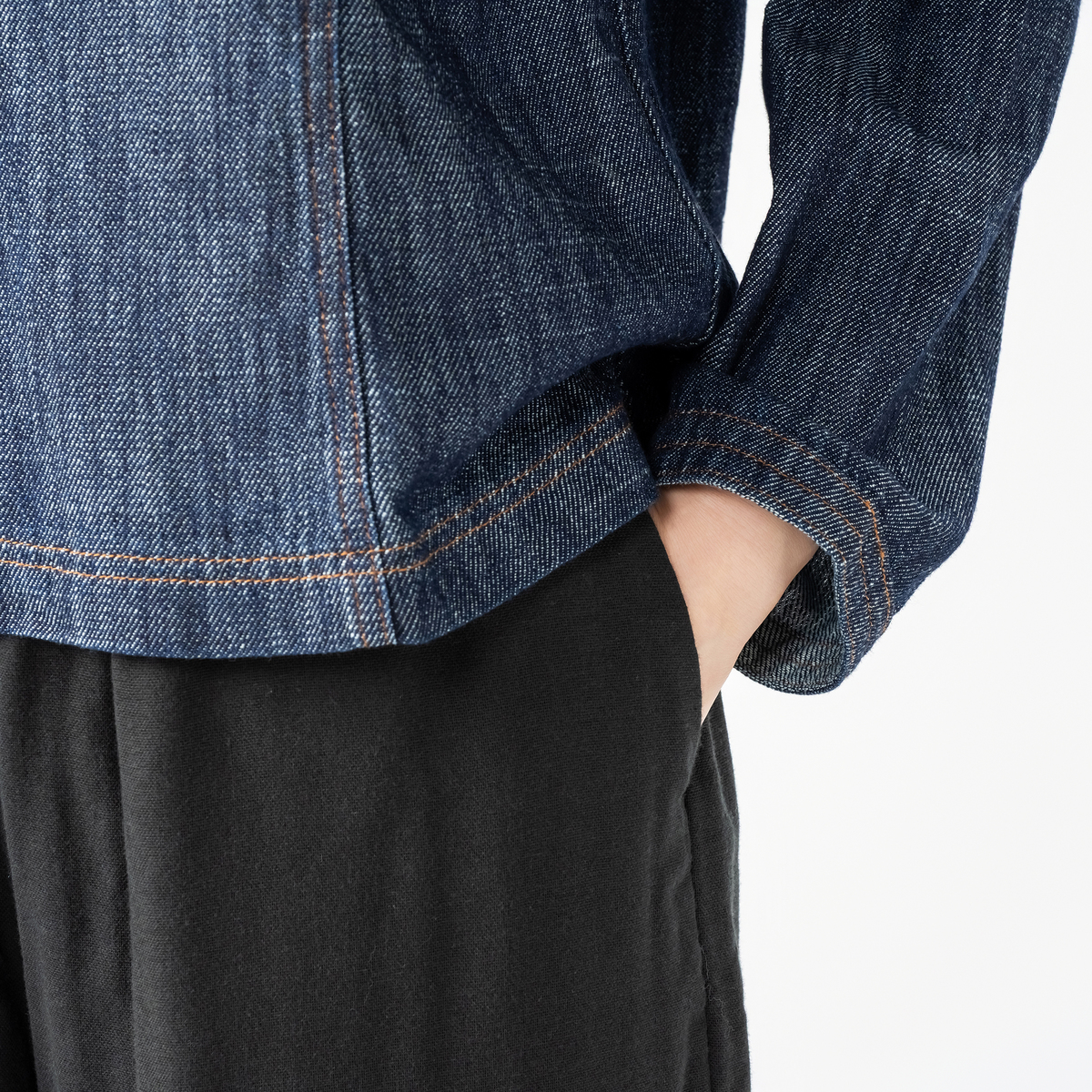 上質なコーマ綿を用いた日本製のオリジナル素材を使用。甘く撚った20番手のコットン糸を3重ガーゼに織り上げ、ふんわり柔らかな風合いに仕上げた生地です。3重になったガーゼの2つの層の間に空気を含むので暖かく、汗ばむ日は通気性があるので蒸れにくく快適。吸放湿性、保温性、UVカット機能も備えています