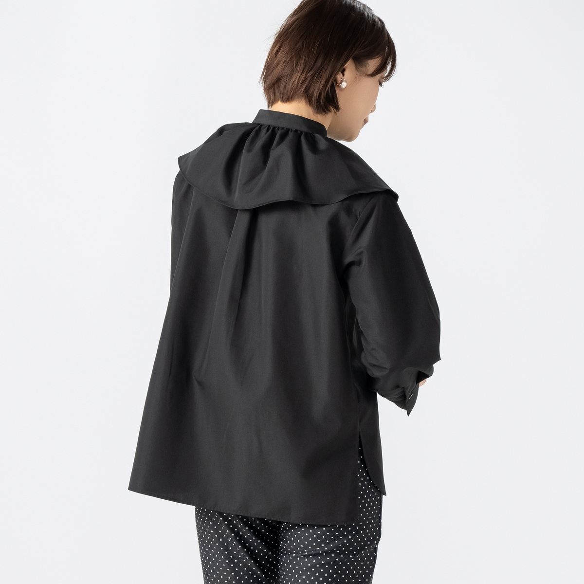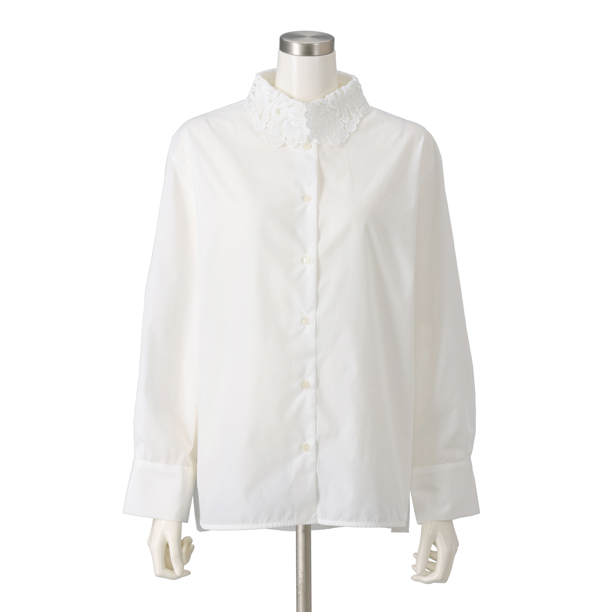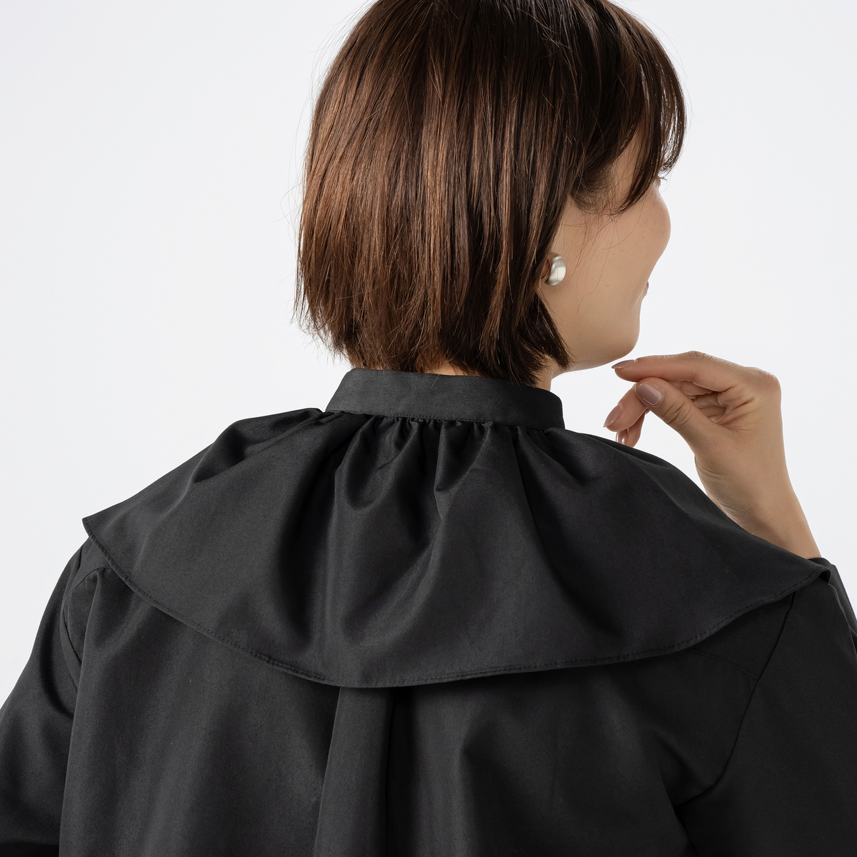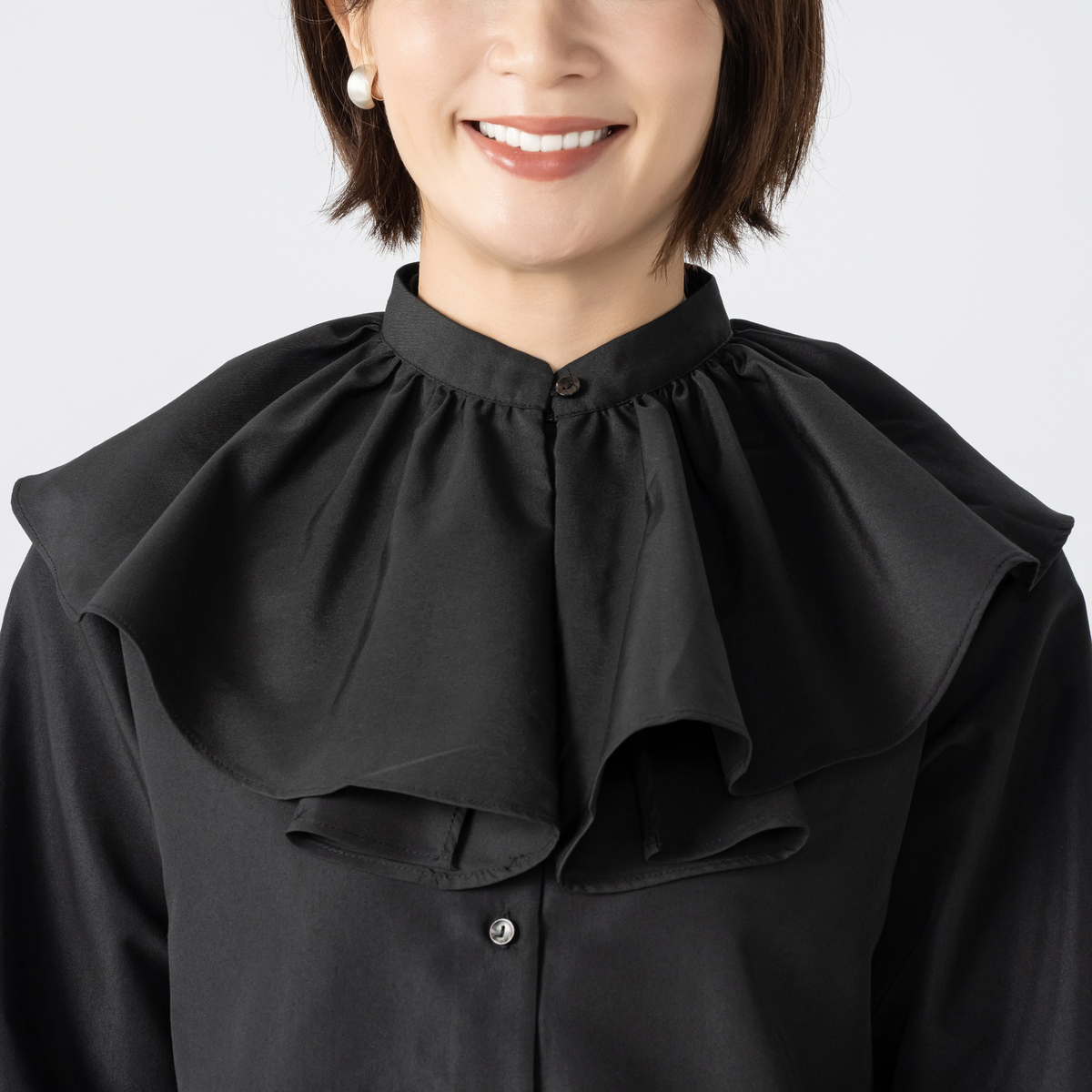 取り外し可能な襟付きの、ゆったりとしたブラウス。フリル襟とレース襟の2種類をご用意しました。襟を付けて華やかに、取り外してシンプルに、シーンに合わせて2WAYで楽しめます