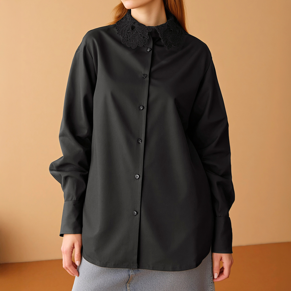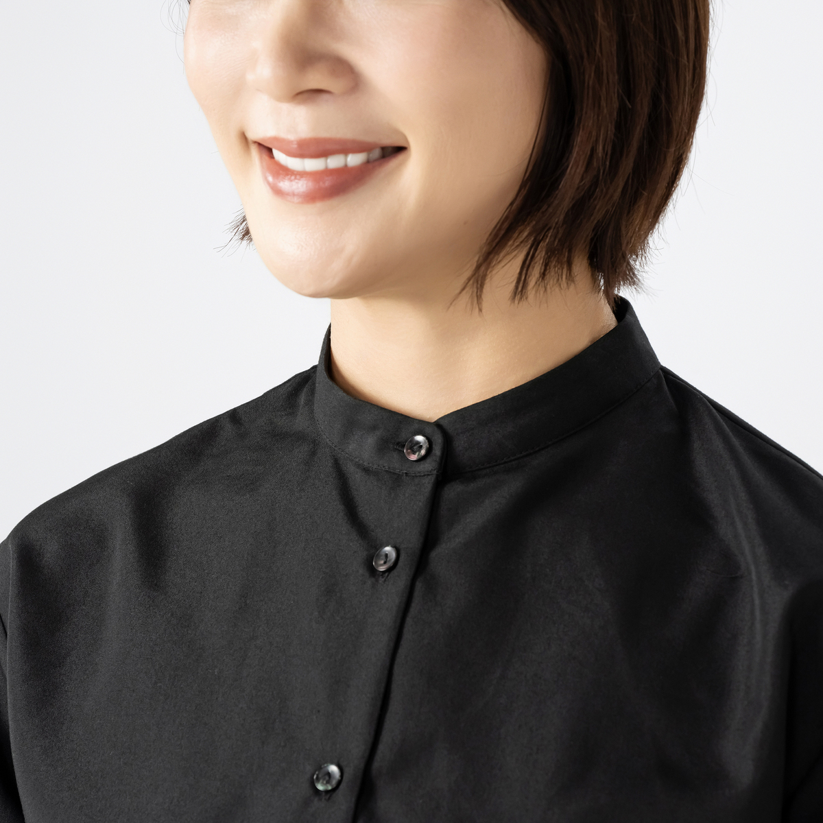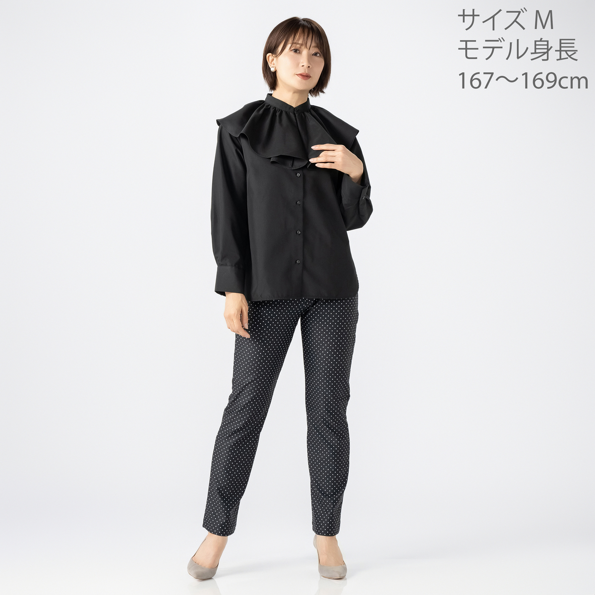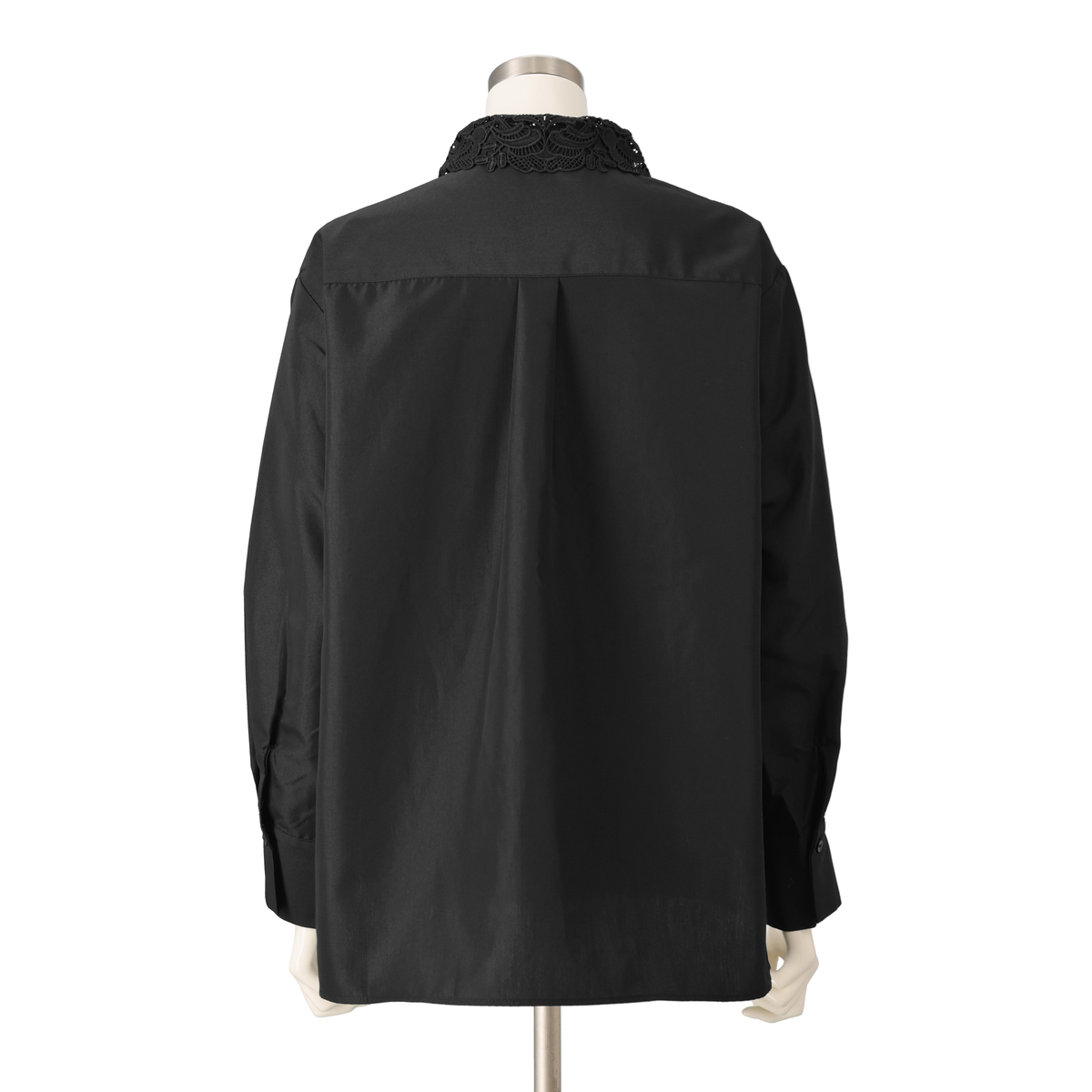 取り外し可能な襟付きの、ゆったりとしたブラウス。フリル襟とレース襟の2種類をご用意しました。襟を付けて華やかに、取り外してシンプルに、シーンに合わせて2WAYで楽しめます