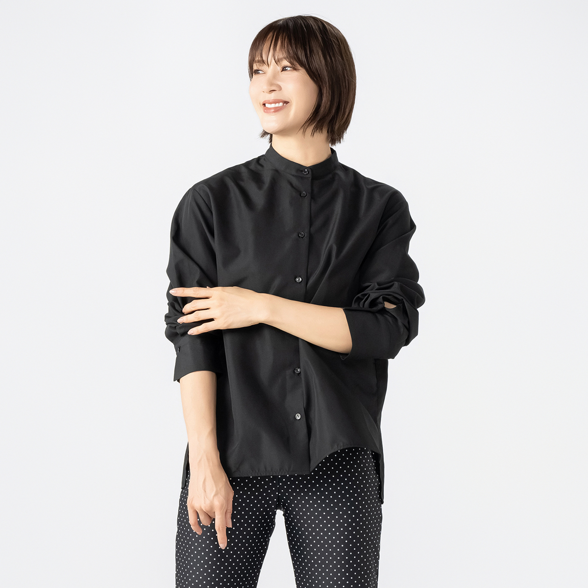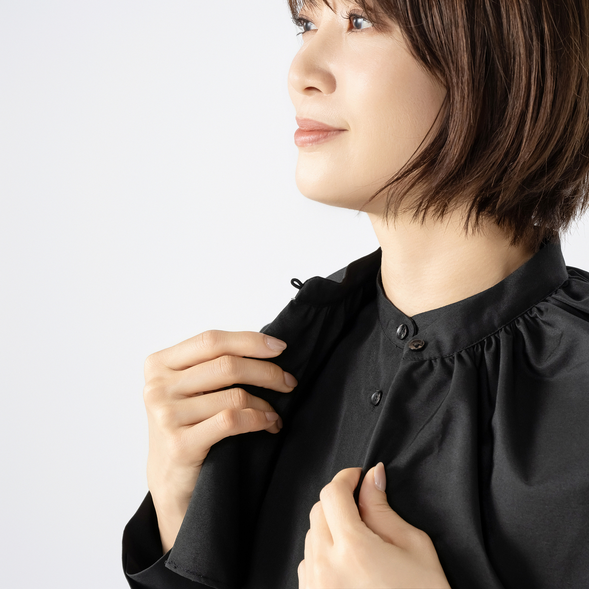 ややハリ感のあるきれいめ素材を使用。ネット使用で洗濯機洗い可能です