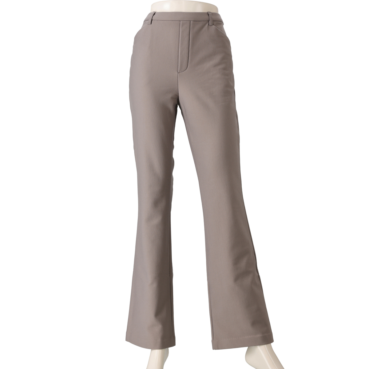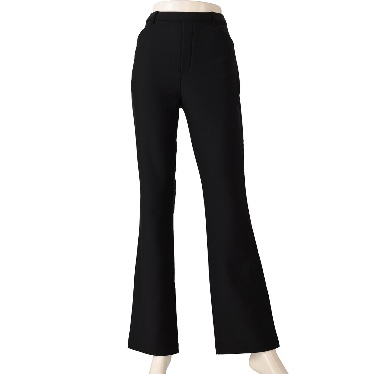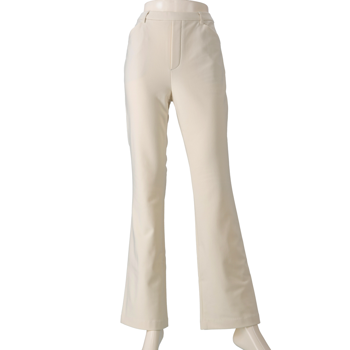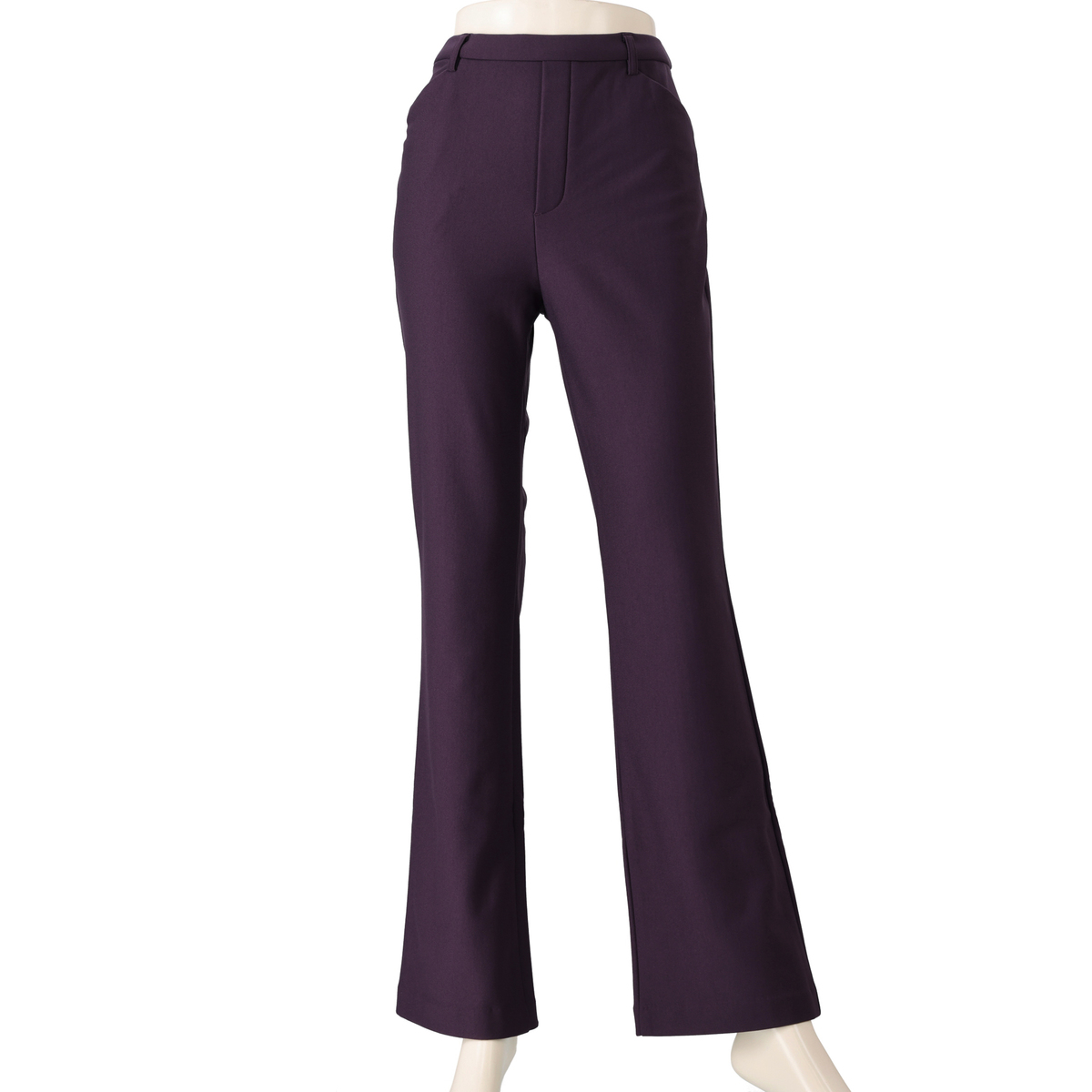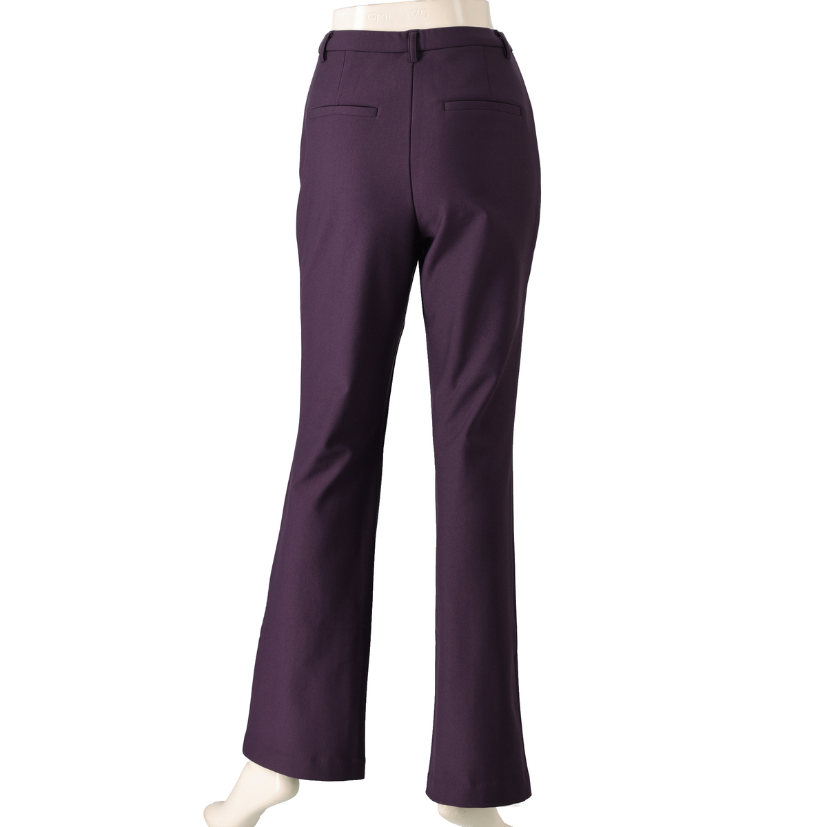 膝と裾バランスの美しいブーツカットシルエットのパンツ。前はフェイク開きのステッチ入りできちんと感も。後ろはダーツで立体的なヒップを設計し、飾り片玉縁ポケットはヒップを高く見せる位置に配置。ゴム入りのウエストはギャザーがよらず、すっきりとした印象です