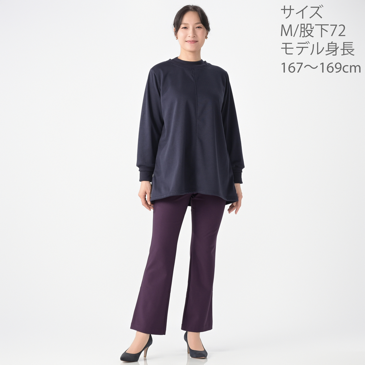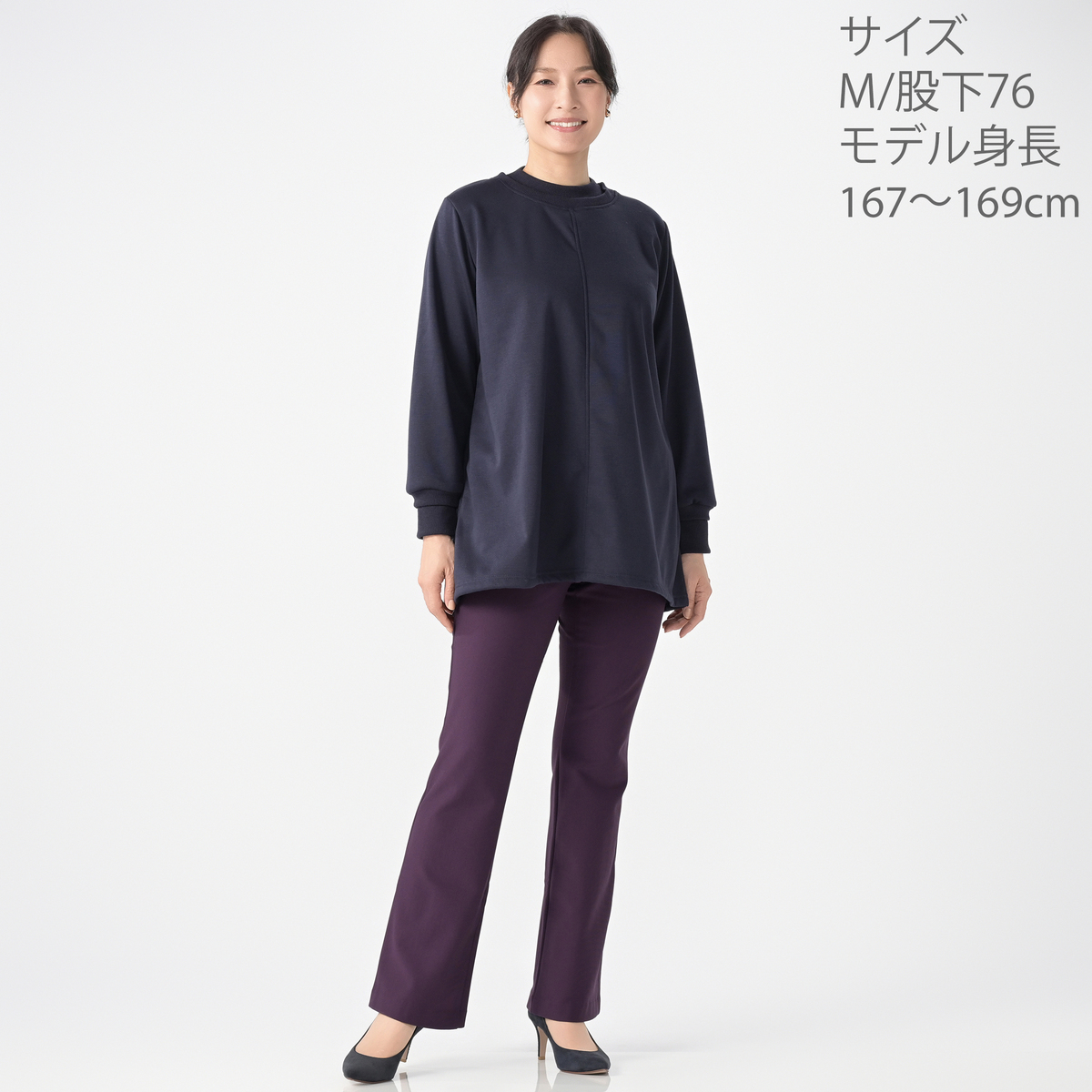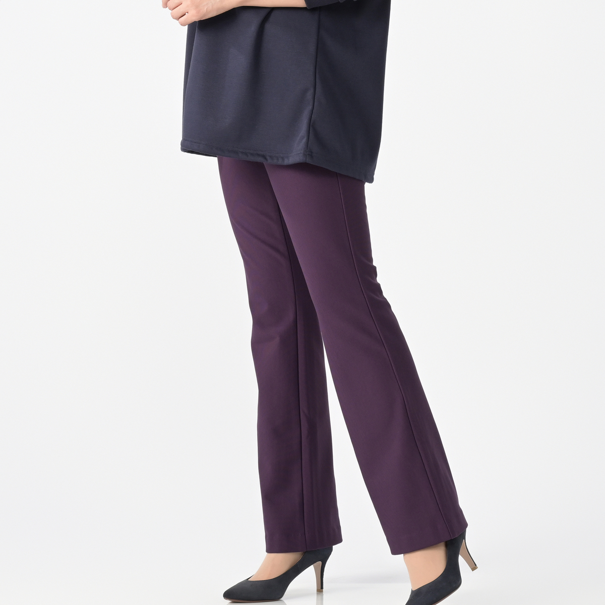 ブラックとパープルを購入。迷って初めてパープルを買いましたが、とても深い綺麗な紫色なので、ネイビーのトップスに合わせるとバッチリでした♪ 夏の美空を買ってから、暖かいのが出ないかと心待ちしていました。起毛が暖かくてラインも綺麗で、満点です! ただ少し、ウエストのゴムが硬めかなぁー。もう少しウエストに伸縮性があると楽かなと思いました。それにしてもこんな綺麗なパンツに出会えて、本当に良かったです。ありがとうございました!