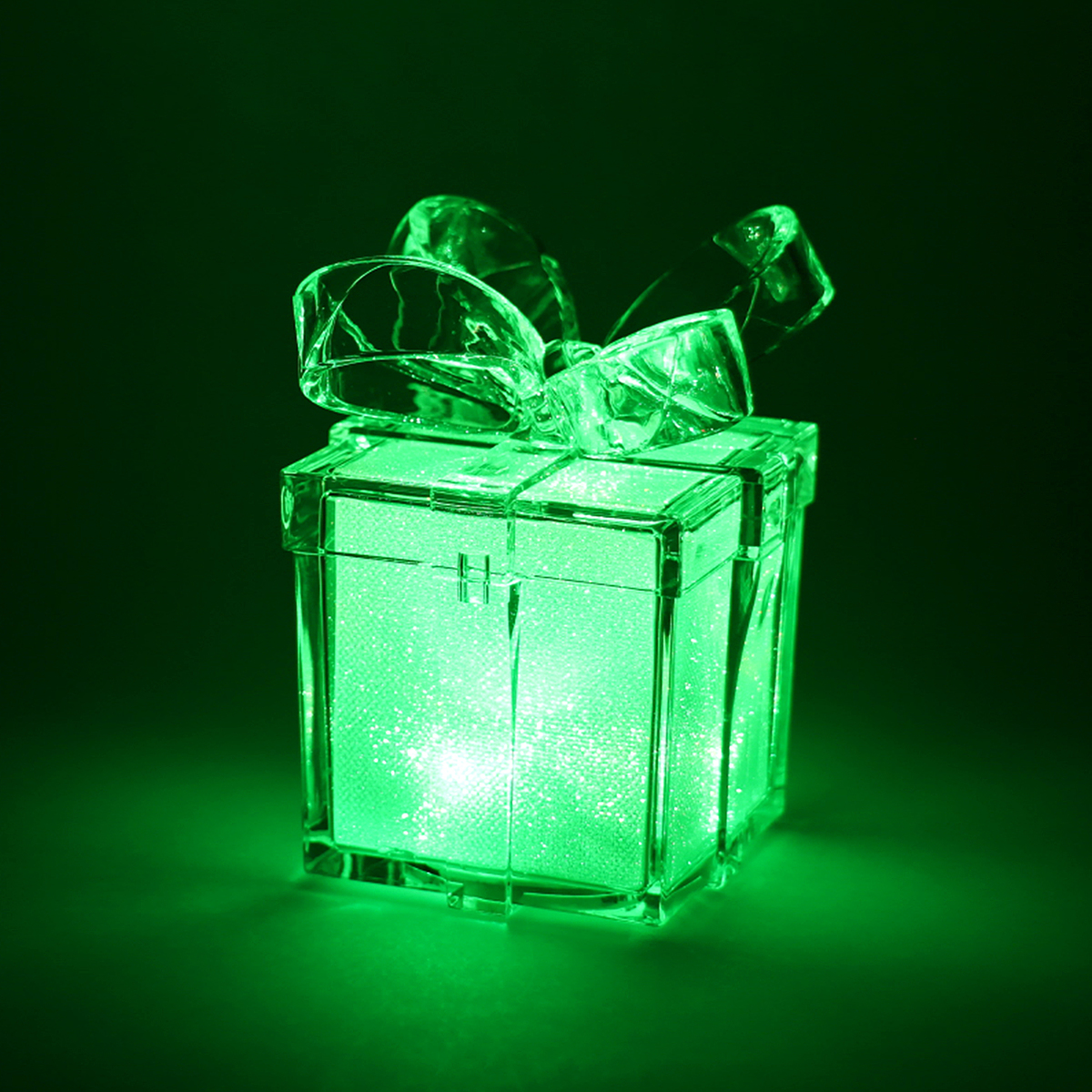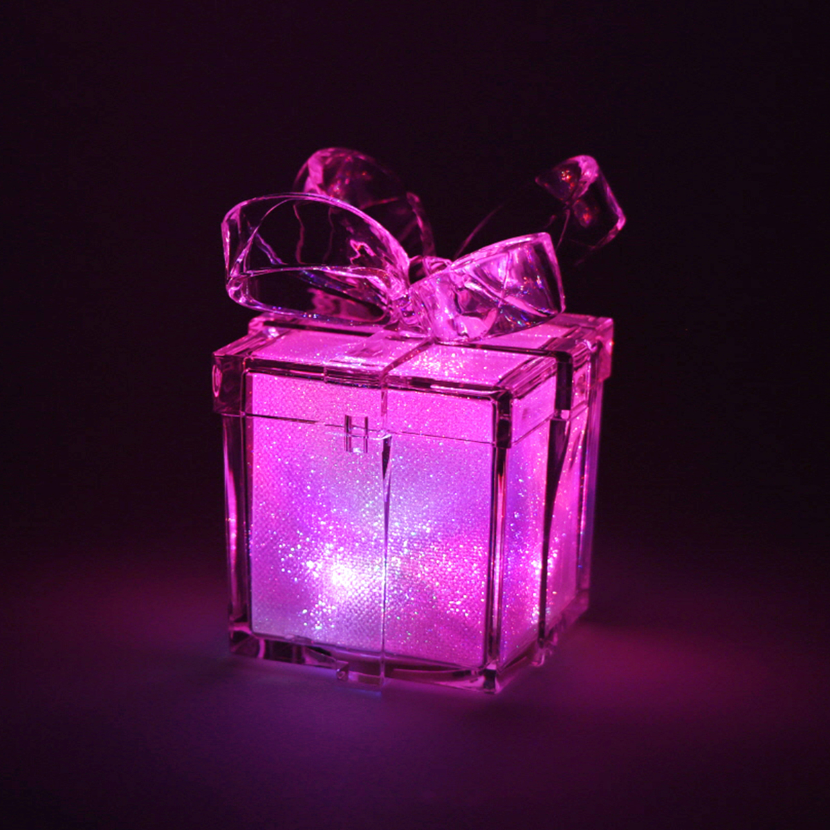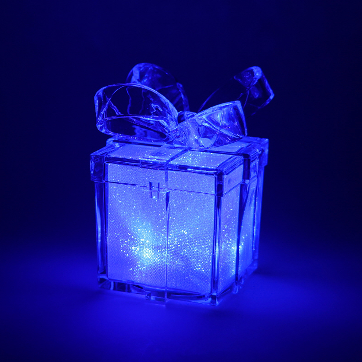 クリスマスのシーズンを華やかに演出する、ギフトボックス型のテーブルデコレーション。電池式なので、電源やコードの位置を気にせず飾れます