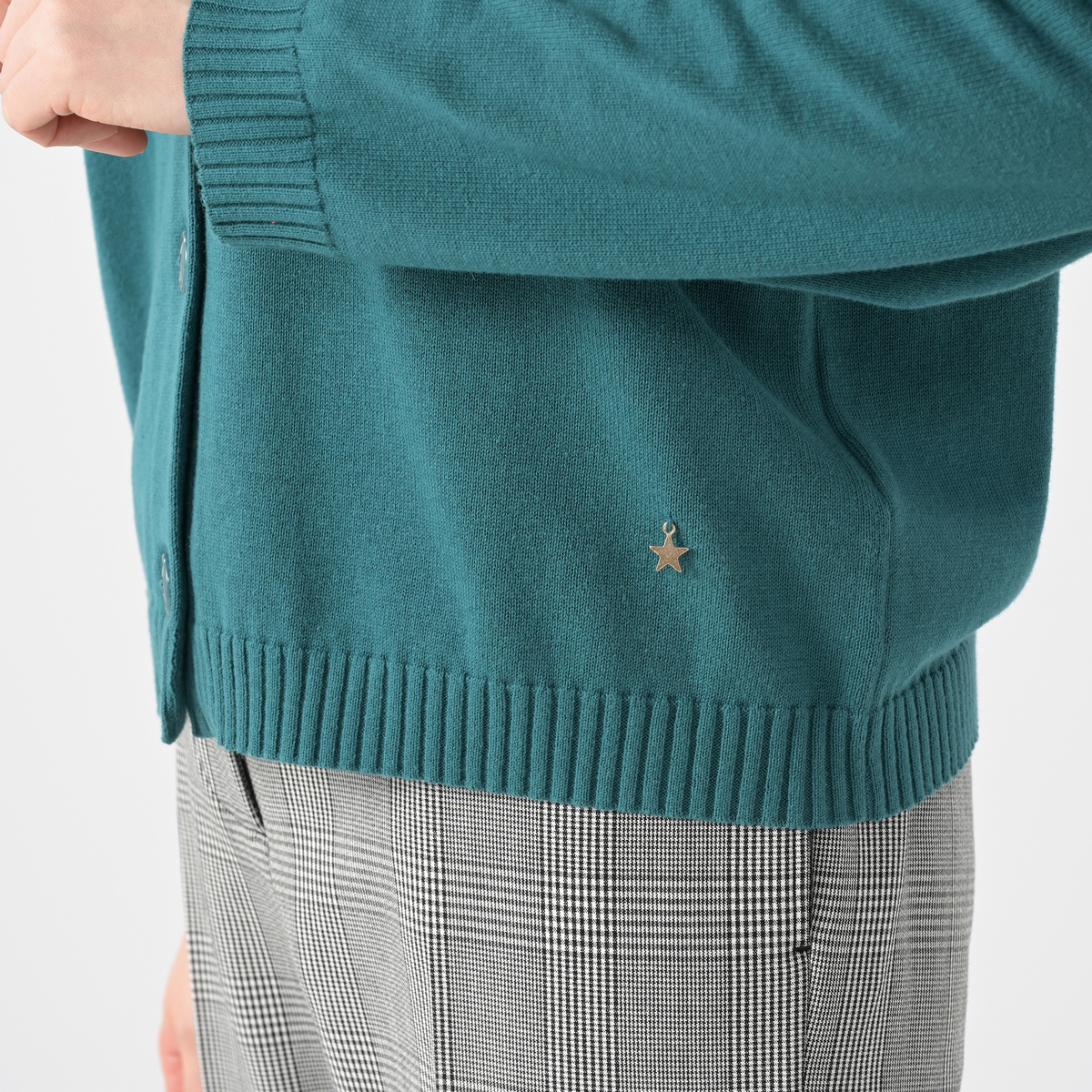 体のラインを拾いすぎないシルエット。無駄のないシンプルなデザインで、どんなスタイルにもマッチ。着脱しやすく、カーディガンとしても一枚着としても着こなせます