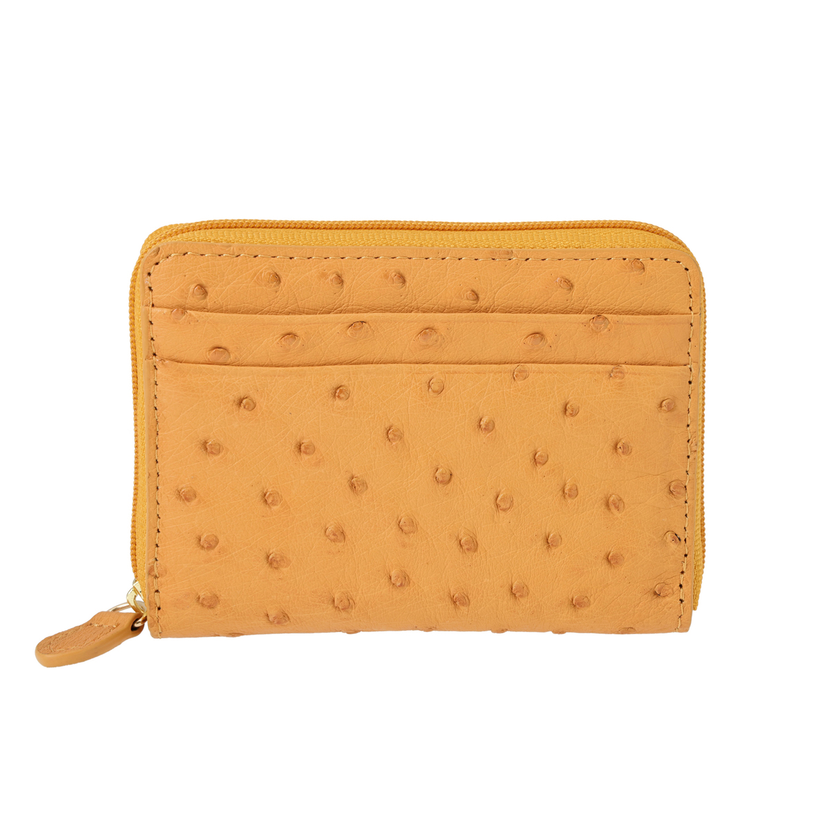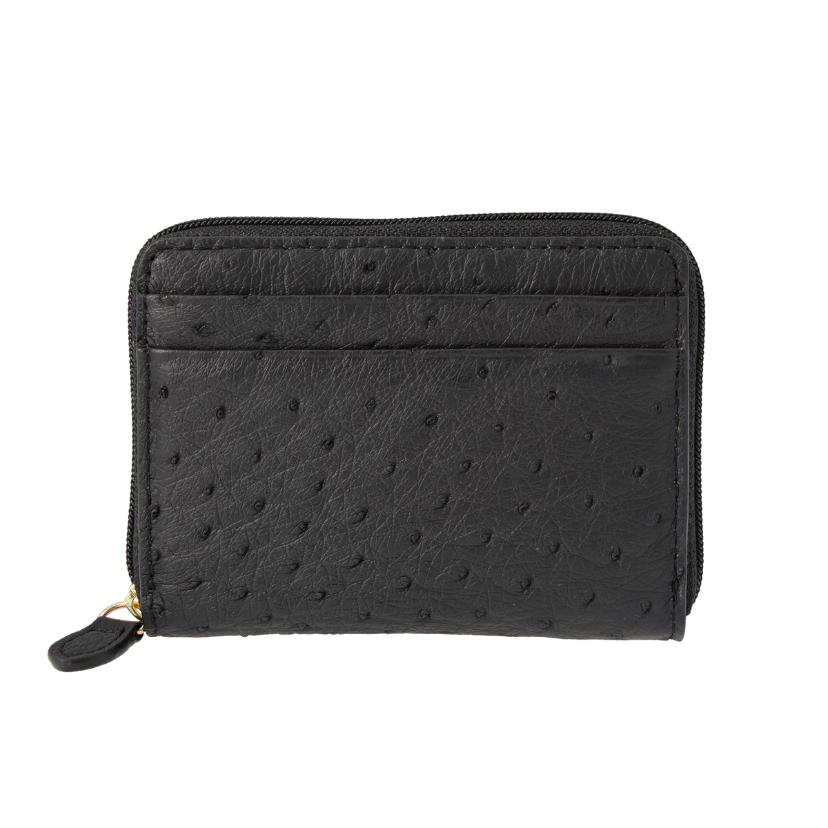 [サイズ(約)] 縦8.5×横11×厚み2cm [重量(約)] 80g [素材] 表地:オーストリッチ革 内側:牛革 裏地:ポリエステル [仕様] 開閉:ファスナー式 [ポケット] 内側:カードポケットx4 オープンポケットx2 小銭入れx1 外側:カードポケット×4 【ベトナム製】