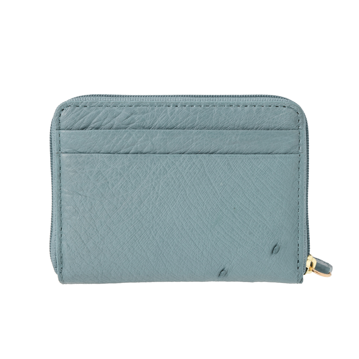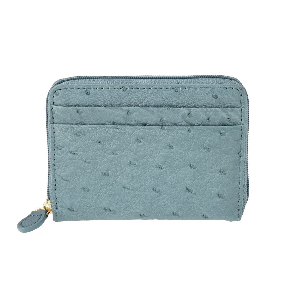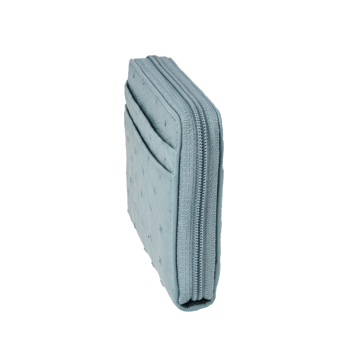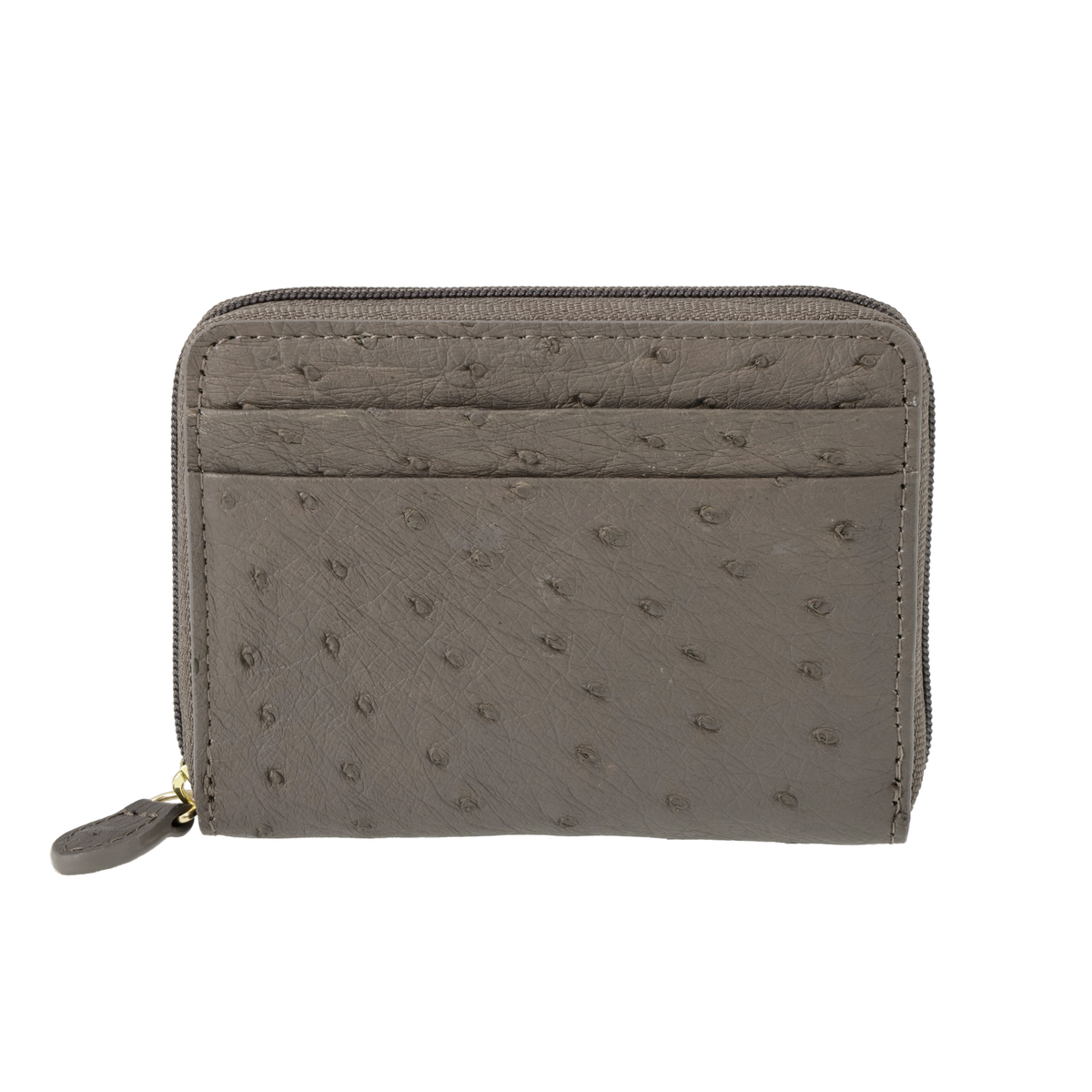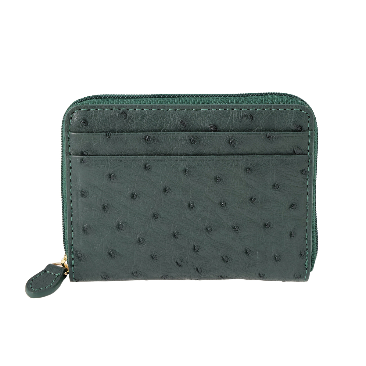 表面全面にオーストリッチ革を使用したウォレット。手になじみやすいく普段使いしやすい約11cmx8.5cmのコンパクトなサイズです。表面にはカードポケット、内側にもカードポケットや小銭入れ、お札を折って入れられるポケット付きで、一つあるだけでマルチに活用できます