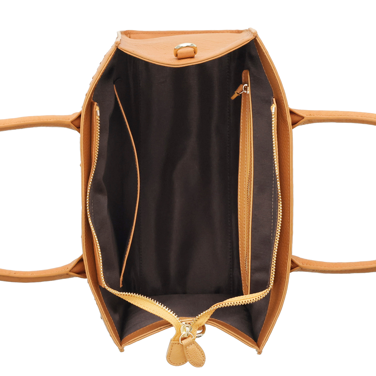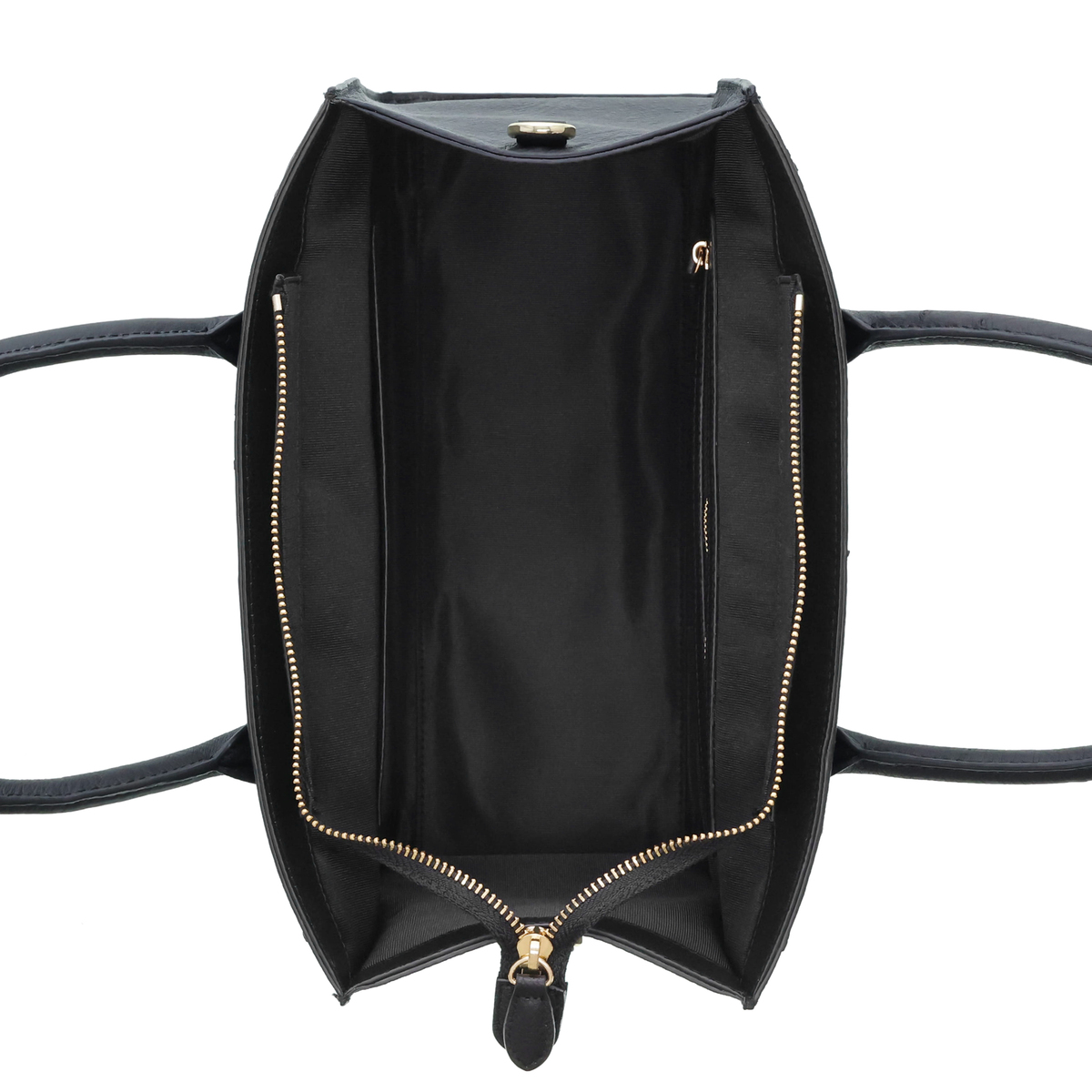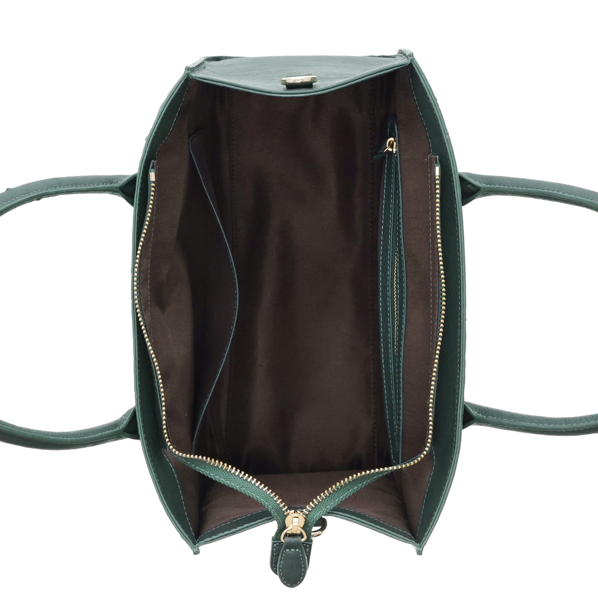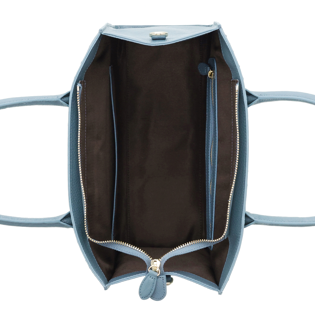 横約30cm×縦約25cmと大きいサイズなのに重さは約550gと軽量です。ハンドル持ちや肩掛けで長時間持ち運んでもストレスフリーで使用いただけます。開閉はファスナー式で大きく開き、内側にはファスナーポケット、オープンポケットが備わっているので、荷物を整理できます