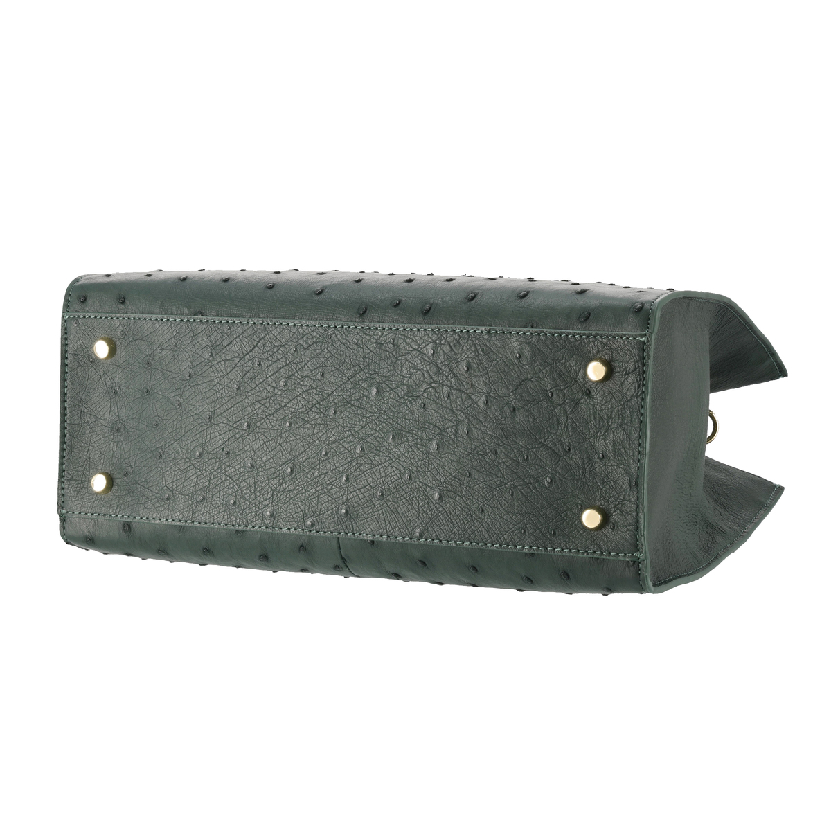 〇オーストリッチのバッグという事でホテルでのお茶など、多少カジュアルながらも品位が求められる場所で使いたく思い購入しました。色は落ち着いたハニーゴールドで、季節を問わず利用できます。フルポイントなので、ワンランク上の高級感が感じられるところも気に入っています。クイルマークも均一に入っていて綺麗です。底ビョウがあり、人口革が使われていないので、手入れさえ怠らなければ一生モノでしょう。それを考えれば、お手頃価格だったと満足しています(割引価格込み)。 〇強いて言えば、もう少し取っ手が長いほうが好みです。基本的に肩掛けで使用するので、付属のショルダーベルトが無くても済むようなら最高でした。