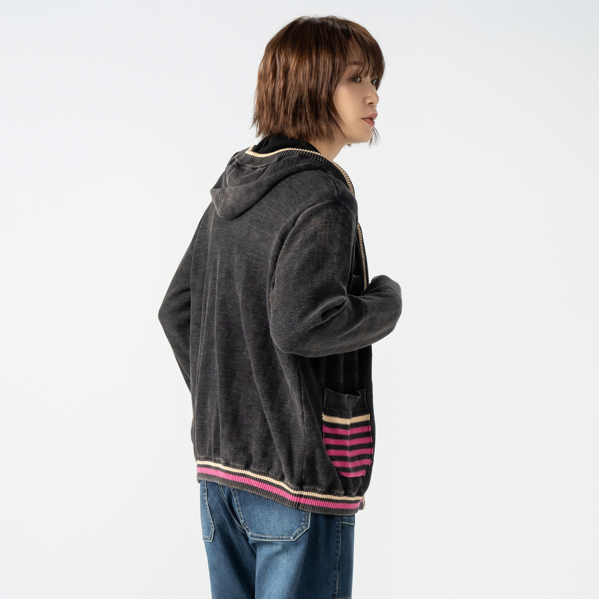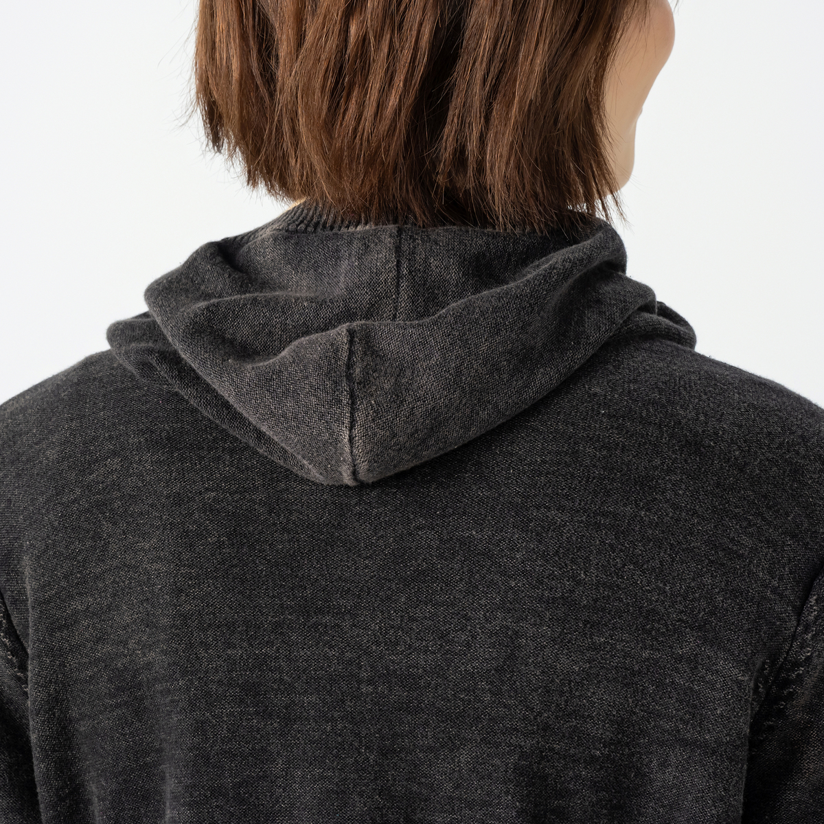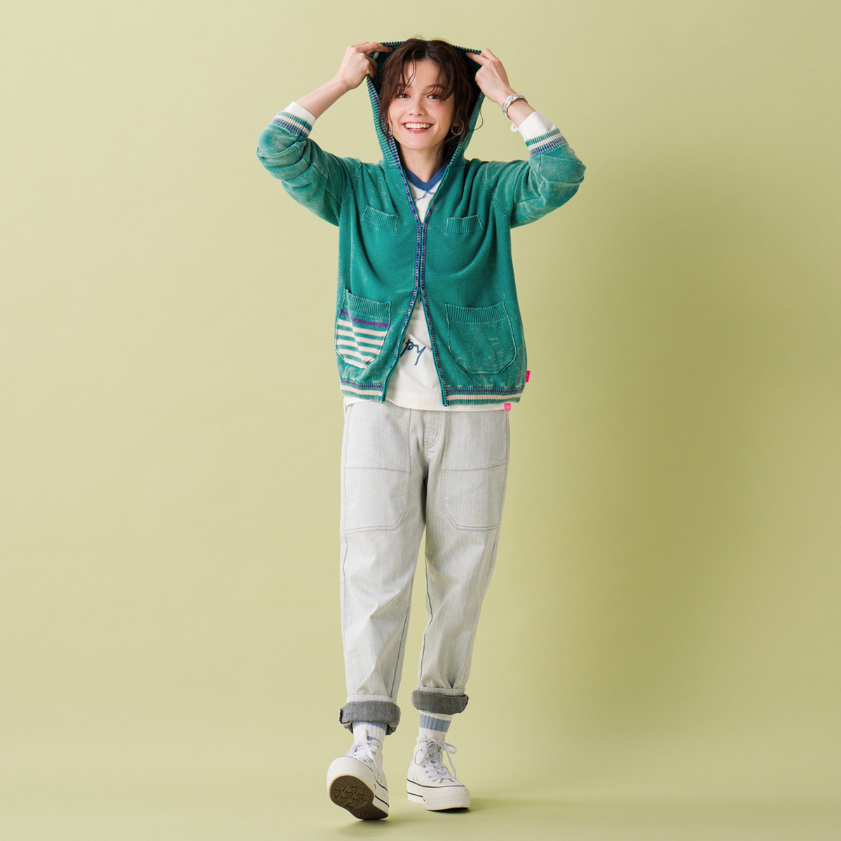 配色ボーダーが印象的なニットパーカーです。先染めで編み、ストーンウォッシュ加工で洗いをかけることでビンテージ感のある仕上がりに。抜け感のあるおしゃれを楽しめます
