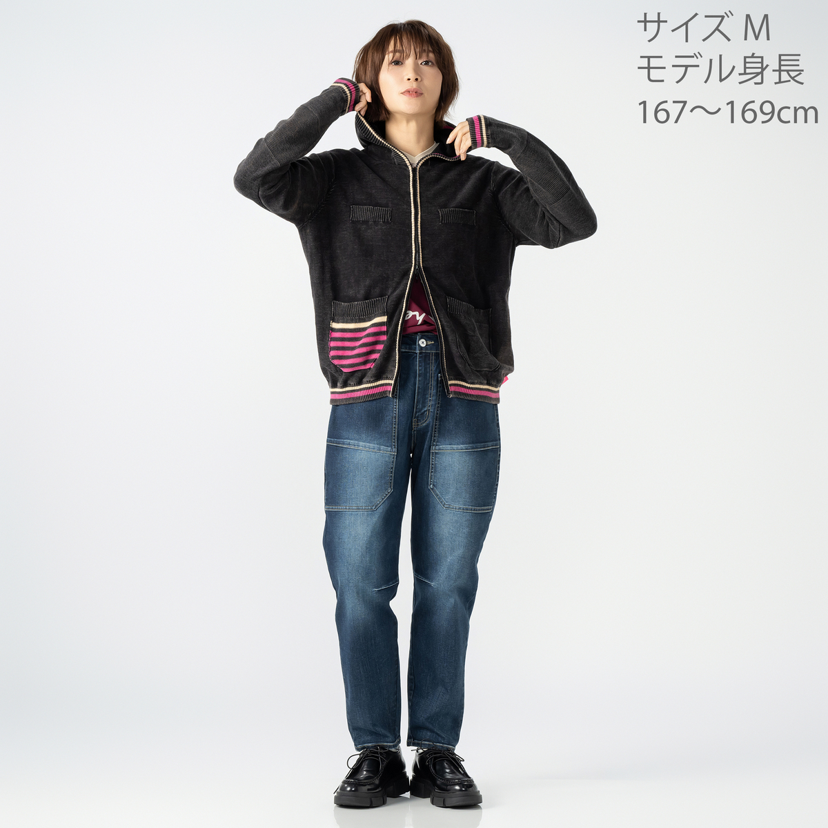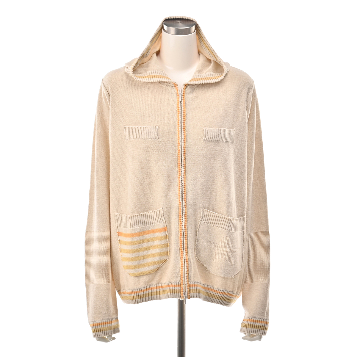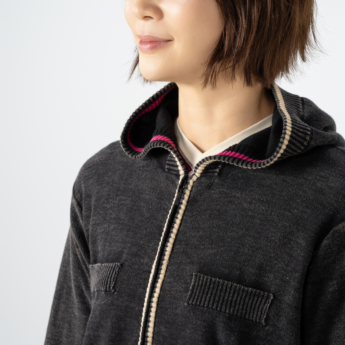 配色ボーダーが印象的なニットパーカーです。先染めで編み、ストーンウォッシュ加工で洗いをかけることでビンテージ感のある仕上がりに。抜け感のあるおしゃれを楽しめます