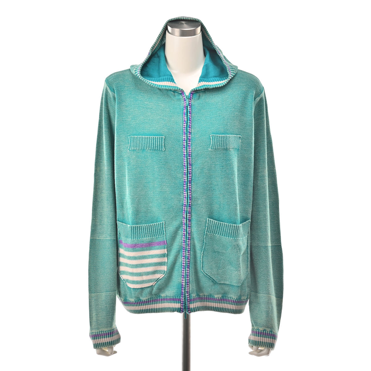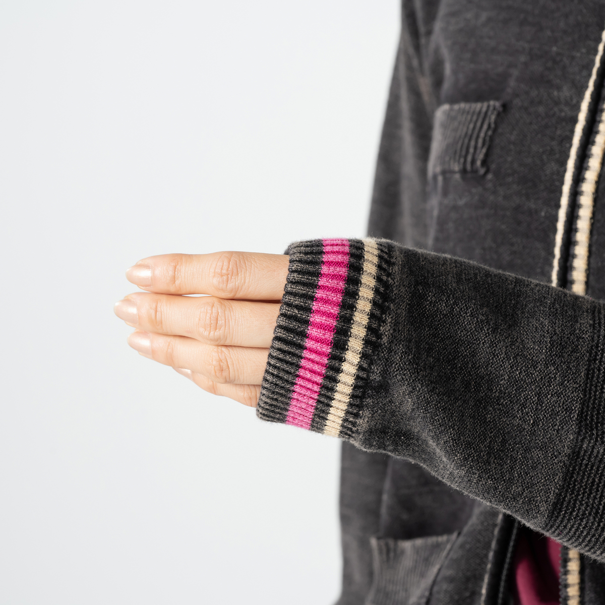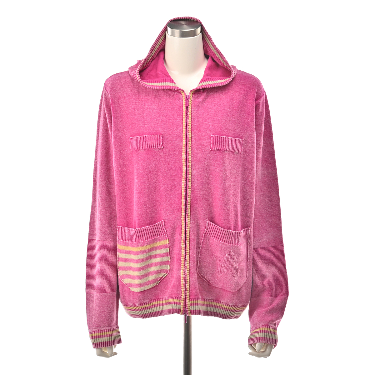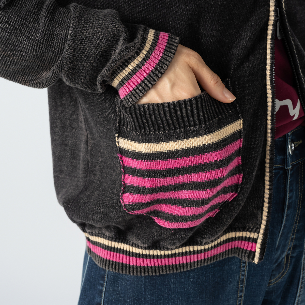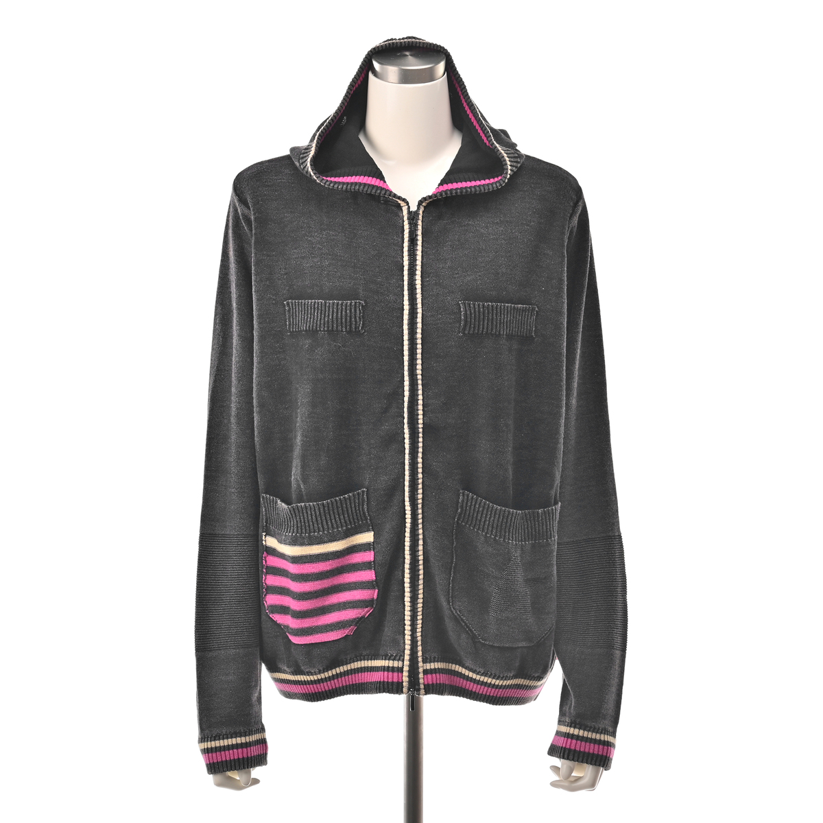 No. 746385 KiKKi ストーンウォッシュの配色ボーダーラインニットパーカー