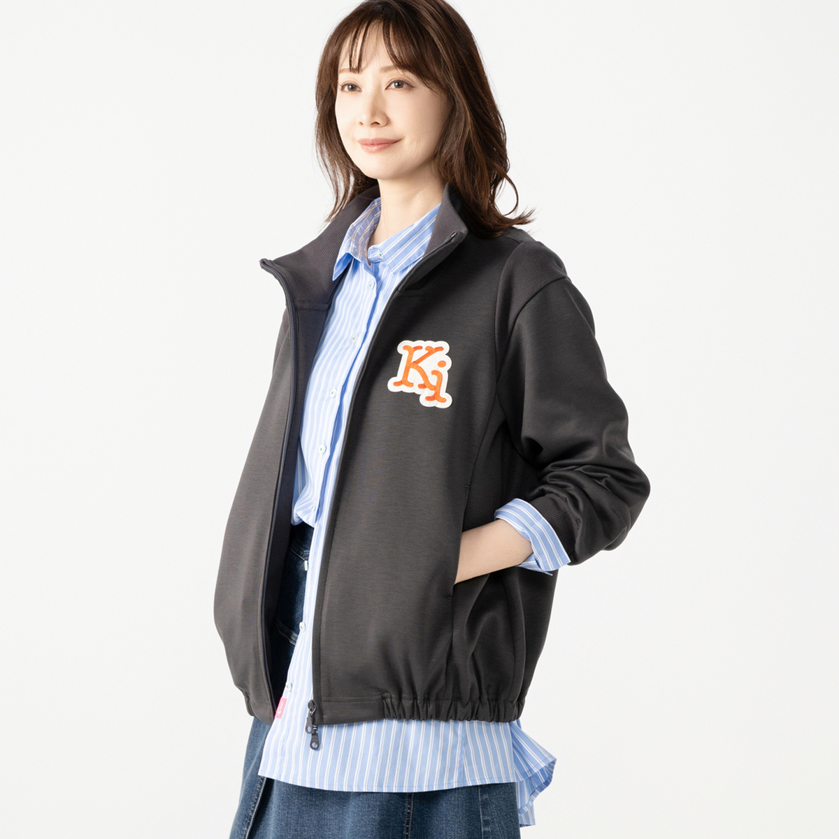 左胸にワッペンをあしらったブルゾン。ほどよいハリ感があるハイゲージダンボールニット素材を使いました。前立てはファスナー仕様、前身頃にはポケット付きで、普段使いしやすい一枚です
