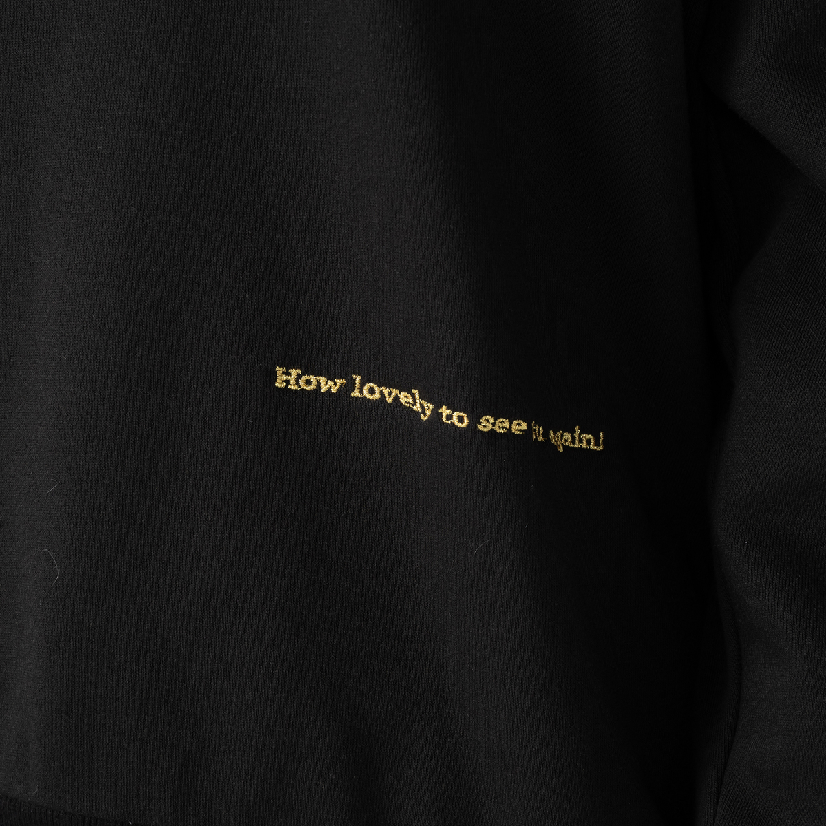 金色の刺繍の場所、大きさ、字体(筆記体)がとても良いです。控えめな刺繍なのに、品がありどんなボトムスにもぴったり。ちょっと大きめなので、在庫のあったMサイズが最適でした。