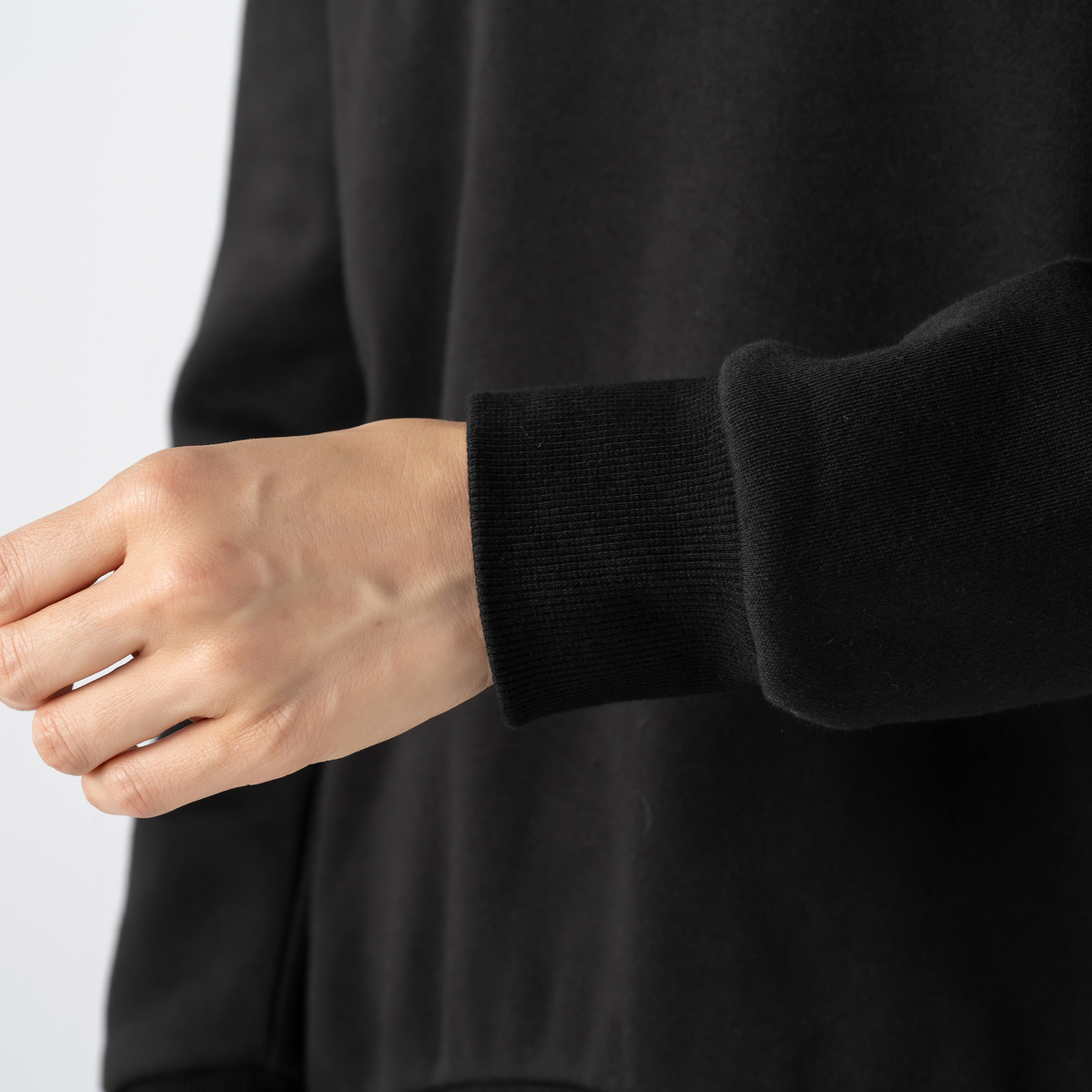 グレーの上下セットとブラックのパンツは購入しており、着心地の良さとお洒落さに愛用していました。今回はブラックのトップスを購入し、2色セットが揃いました。ブラックはやはり締まってみえ、カッコいいです。後ろがふわっとぽっこりのデザインで可愛いらしいです。