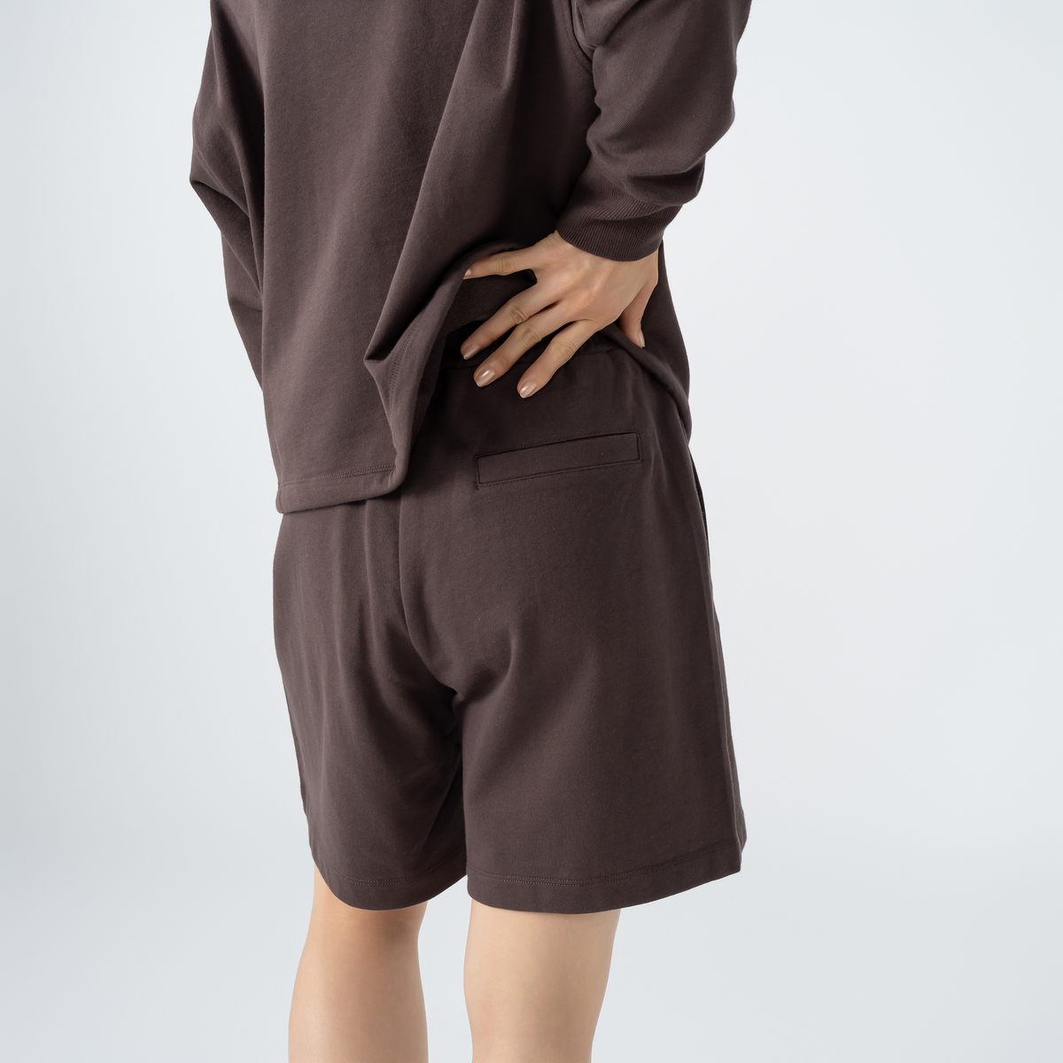 裏毛素材のショートパンツです。こだわりのある素材感でスポーティーな装いに上品な若々しさを演出します。左右脇には便利なポケットを付けました