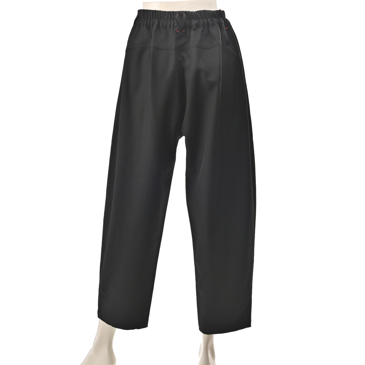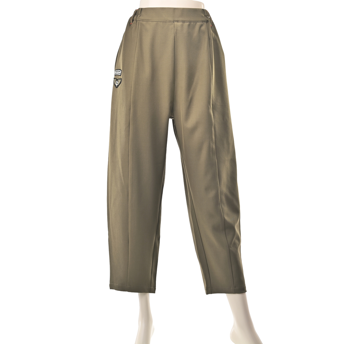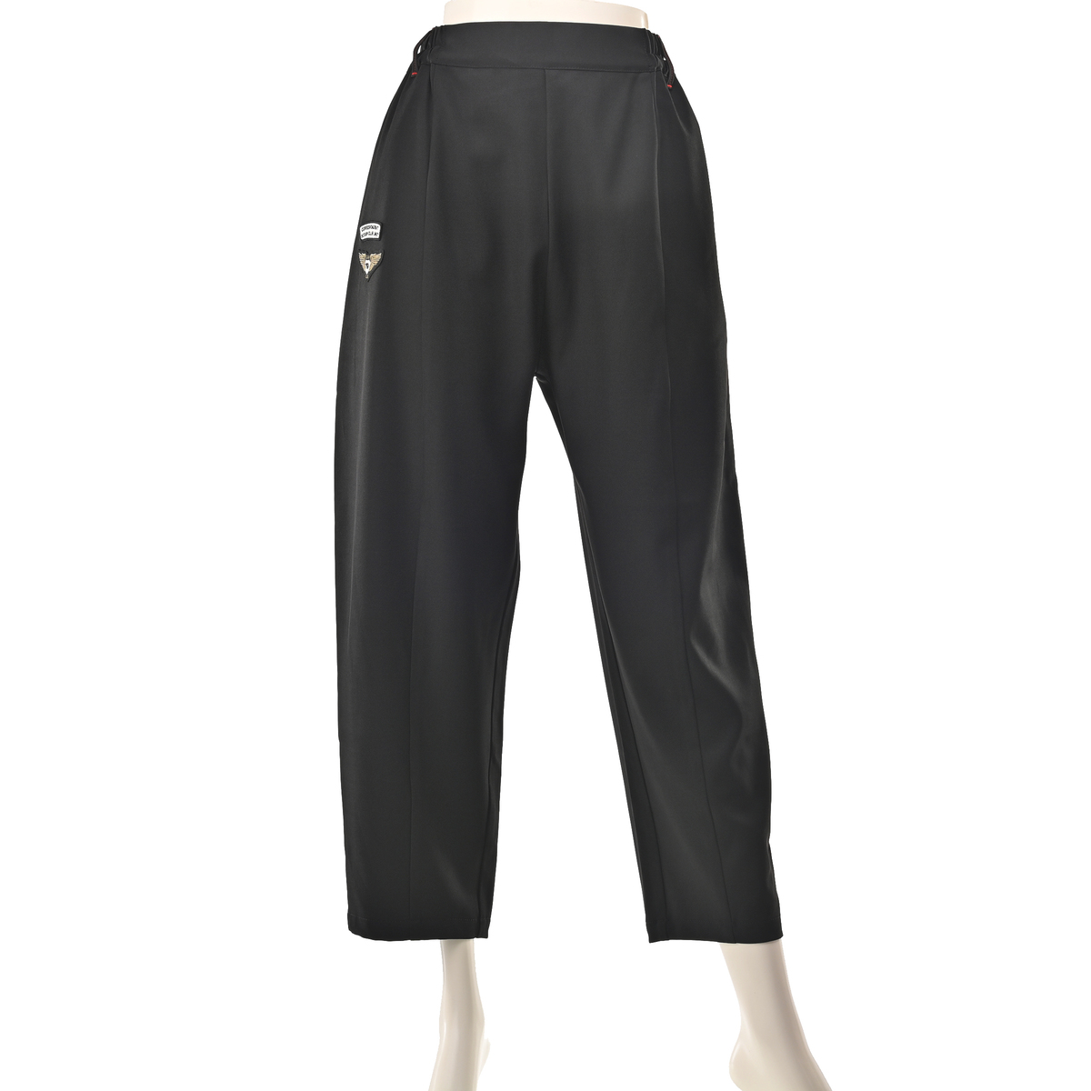 サーカスパンツを大人仕様にアレンジ。構築的なシルエットで、リラクシーなのにスタイルアップが叶います。ウエストゴムで穿きやすく、配色ステッチや右パンツのエンブレムが、さりげないアクセントに。トップスとの組合せで幅広い着こなしを楽しめる一枚です