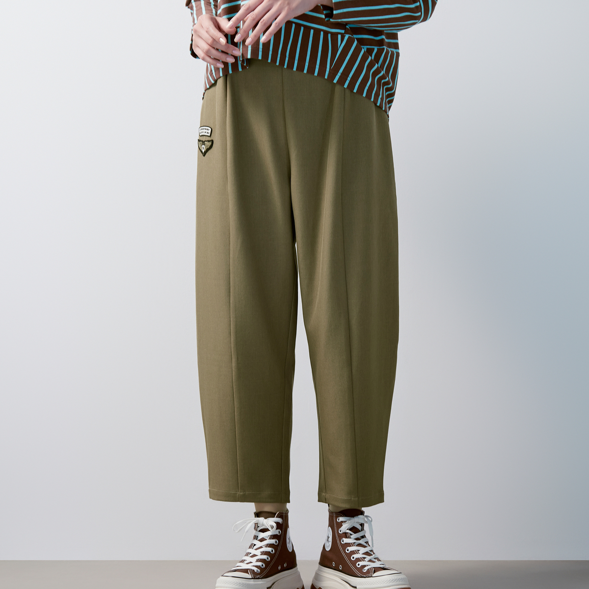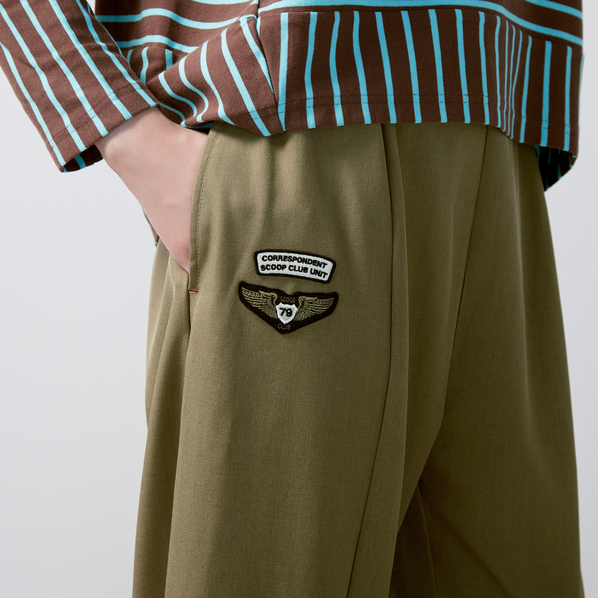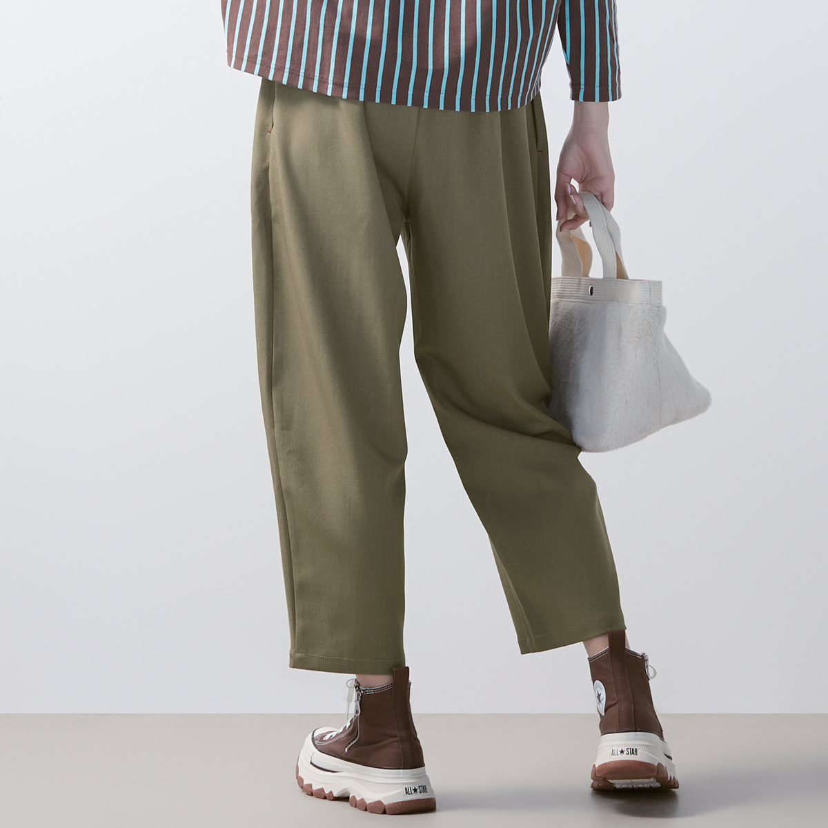 サーカスパンツを大人仕様にアレンジ。構築的なシルエットで、リラクシーなのにスタイルアップが叶います。ウエストゴムで穿きやすく、配色ステッチや右パンツのエンブレムが、さりげないアクセントに。トップスとの組合せで幅広い着こなしを楽しめる一枚です
