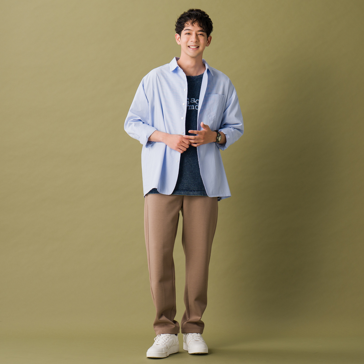 軽い着心地が魅力のシャツジャケット。さっと羽織るだけのアイテムで、端境期のお出かけにも活躍します。左胸にはポケットを付けたデザインです