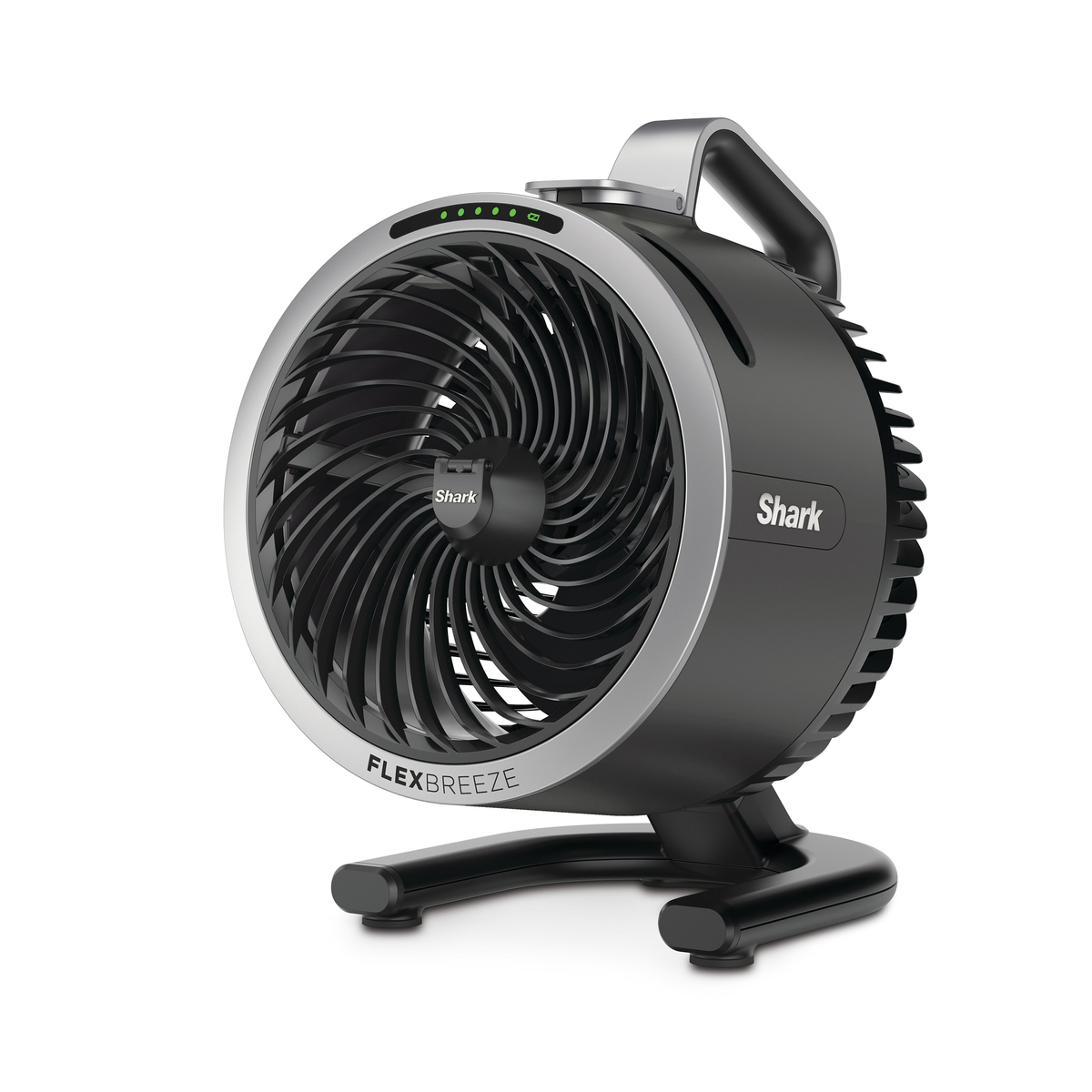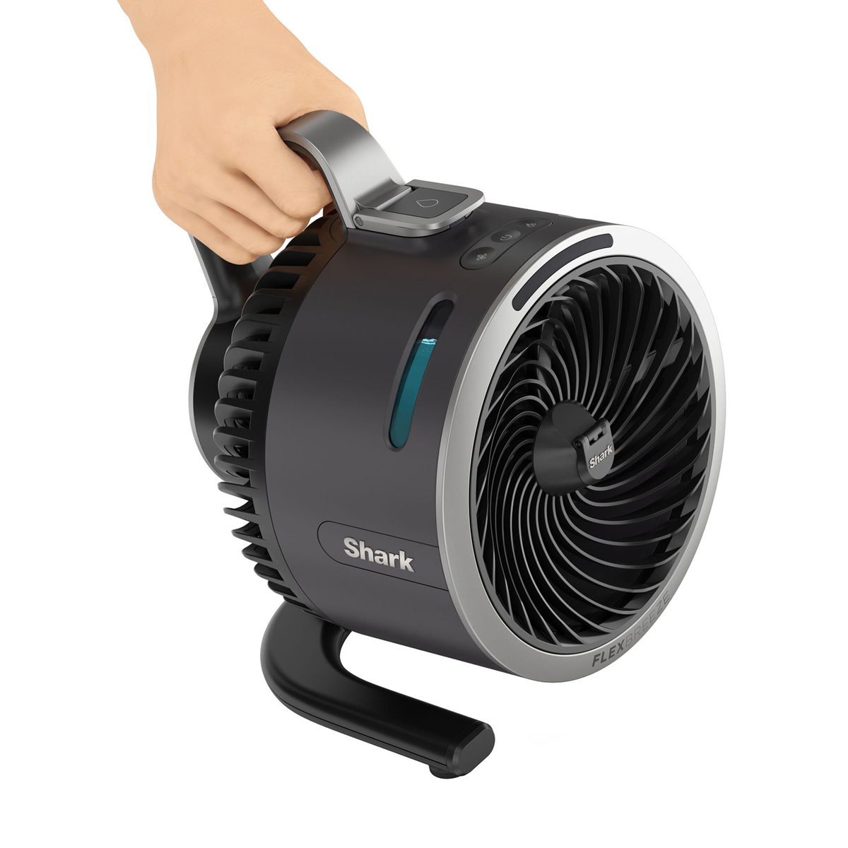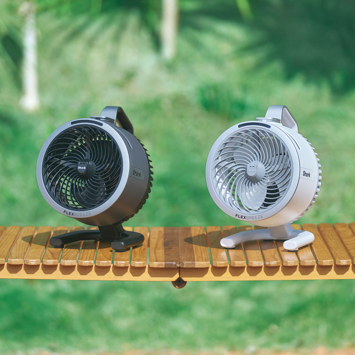 屋内だけでなく屋外でも使用できるシャークのサーキュレーターファン。コードレスで最大12時間駆動(*1)し、充電が切れてもコードを接続してお使いいただけます