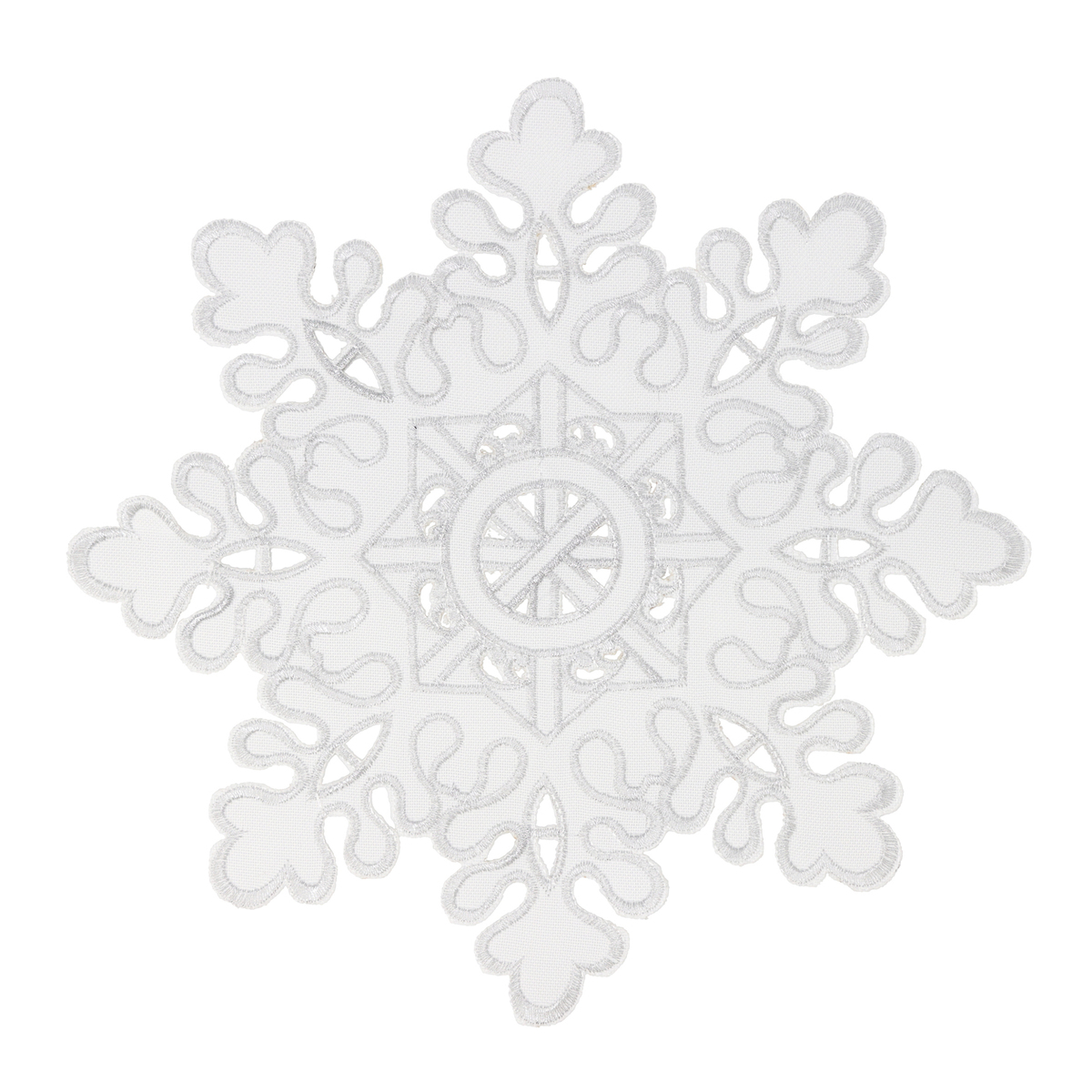 刺繍とカットワークで雪の結晶をデザインしたドイリー。冬にぴったりなデザインで、お部屋を美しく飾ります